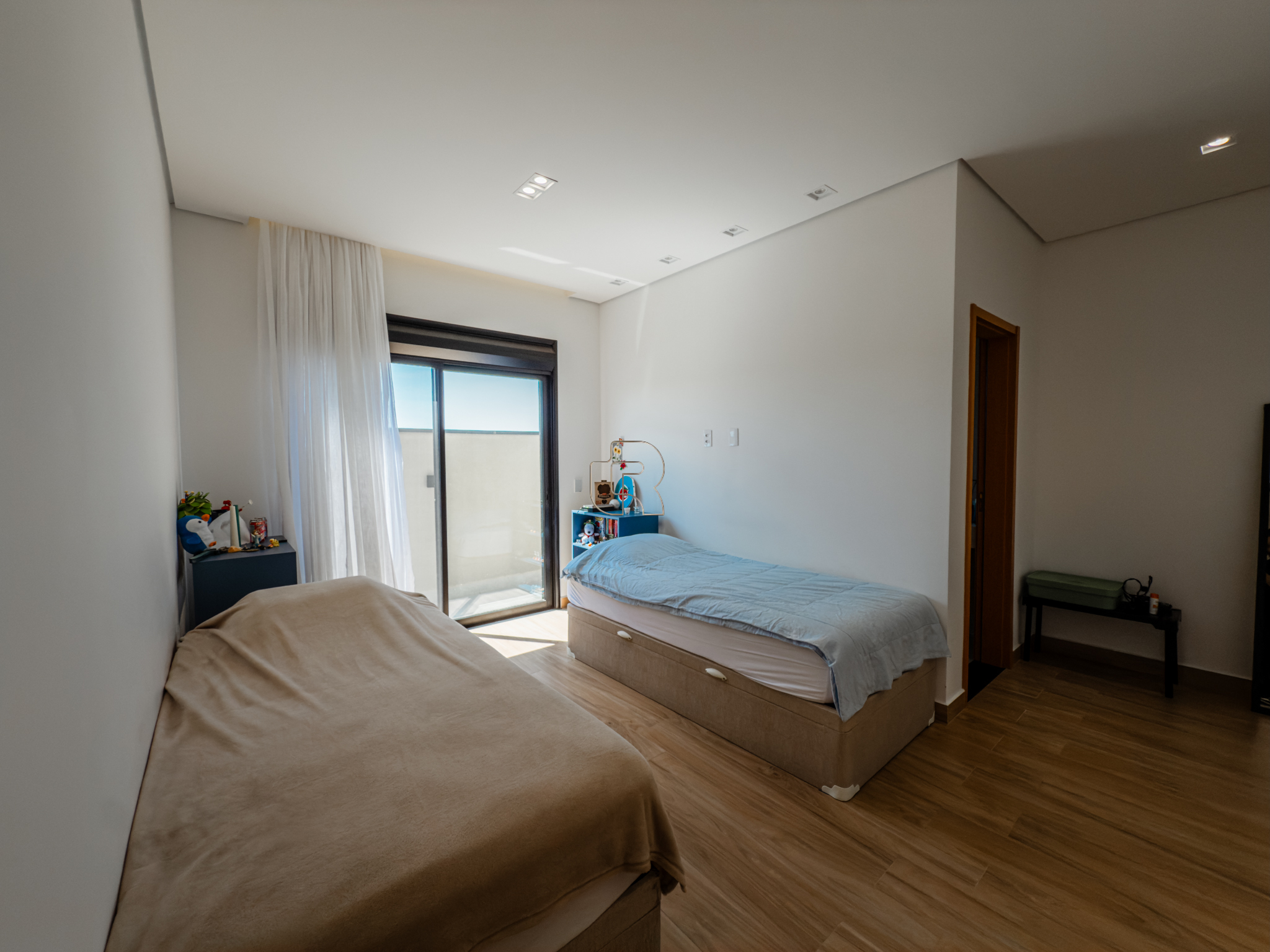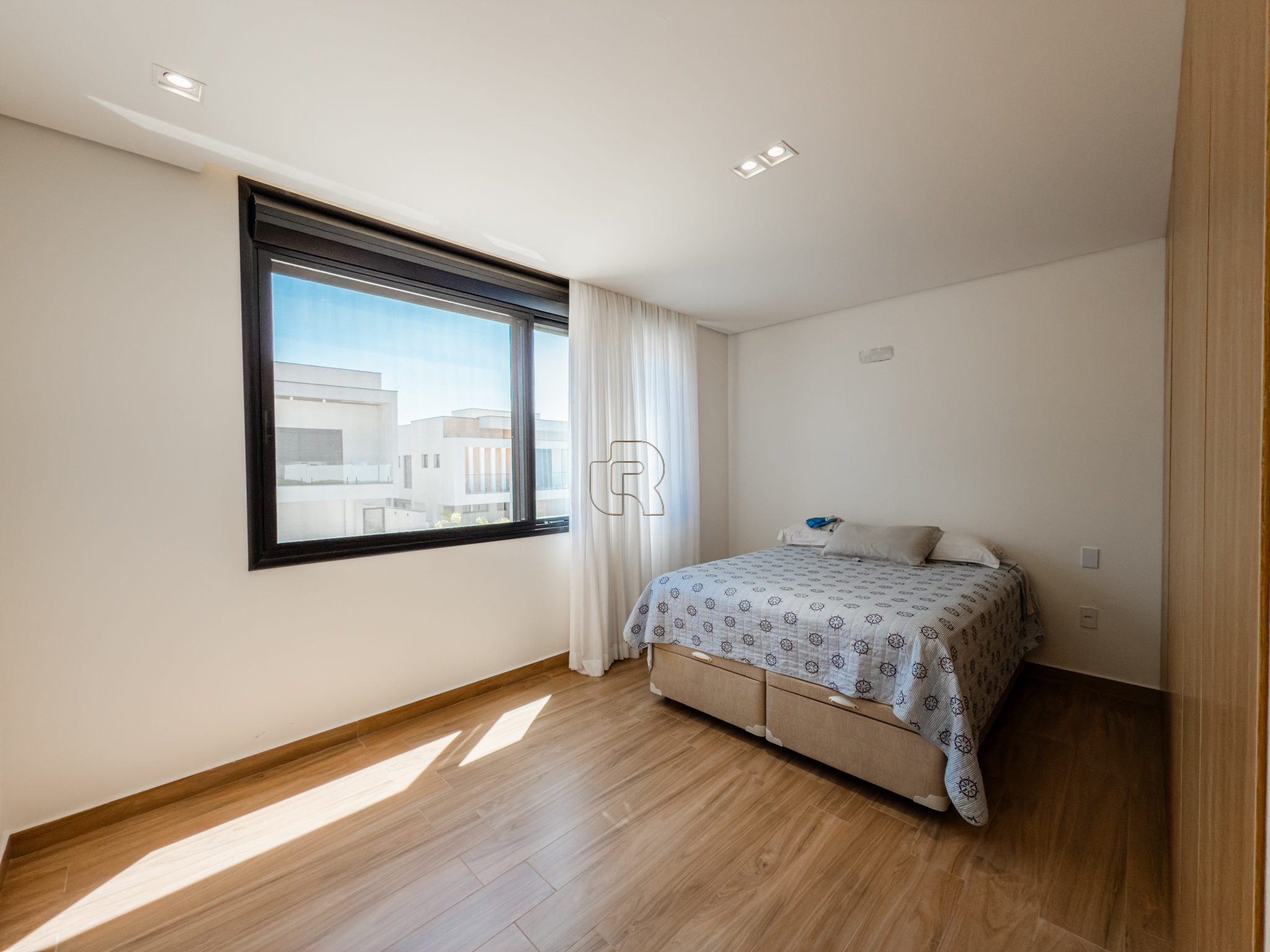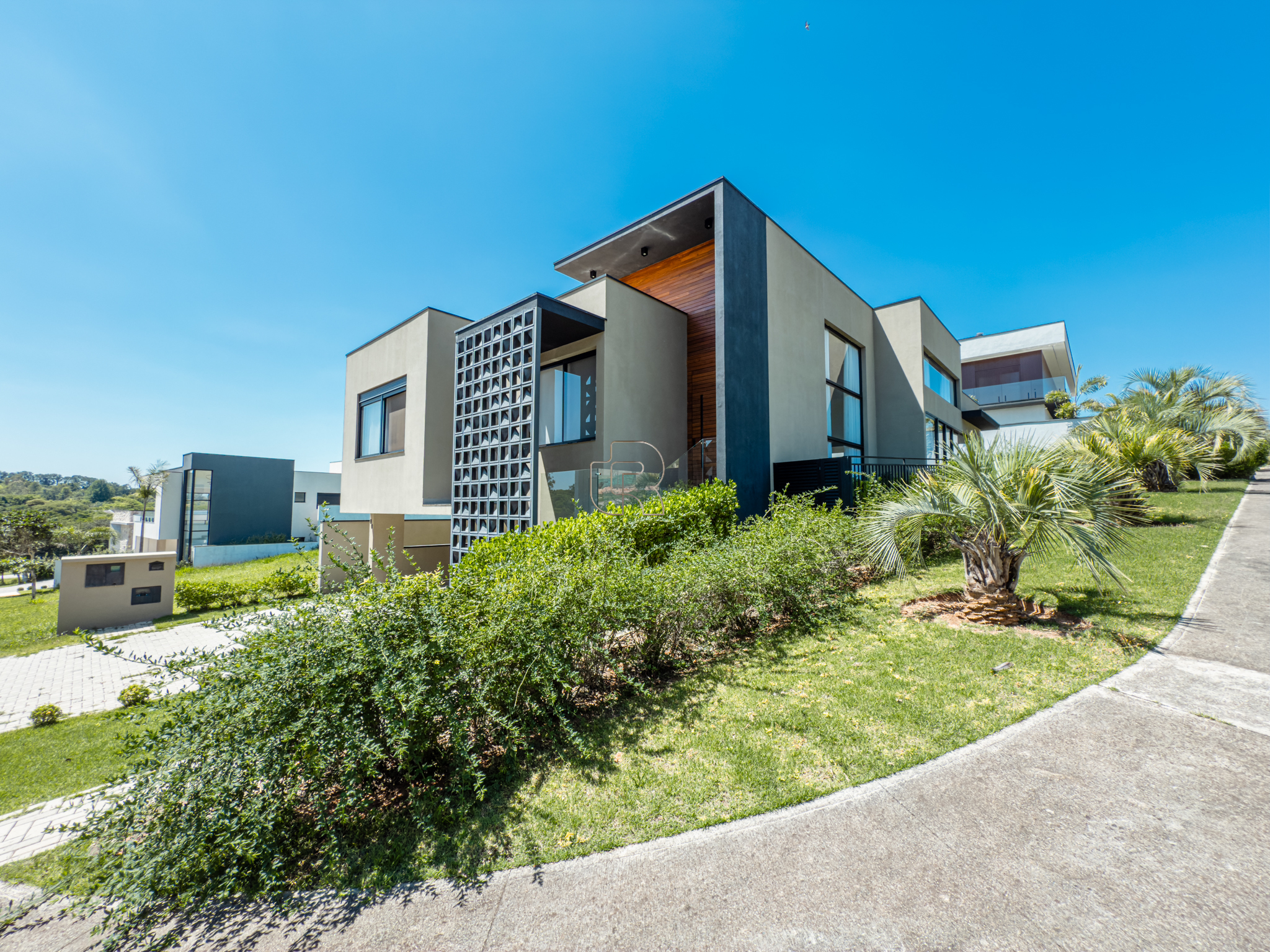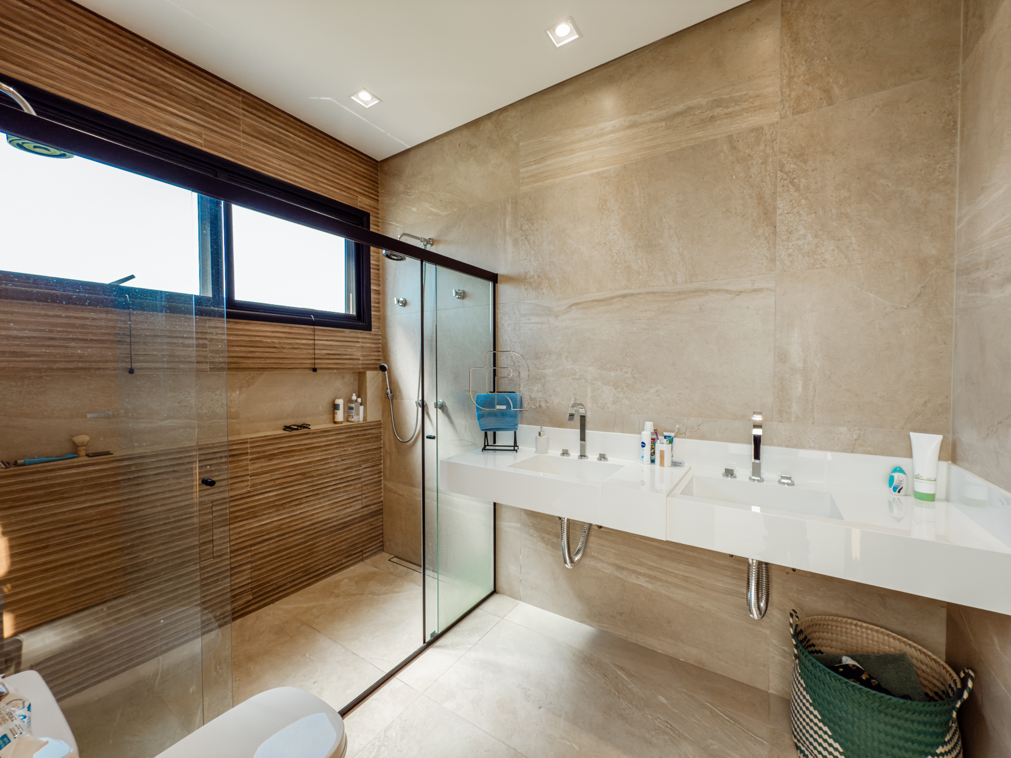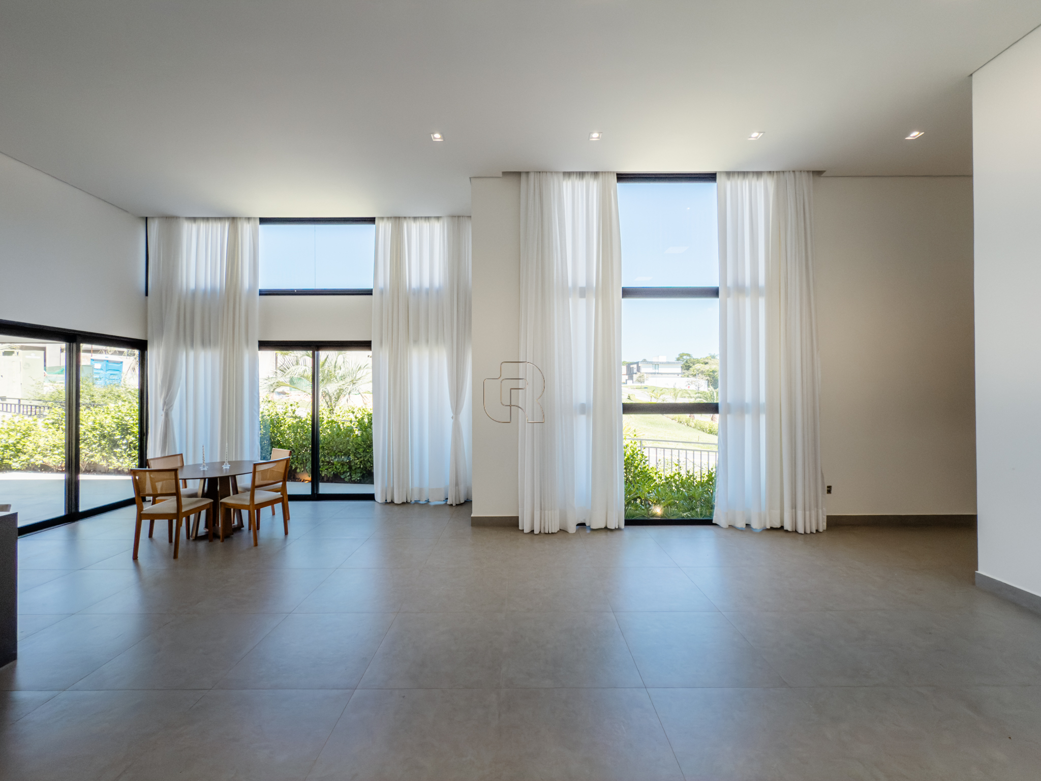 Residência contemporânea com projeto funcional e bem distribuído, composta por três suítes, sendo uma master, além de um dormitório destinado a hóspedes ou home office. O imóvel conta ainda com dois banheiros adicionais, um lavabo interno e outro externo, ambos equipados com chuveiro elétrico. As áreas sociais são totalmente integradas, com cozinha, sala de jantar e sala de TV/estar em um ambiente amplo, valorizado pelo pé-direito elevado, que proporciona maior iluminação e sensação de amplitude.