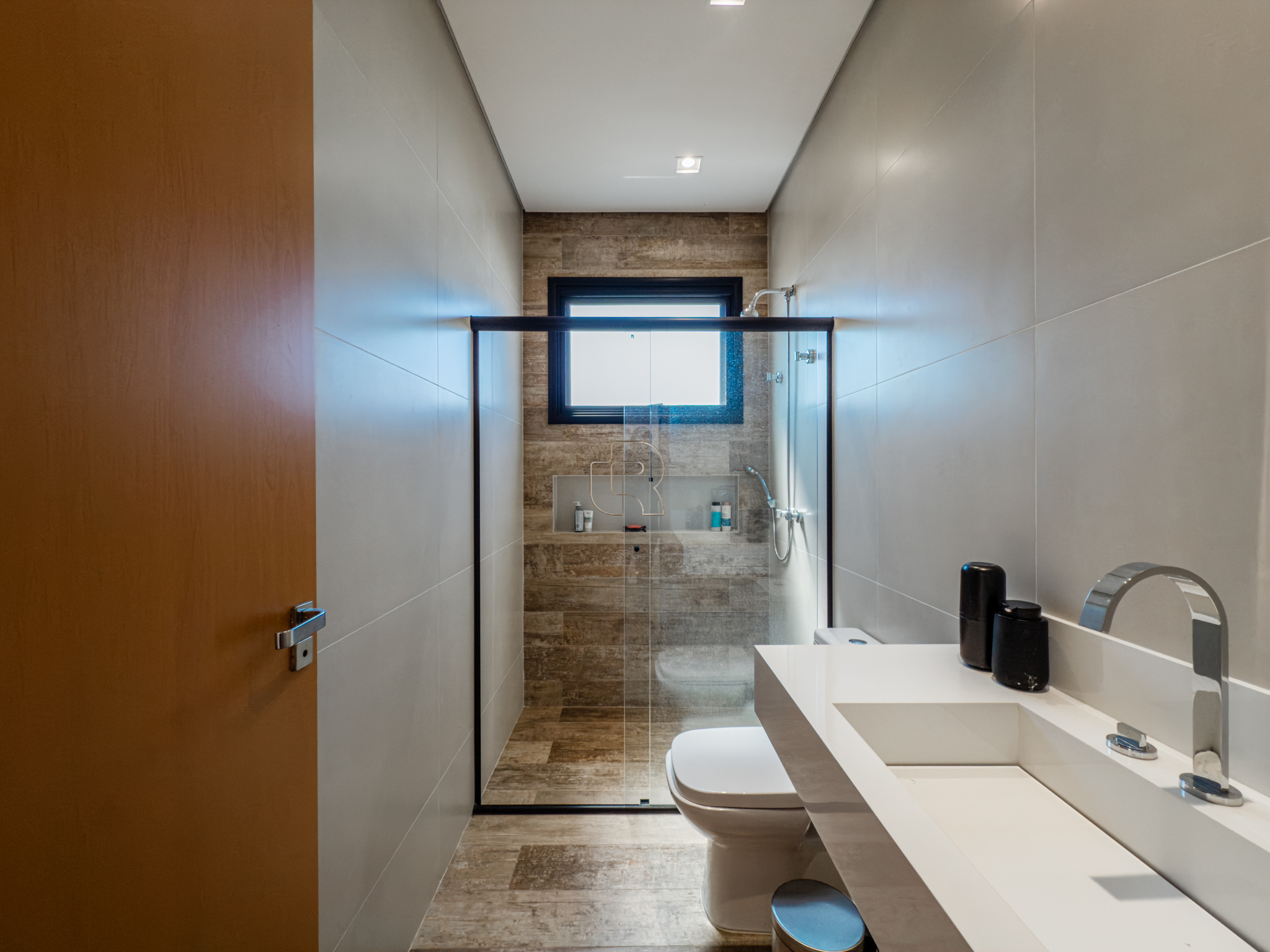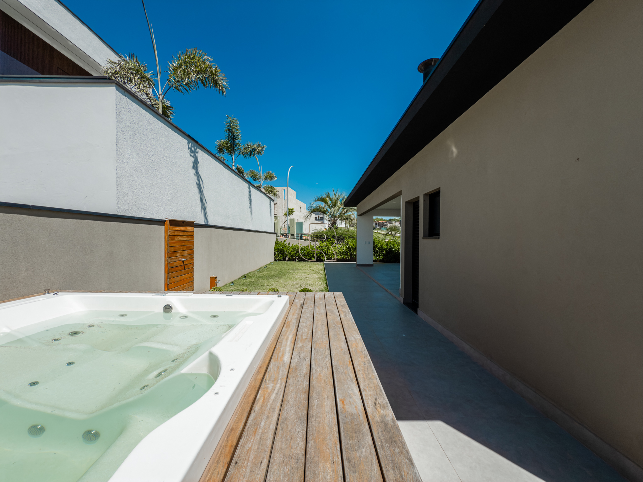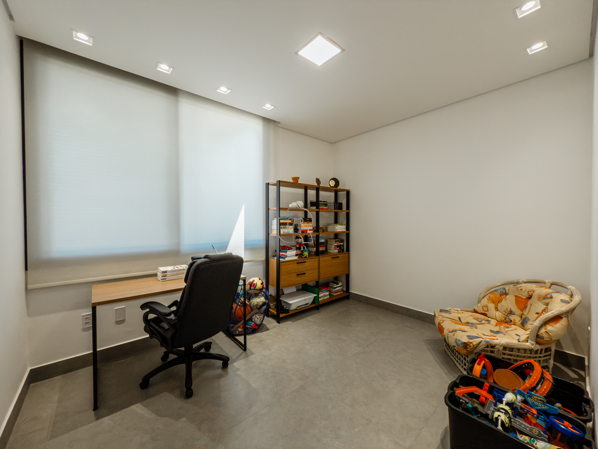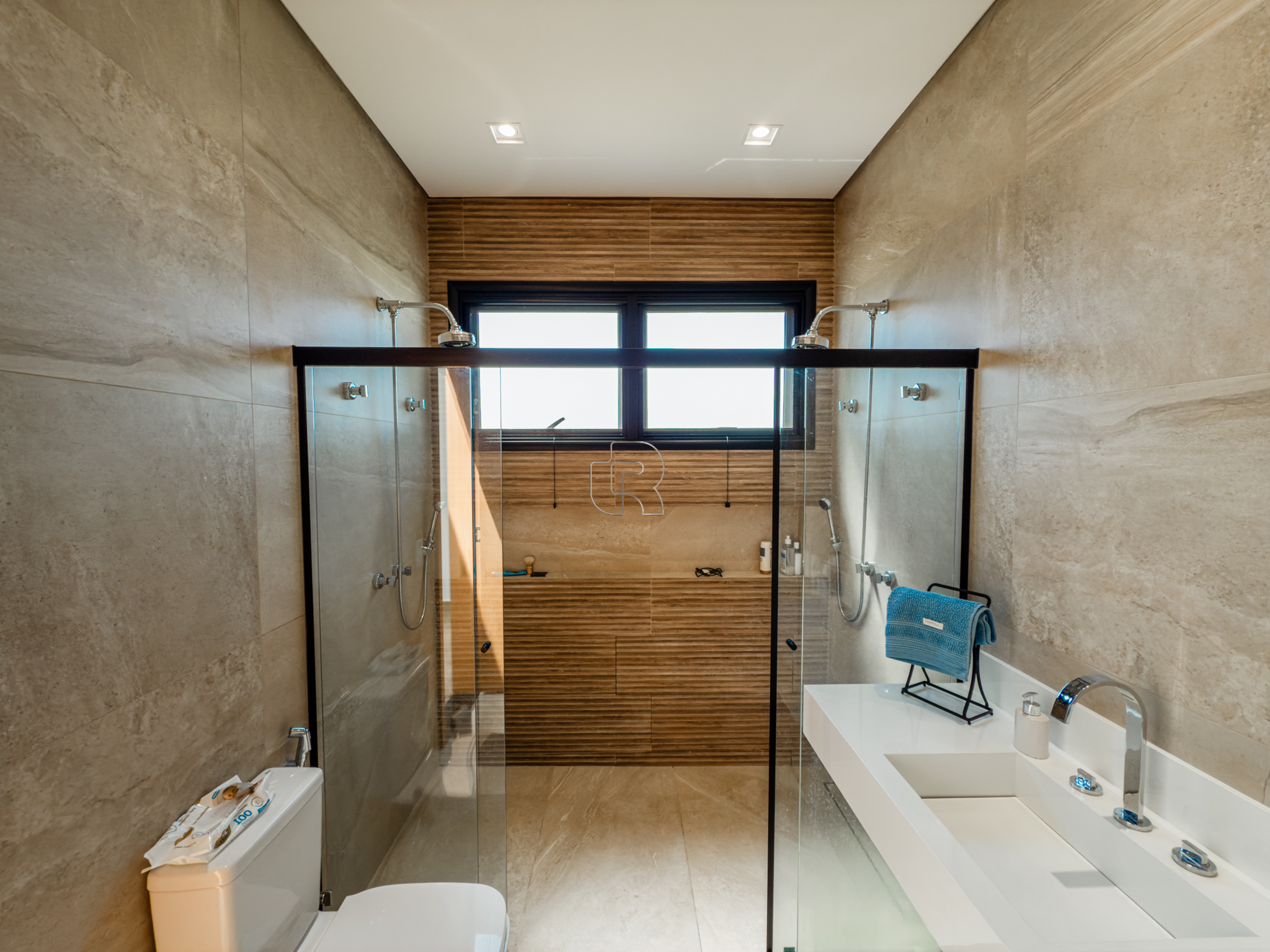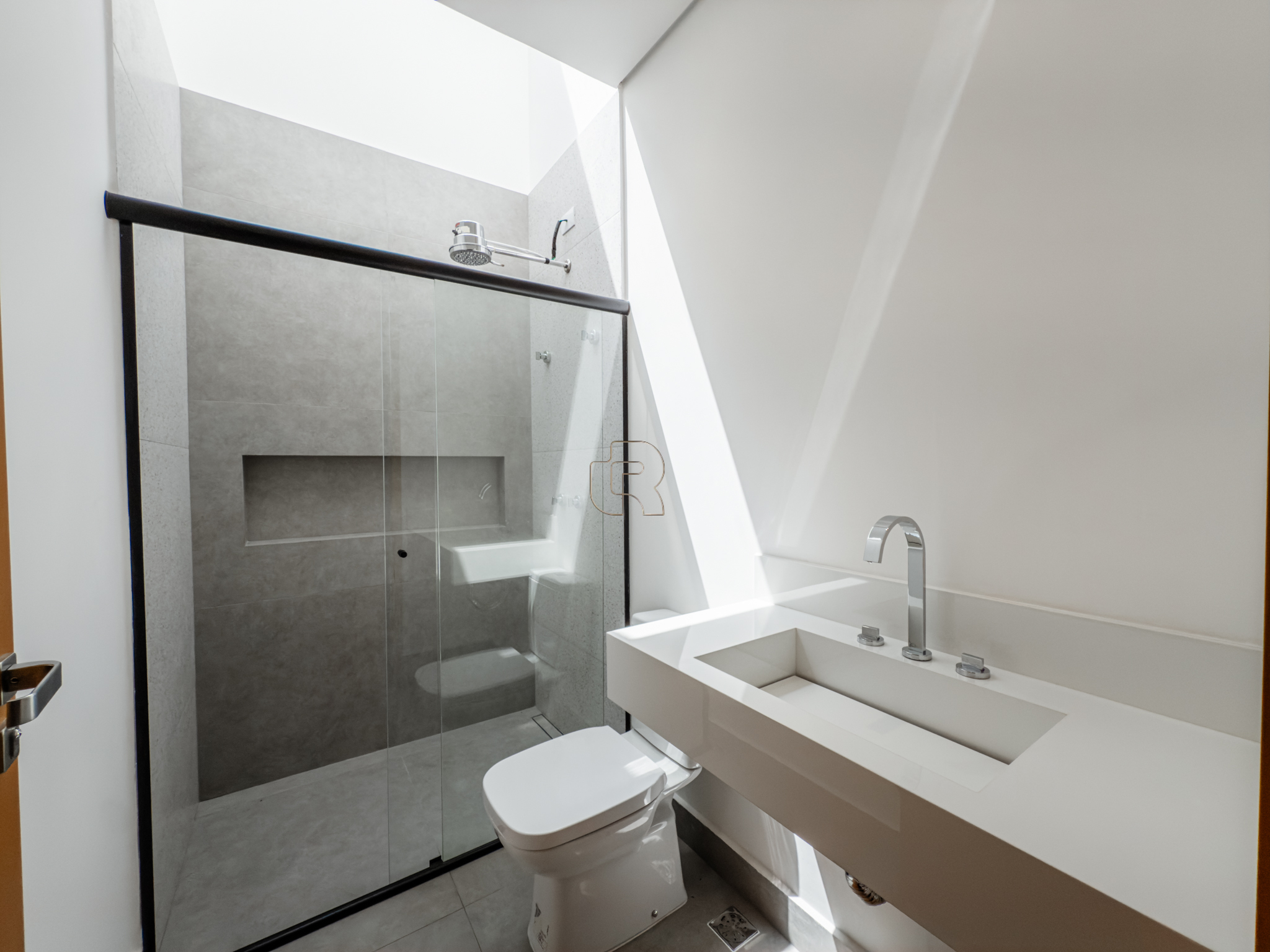 Residência contemporânea com projeto funcional e bem distribuído, composta por três suítes, sendo uma master, além de um dormitório destinado a hóspedes ou home office. O imóvel conta ainda com dois banheiros adicionais, um lavabo interno e outro externo, ambos equipados com chuveiro elétrico. As áreas sociais são totalmente integradas, com cozinha, sala de jantar e sala de TV/estar em um ambiente amplo, valorizado pelo pé-direito elevado, que proporciona maior iluminação e sensação de amplitude.