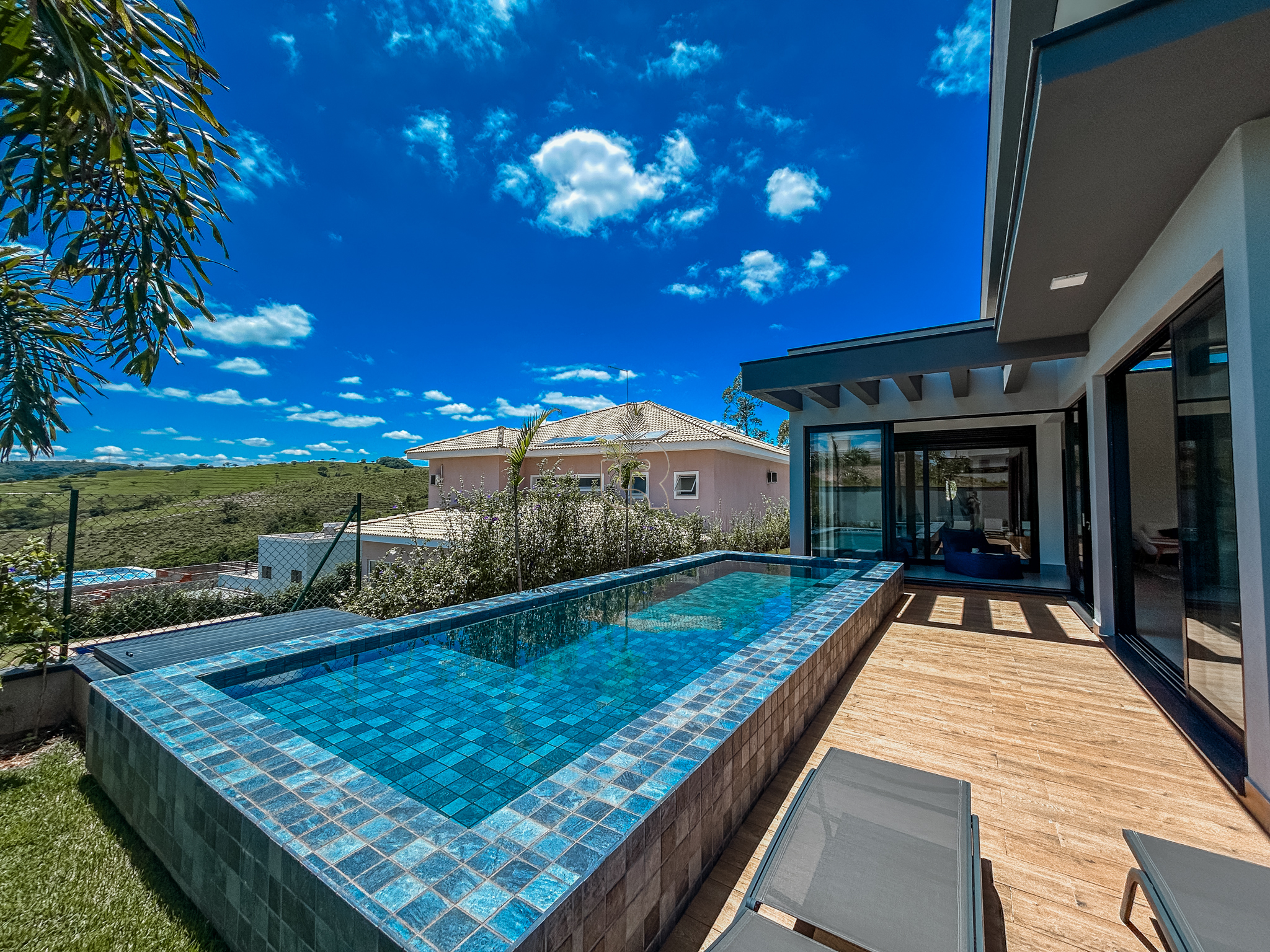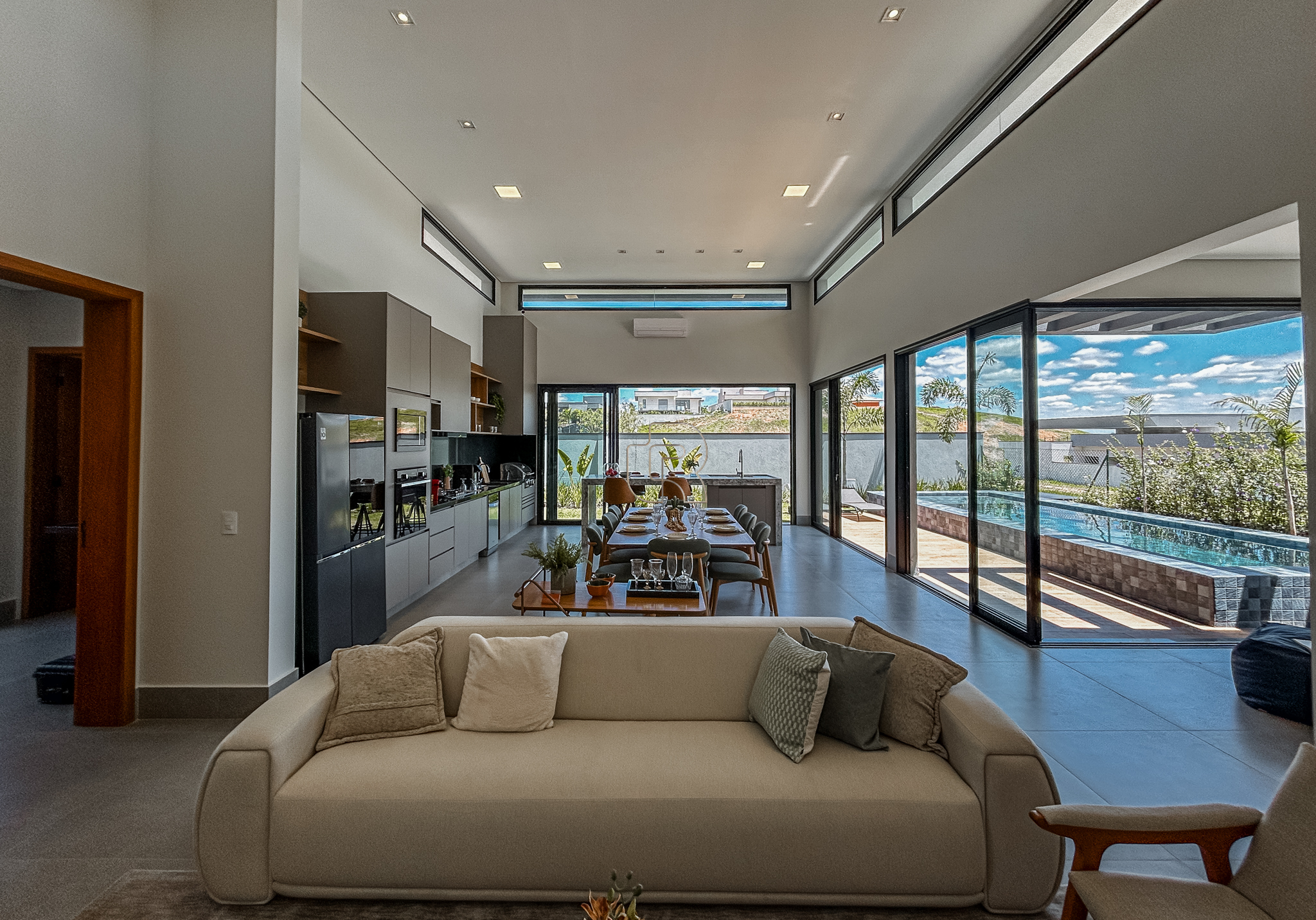 Residência de alto padrão no Residencial Campos de Santo Antônio II, em Itu/SP, pronta para morar e vendida com porteira fechada. São 354 m² de construção em um terreno de 700 m², com projeto que une sofisticação, conforto e contato com a natureza.