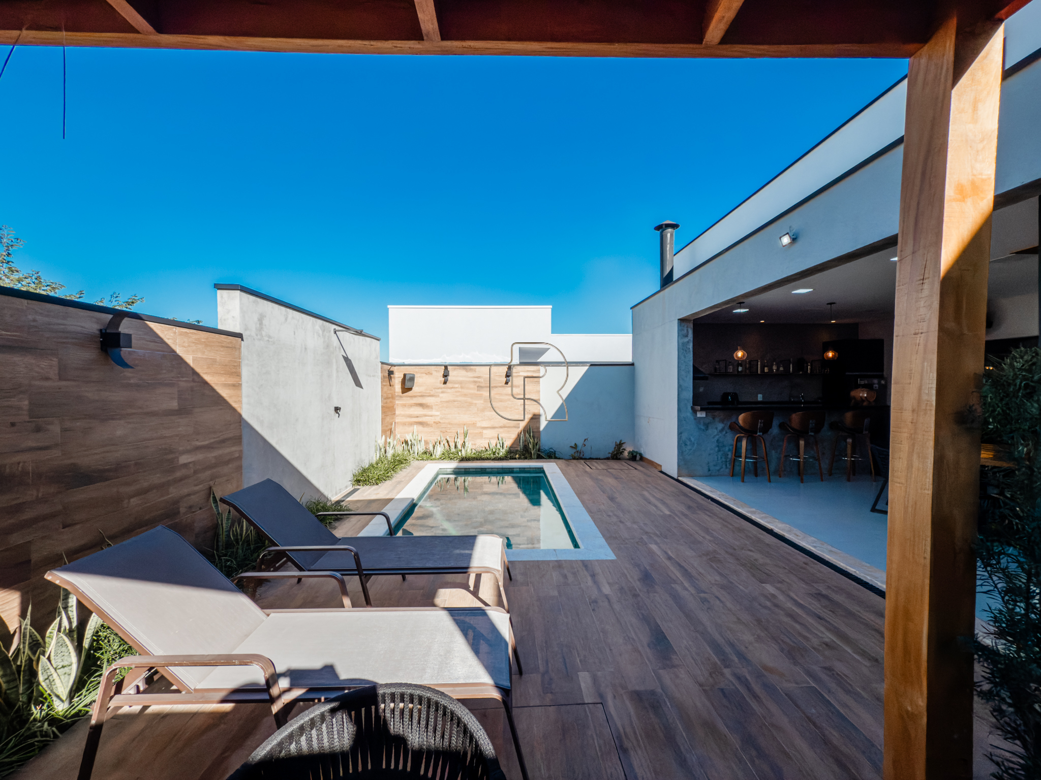 Residência completa, localizada em condomínio de excelente padrão e privilegiada localização, a poucos minutos do centro da cidade. O imóvel conta com quatro dormitórios, sendo três suítes e uma suíte master equipada com closet e banheira de hidromassagem. Ambientes integrados e harmoniosos compõem o living, a sala de jantar e a cozinha. Dispõe ainda de sala de TV e cinco banheiros no total. A área gourmet é totalmente equipada, com churrasqueira, geladeira, televisor e acabamentos de alto padrão. A cozinha principal possui cooktop, coifa, torre quente e geladeira. Na área externa, destaca-se a piscina com aquecimento elétrico, pergolado e paisagismo diferenciado.
