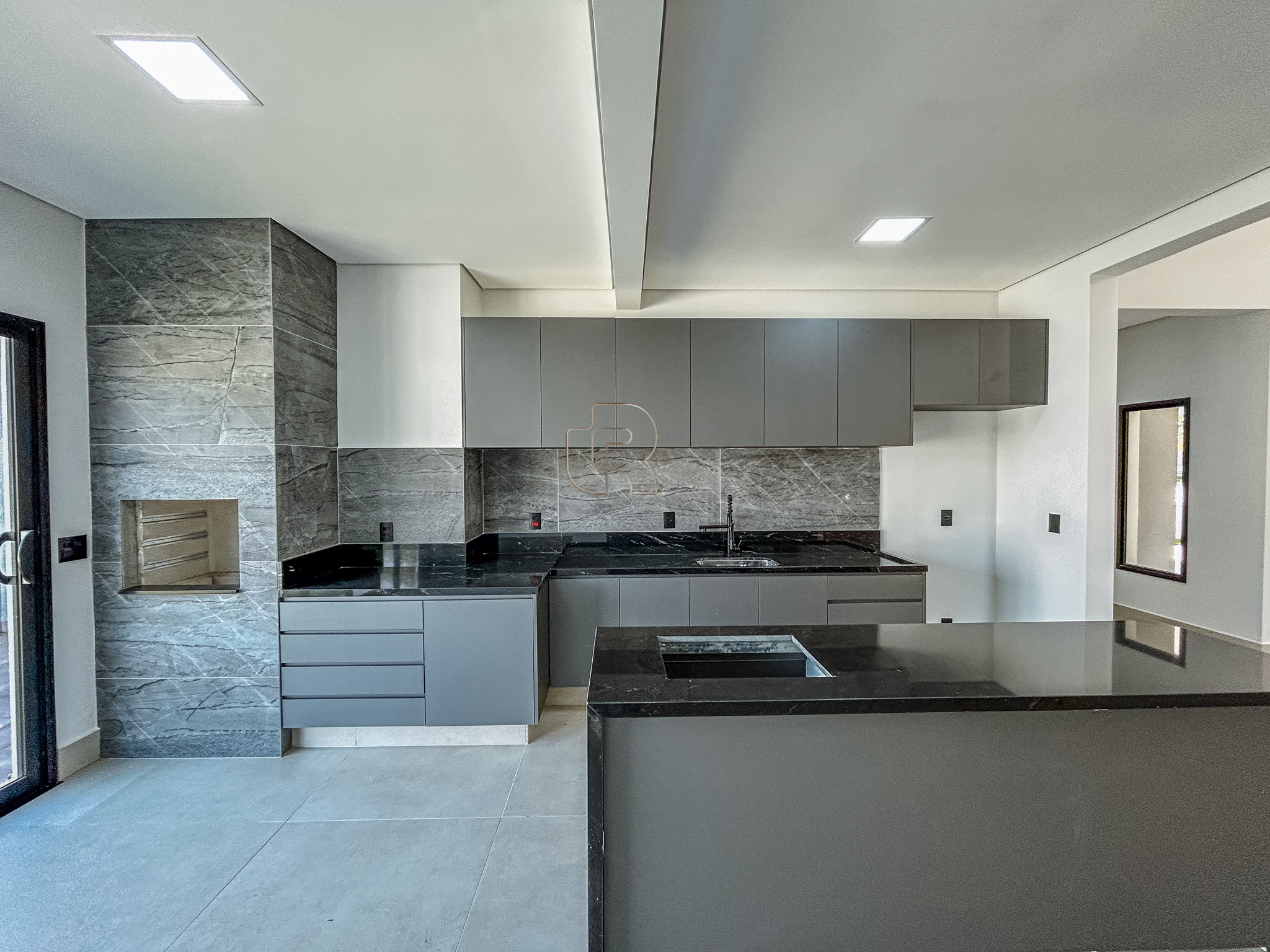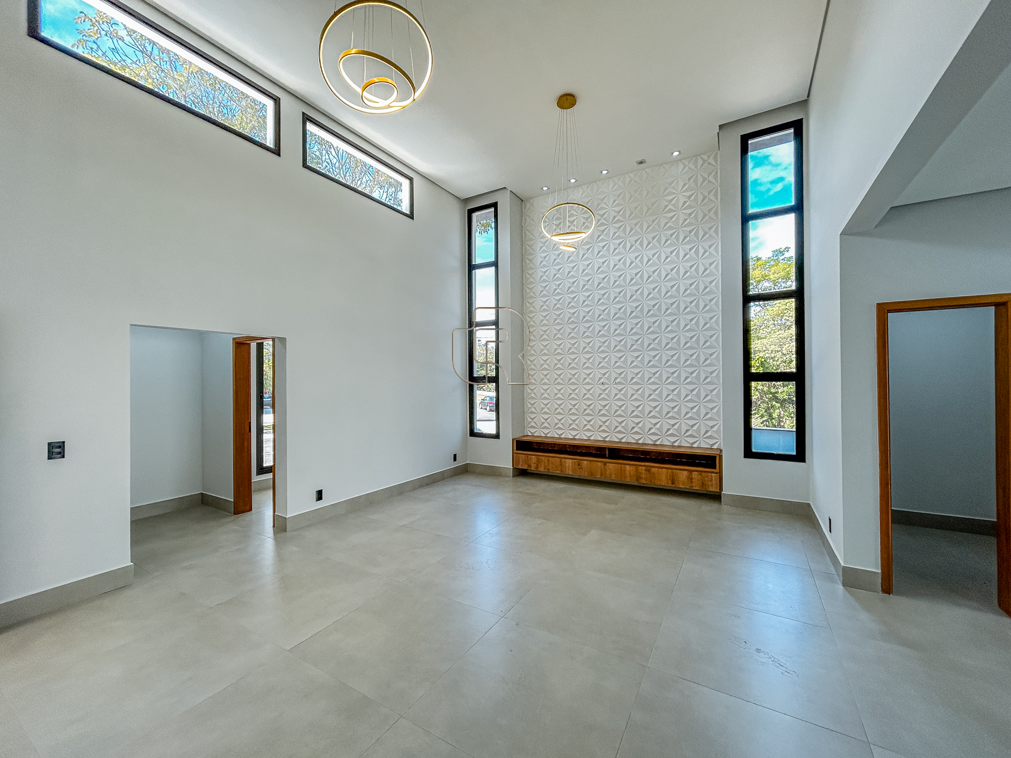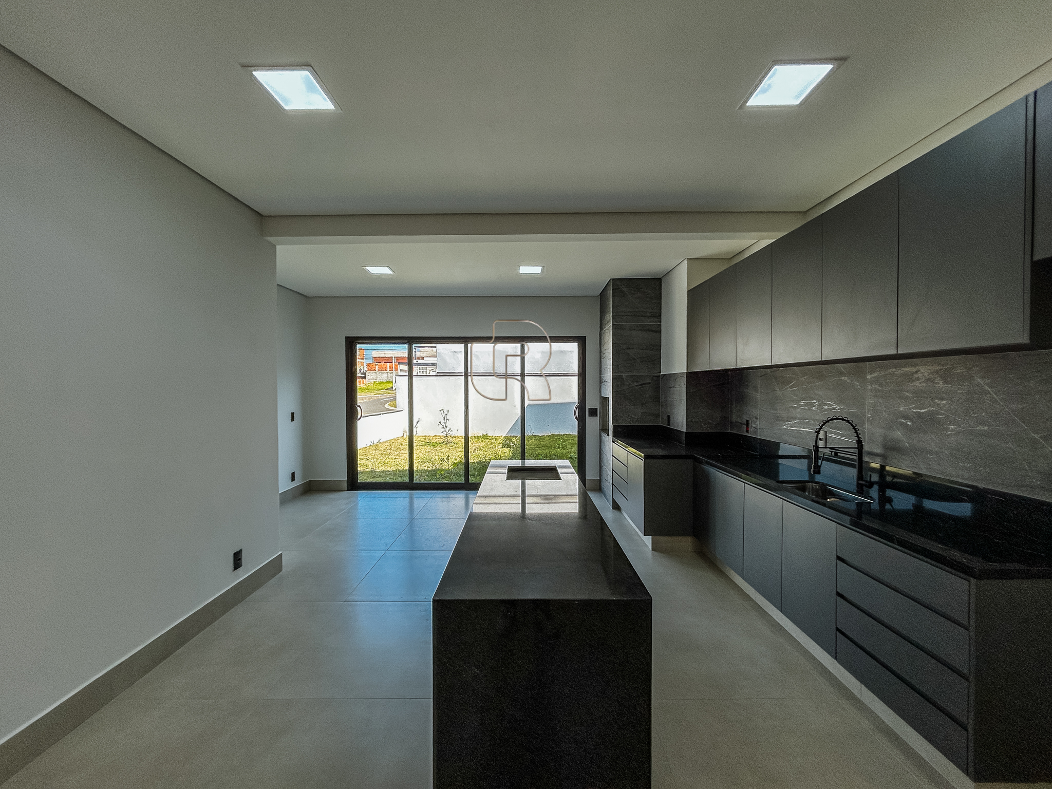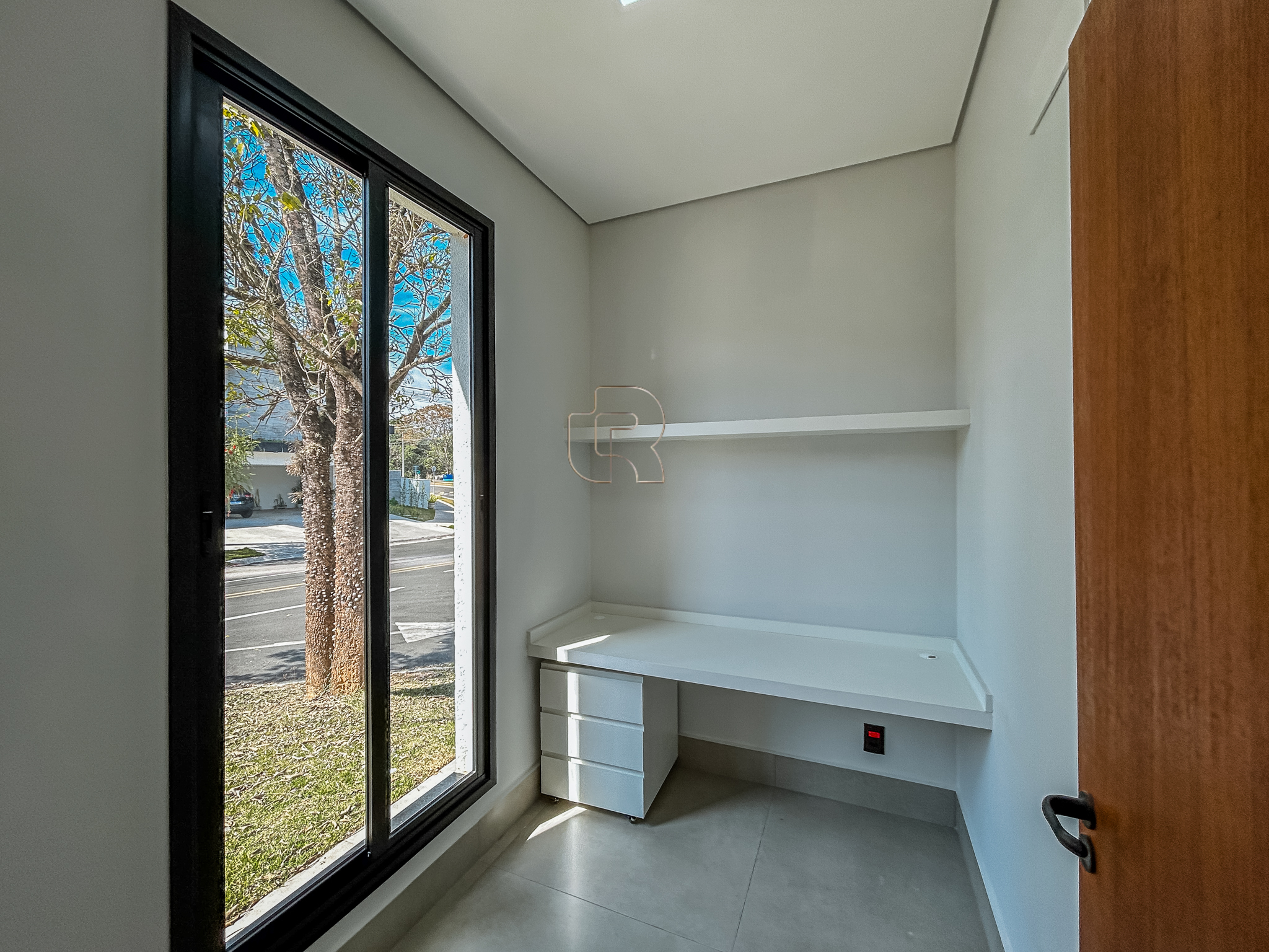 Apresenta excelente padrão de acabamento, com móveis planejados em todos os ambientes, piso em porcelanato, projeto de iluminação e detalhes em gesso. A residência possui infraestrutura para instalação de ar-condicionado em todas as suítes, salas e escritório, preparo para aquecimento solar de água e paisagismo cuidadosamente elaborado.