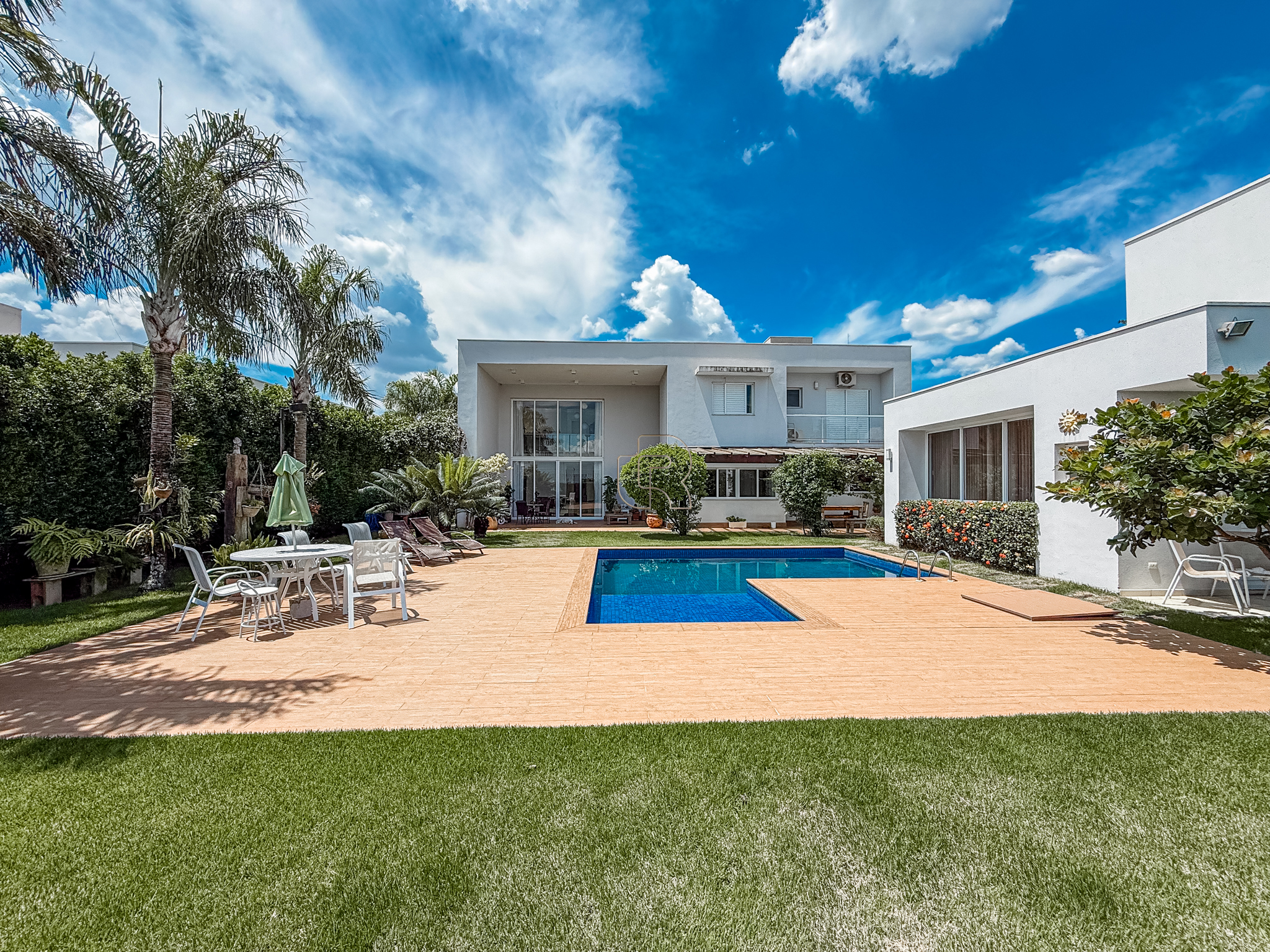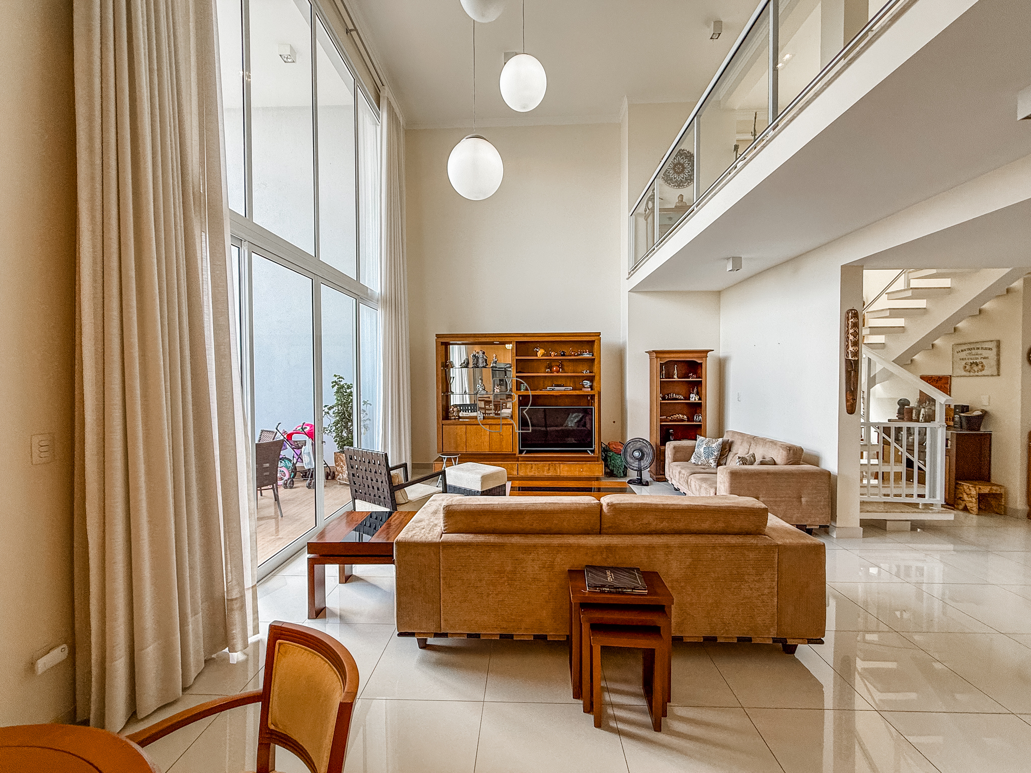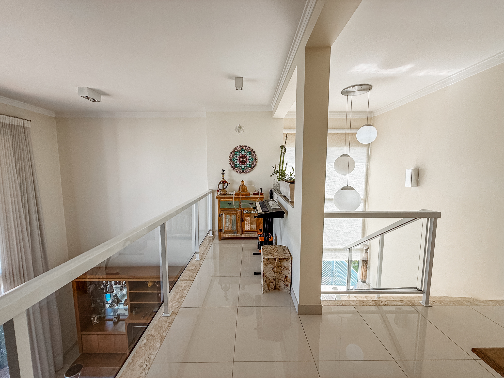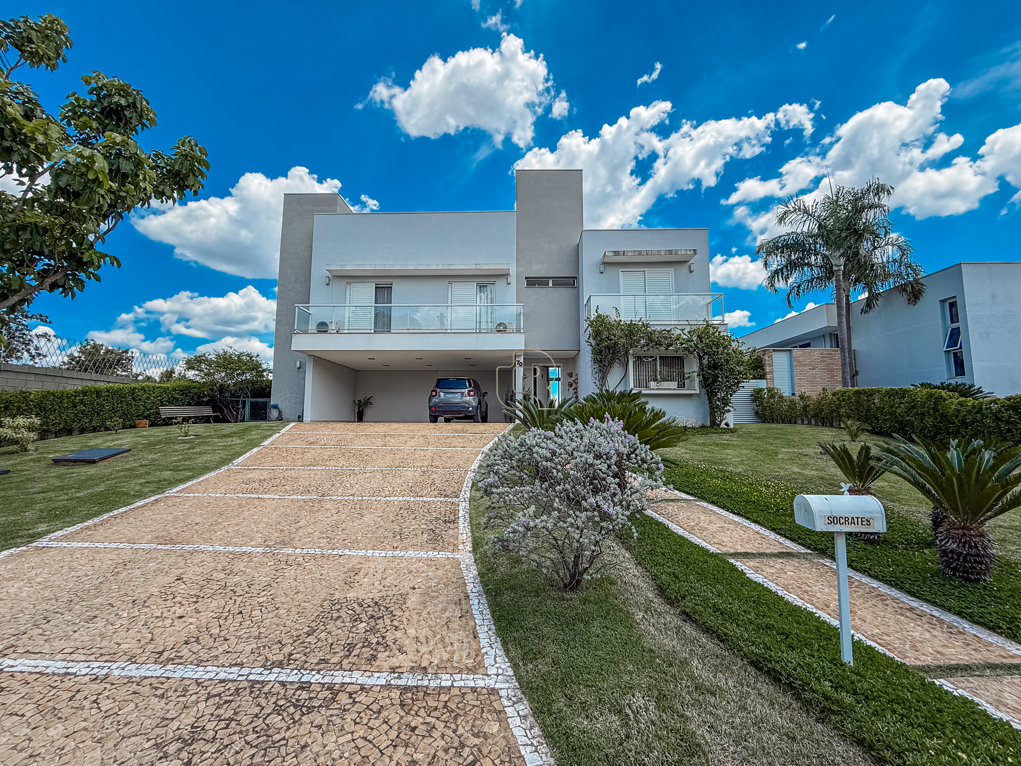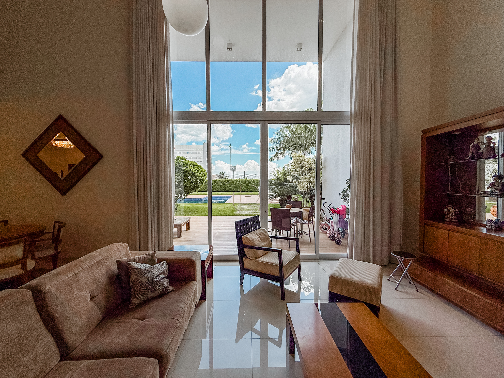 Esta ampla residência combina conforto, elegância e funcionalidade. No térreo, conta com sala de estar com pé-direito de 6 metros, sala de jantar, escritório, lavabo, área gourmet integrada à cozinha com copa, além de área de serviço completa, despensa, quarto e banheiro de empregada. No pavimento superior, dispõe de sala íntima com home, três suítes, sendo a master com closet e hidromassagem, além de quarto de hóspedes, ambiente multiuso e banheiro. A área externa oferece quintal com pergolado, ateliê ou oficina, piscina e paisagismo. O imóvel possui sistema de água com grande capacidade, placas solares e garagem para três carros cobertos e mais seis descobertos, em um dos condomínios mais valorizados da cidade.