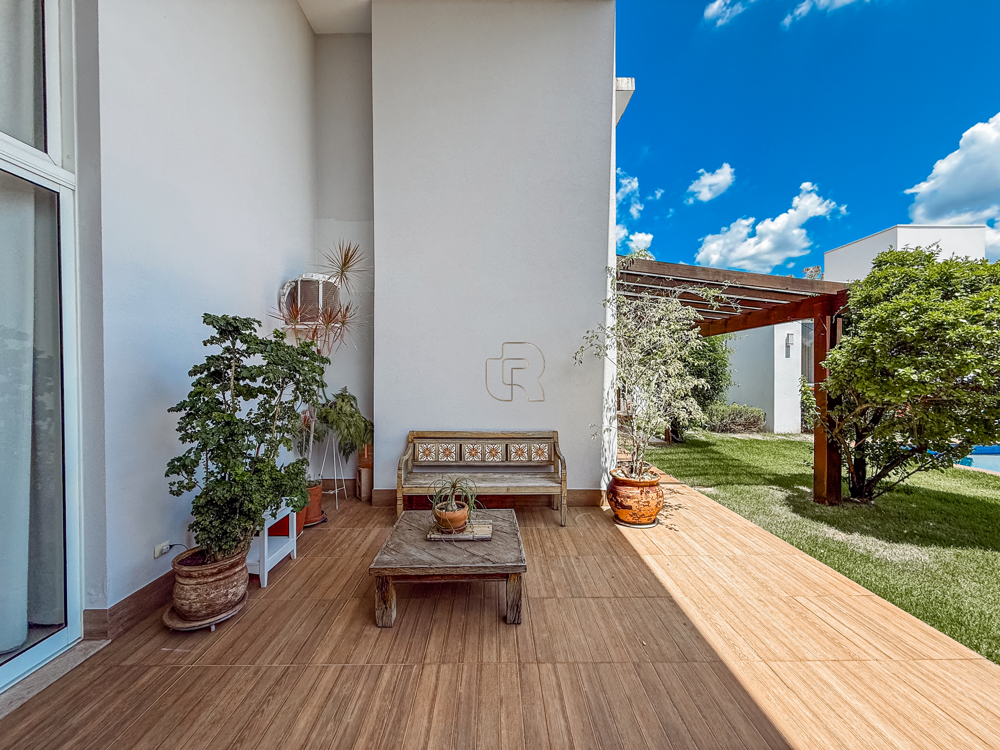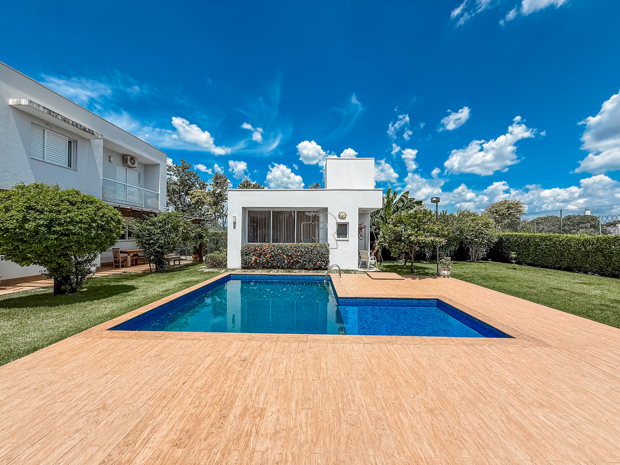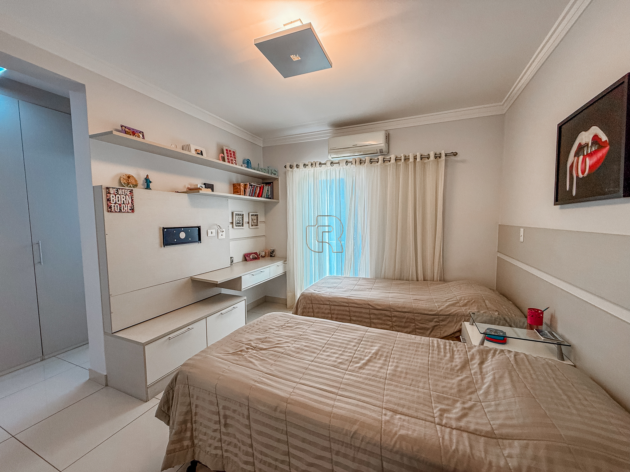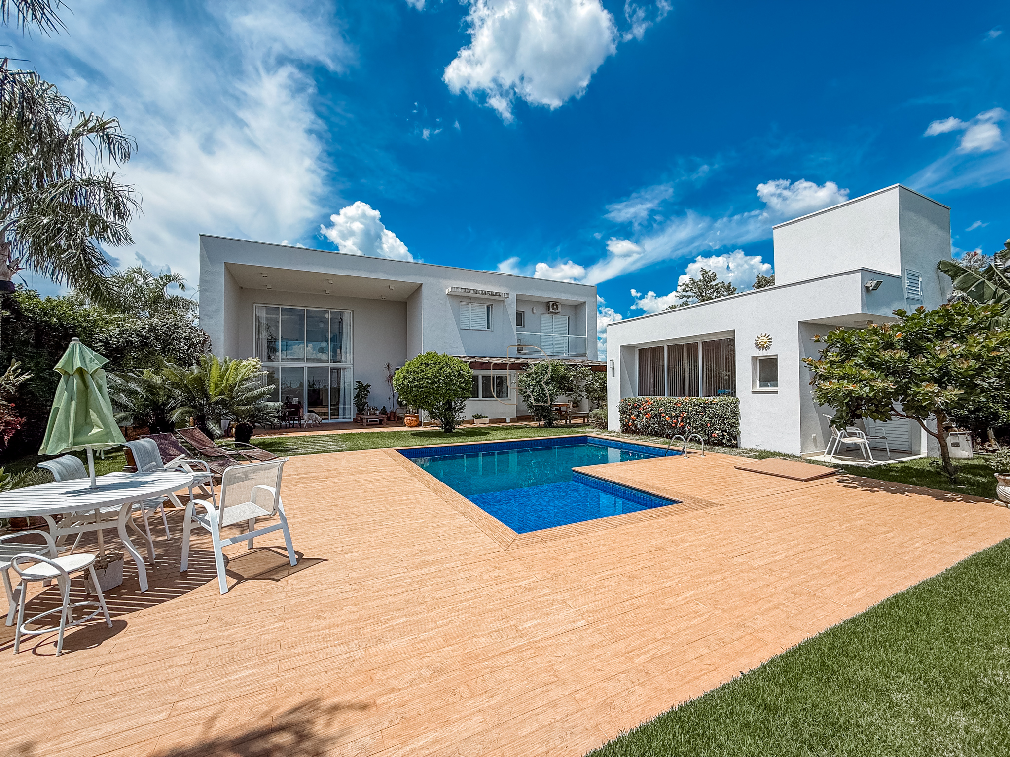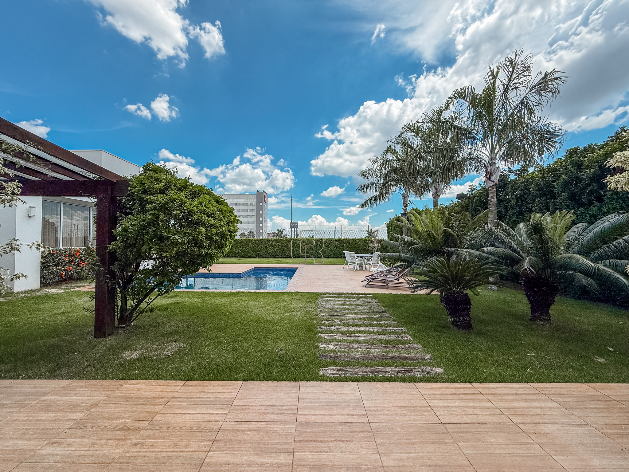 Esta ampla residência combina conforto, elegância e funcionalidade. No térreo, conta com sala de estar com pé-direito de 6 metros, sala de jantar, escritório, lavabo, área gourmet integrada à cozinha com copa, além de área de serviço completa, despensa, quarto e banheiro de empregada. No pavimento superior, dispõe de sala íntima com home, três suítes, sendo a master com closet e hidromassagem, além de quarto de hóspedes, ambiente multiuso e banheiro. A área externa oferece quintal com pergolado, ateliê ou oficina, piscina e paisagismo. O imóvel possui sistema de água com grande capacidade, placas solares e garagem para três carros cobertos e mais seis descobertos, em um dos condomínios mais valorizados da cidade.