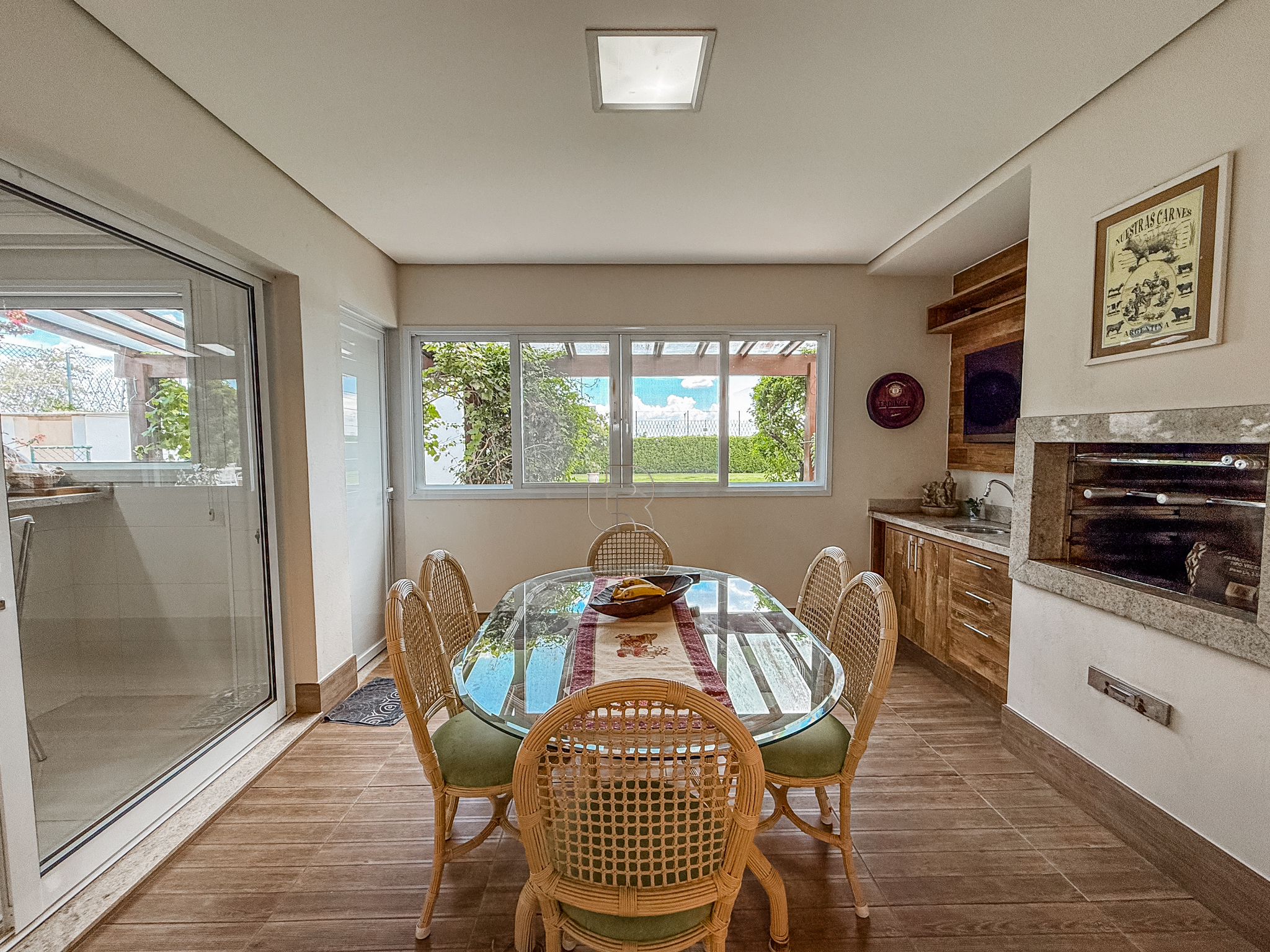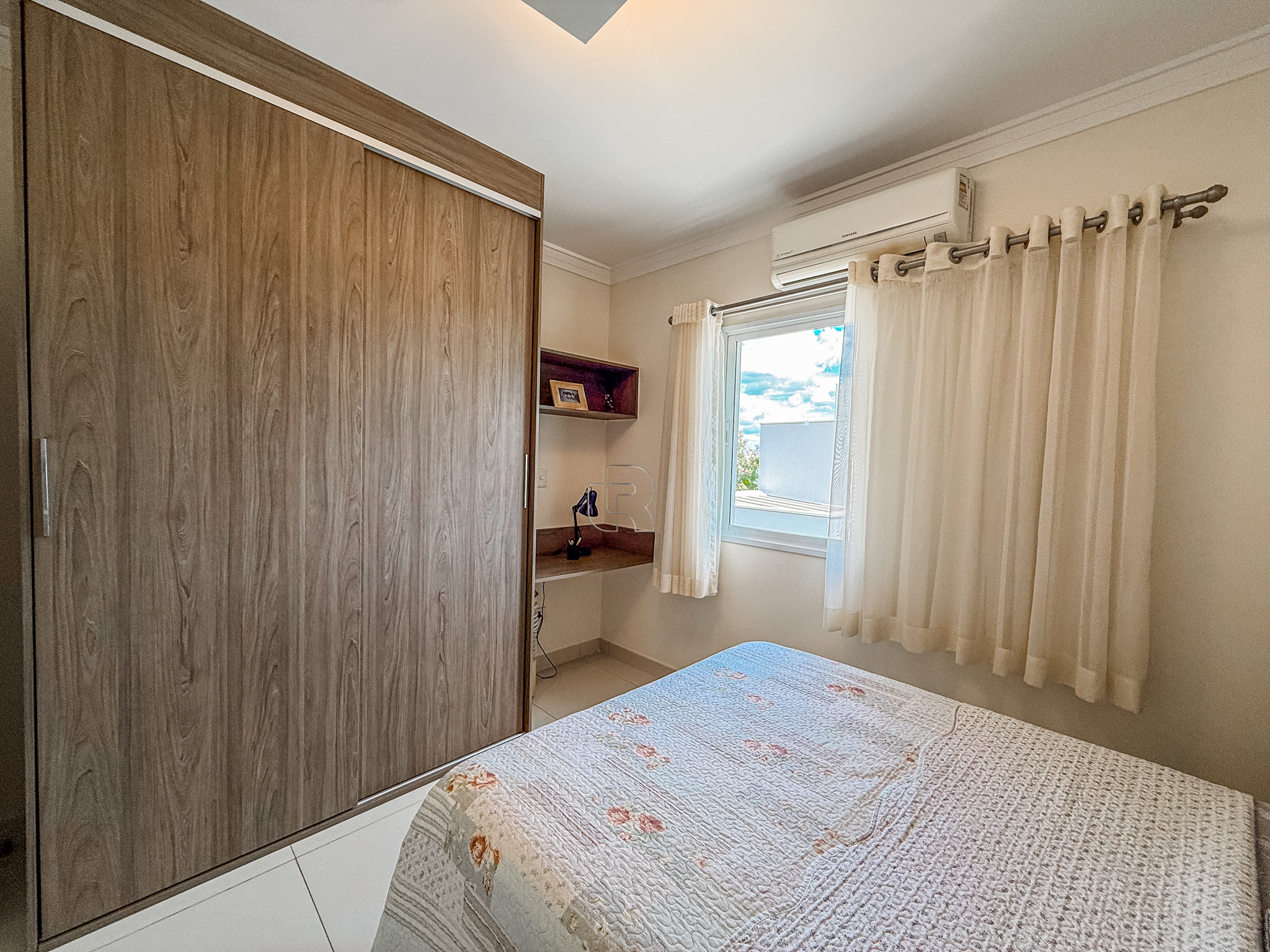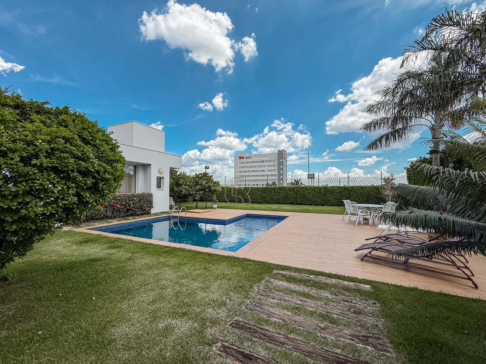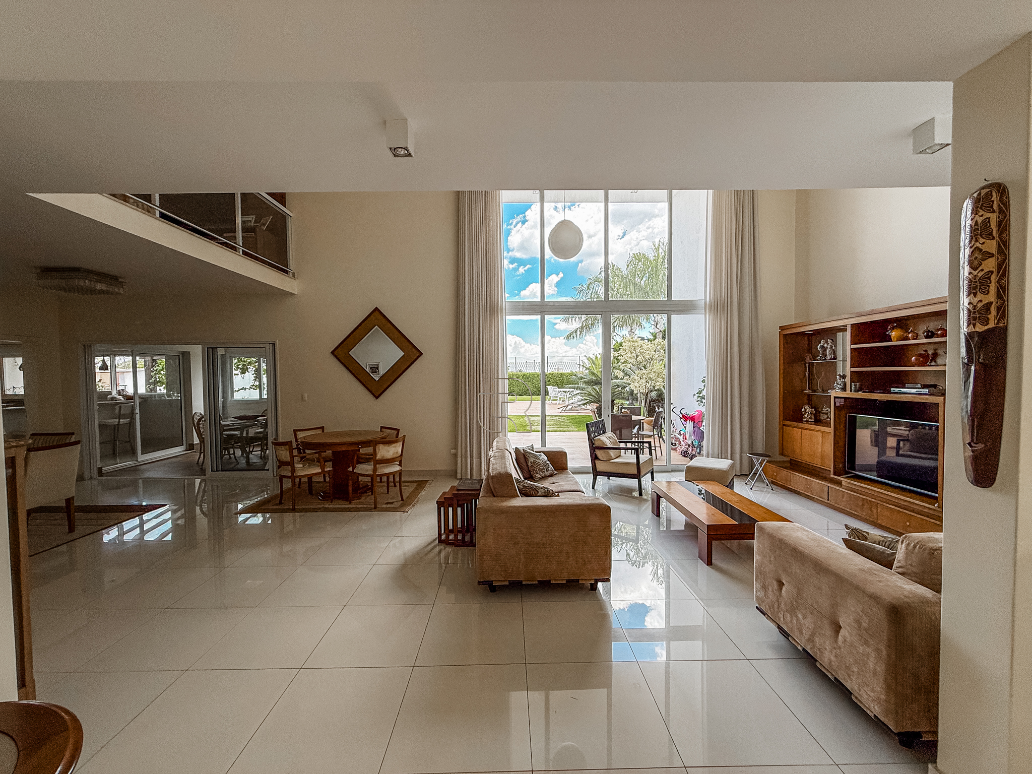 Esta ampla residência combina conforto, elegância e funcionalidade. No térreo, conta com sala de estar com pé-direito de 6 metros, sala de jantar, escritório, lavabo, área gourmet integrada à cozinha com copa, além de área de serviço completa, despensa, quarto e banheiro de empregada. No pavimento superior, dispõe de sala íntima com home, três suítes, sendo a master com closet e hidromassagem, além de quarto de hóspedes, ambiente multiuso e banheiro. A área externa oferece quintal com pergolado, ateliê ou oficina, piscina e paisagismo. O imóvel possui sistema de água com grande capacidade, placas solares e garagem para três carros cobertos e mais seis descobertos, em um dos condomínios mais valorizados da cidade.