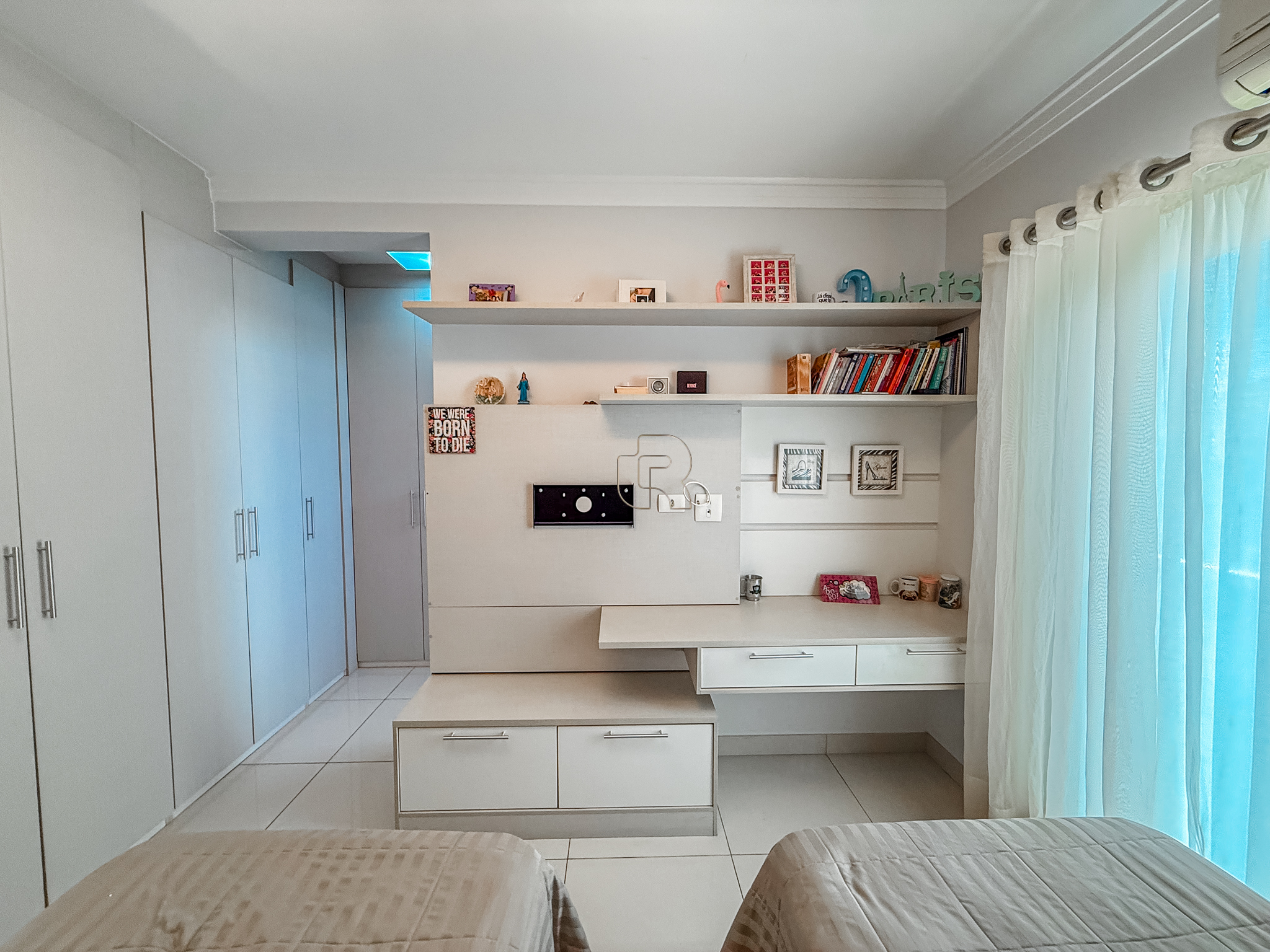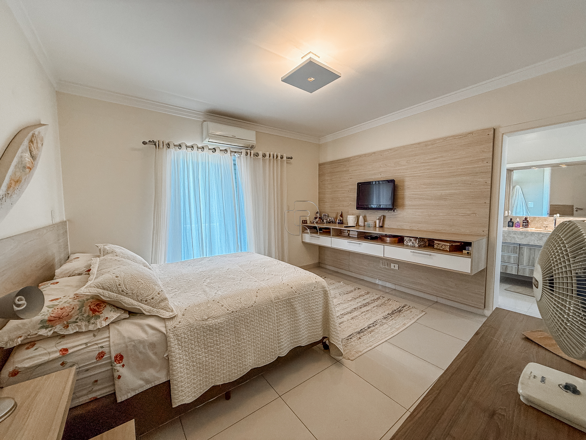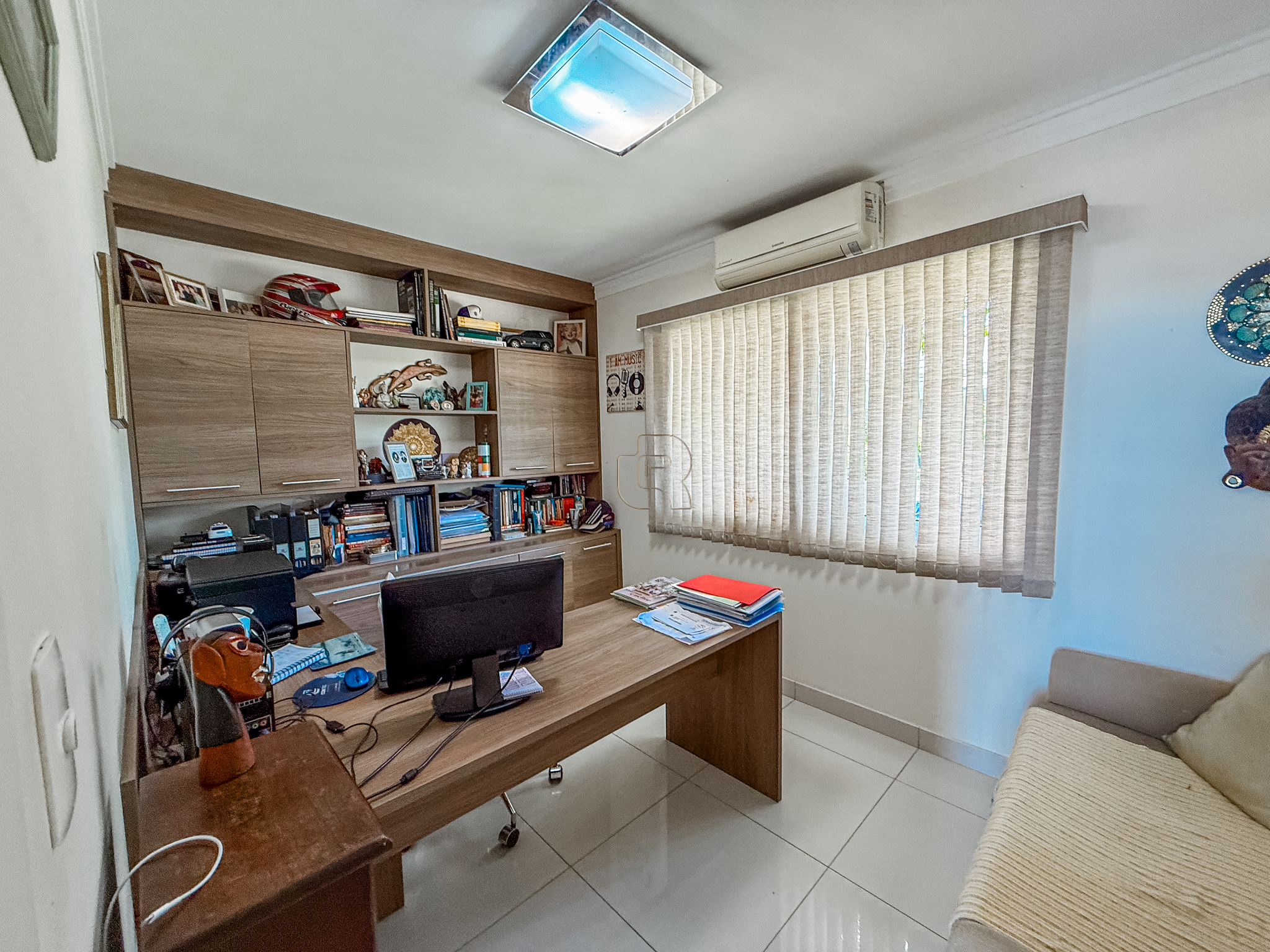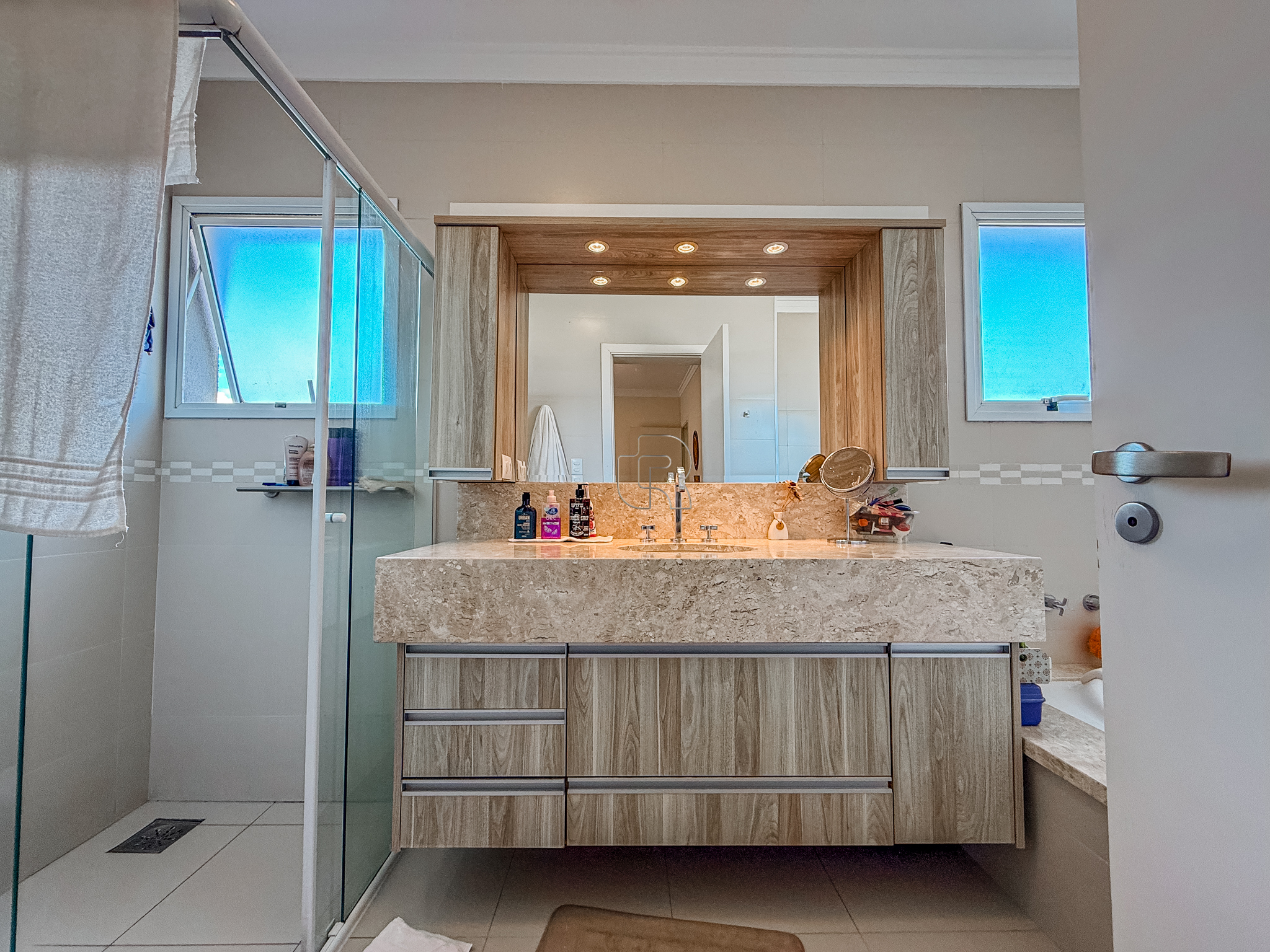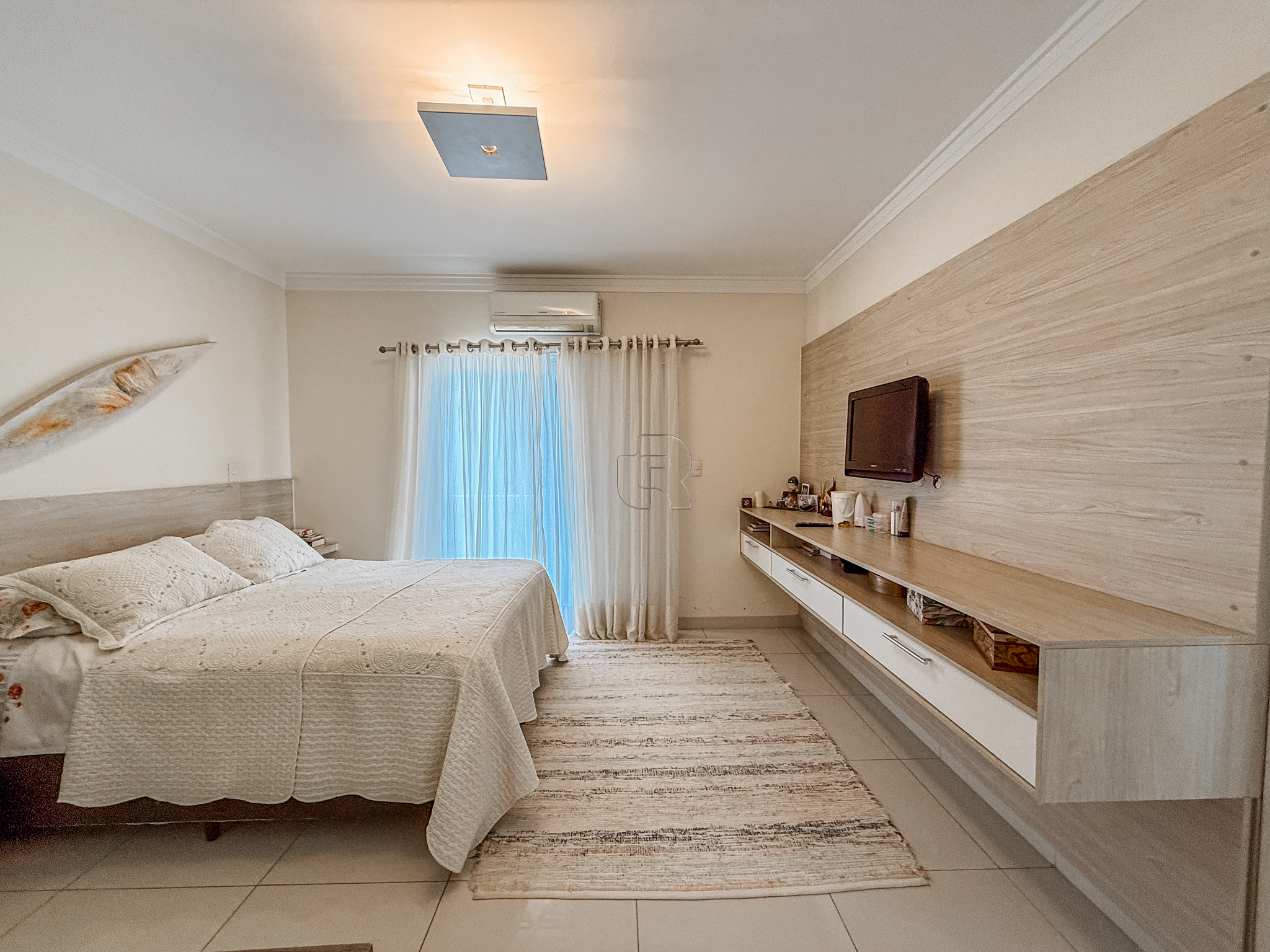 Esta ampla residência combina conforto, elegância e funcionalidade. No térreo, conta com sala de estar com pé-direito de 6 metros, sala de jantar, escritório, lavabo, área gourmet integrada à cozinha com copa, além de área de serviço completa, despensa, quarto e banheiro de empregada. No pavimento superior, dispõe de sala íntima com home, três suítes, sendo a master com closet e hidromassagem, além de quarto de hóspedes, ambiente multiuso e banheiro. A área externa oferece quintal com pergolado, ateliê ou oficina, piscina e paisagismo. O imóvel possui sistema de água com grande capacidade, placas solares e garagem para três carros cobertos e mais seis descobertos, em um dos condomínios mais valorizados da cidade.