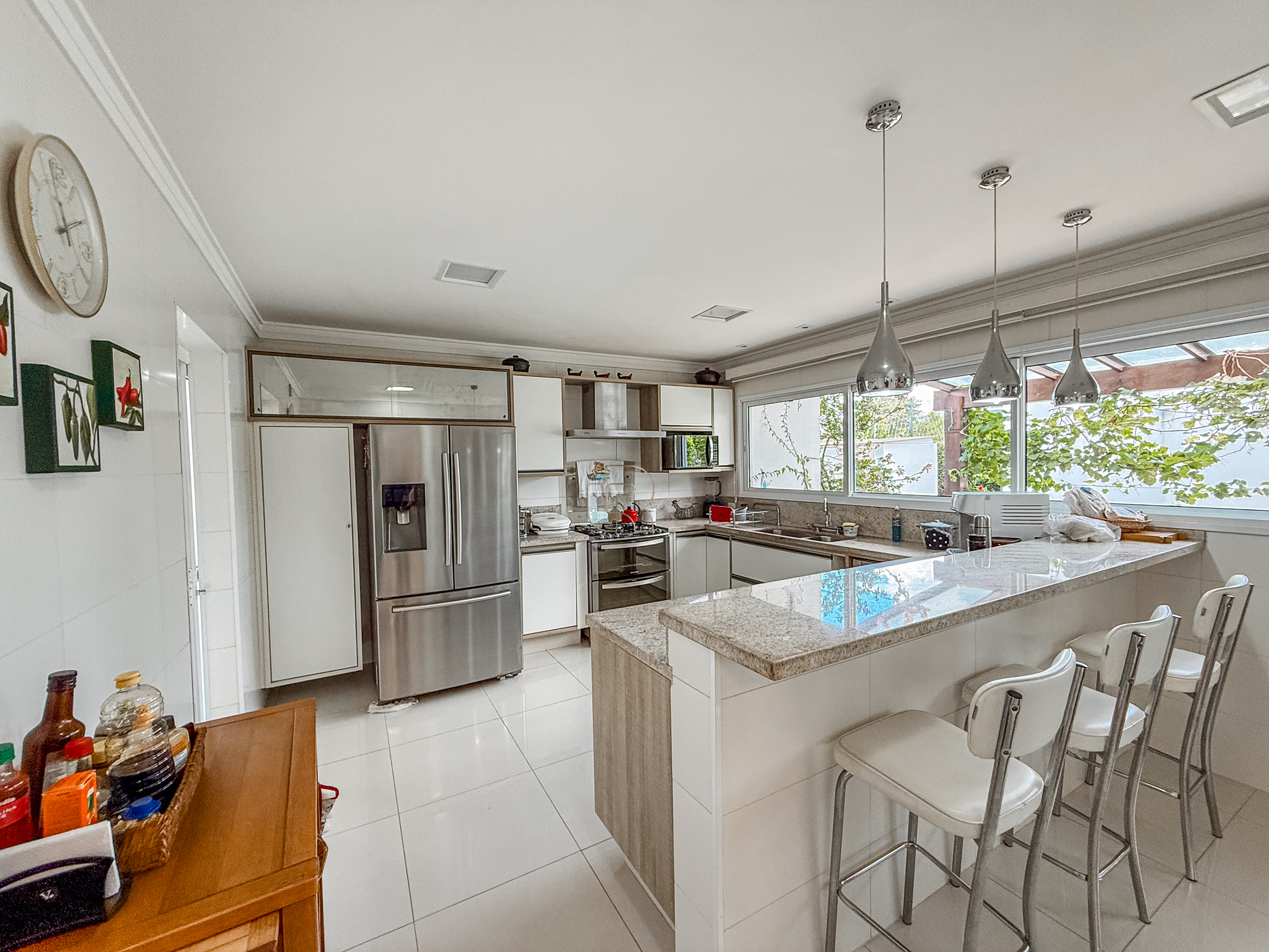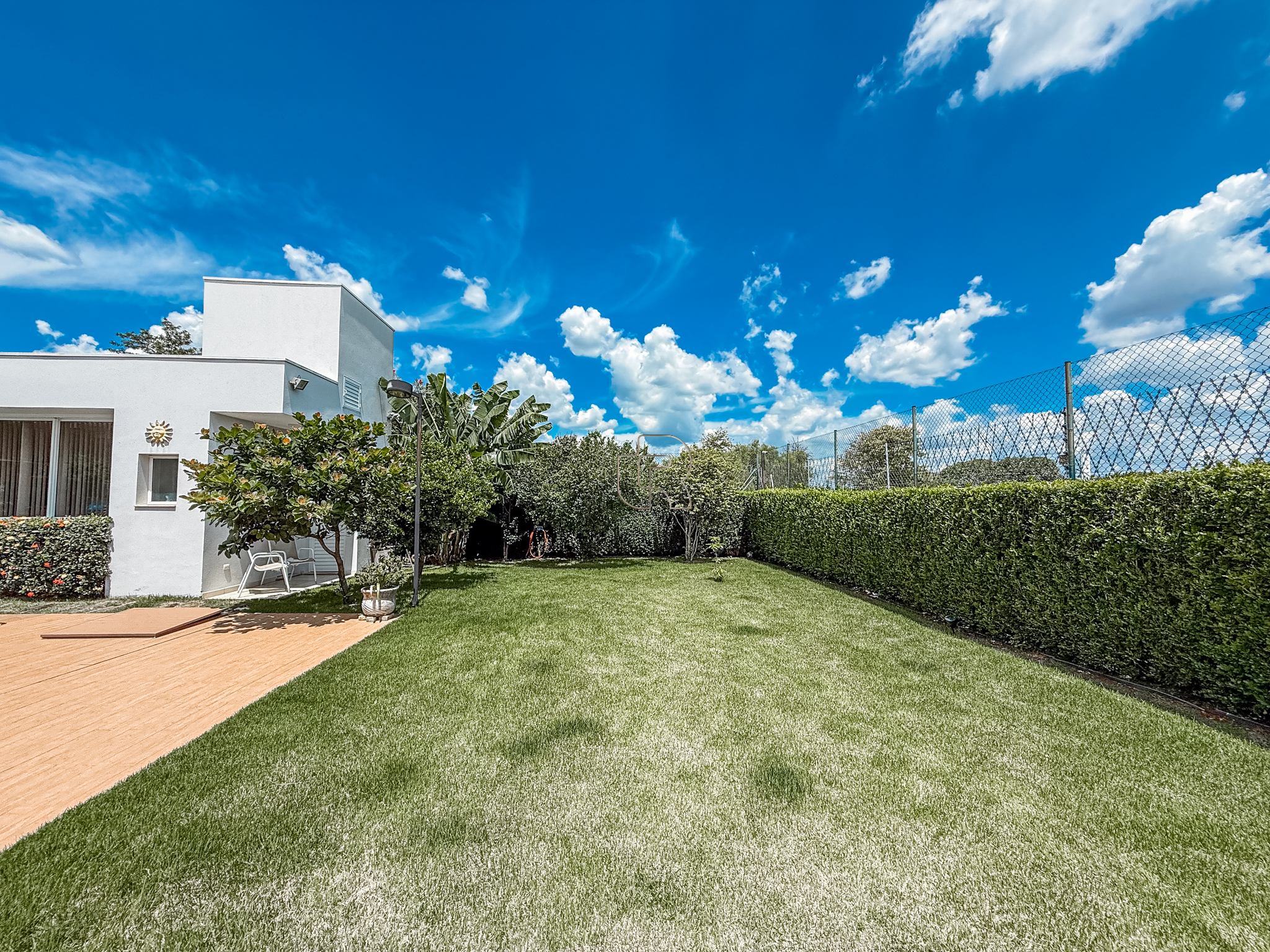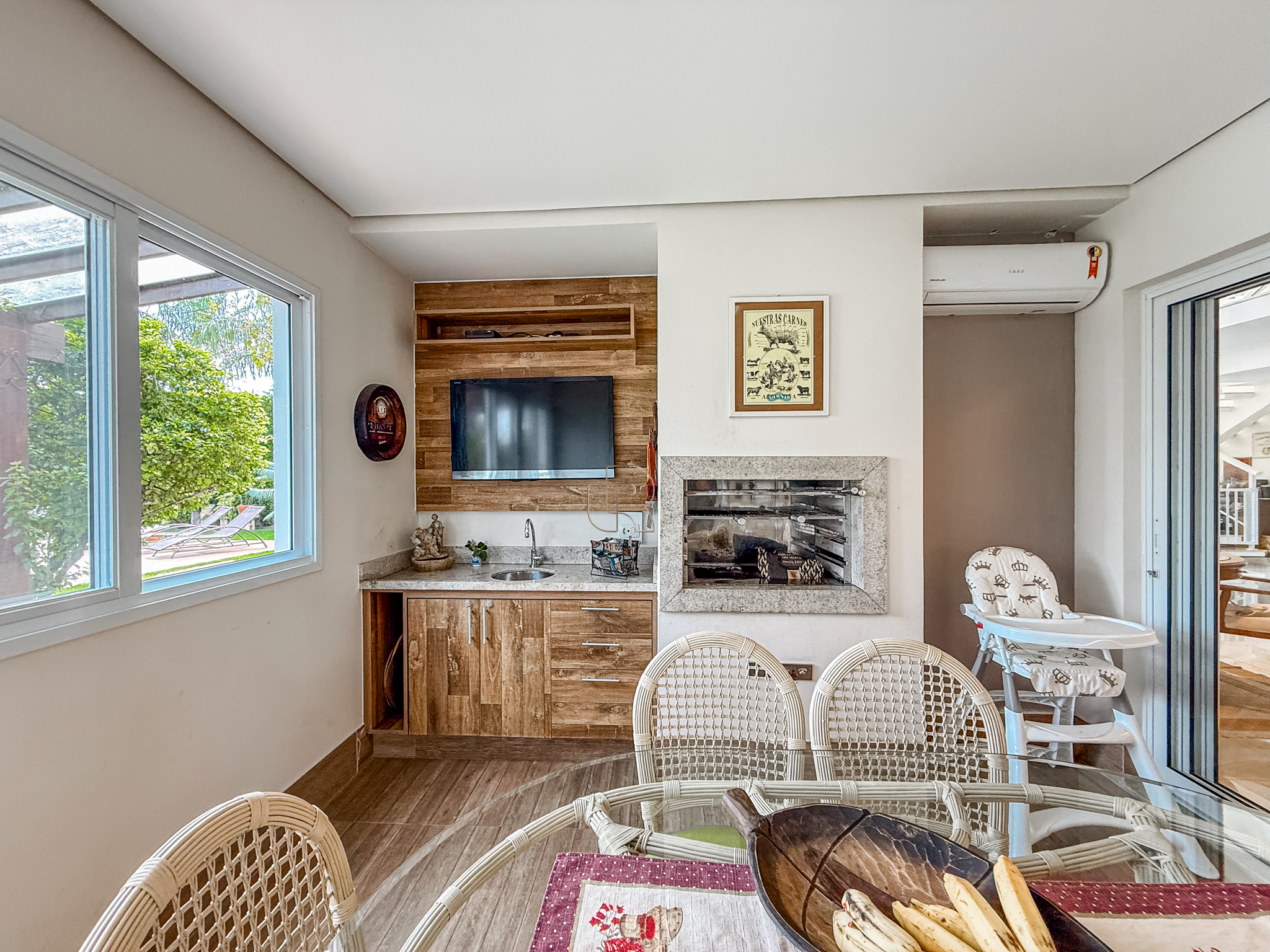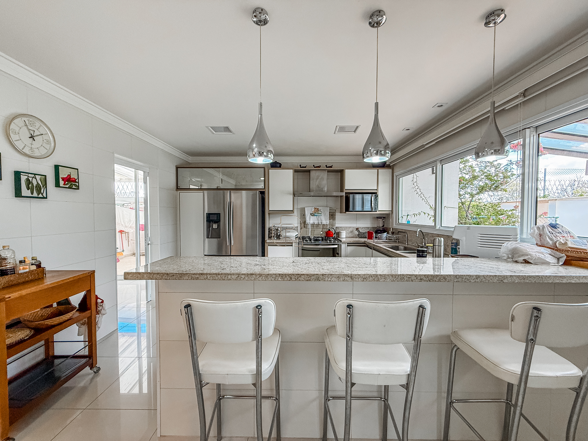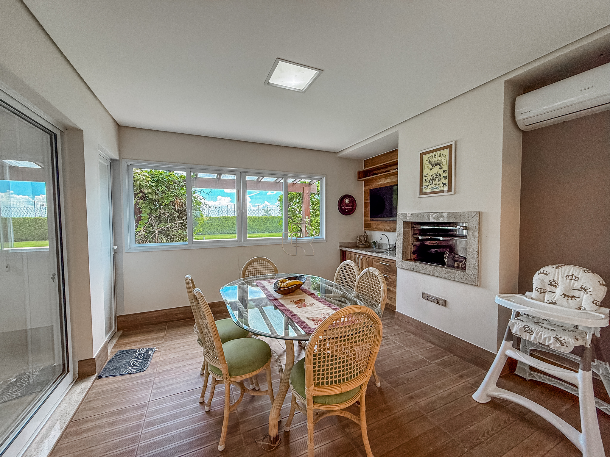 Esta ampla residência combina conforto, elegância e funcionalidade. No térreo, conta com sala de estar com pé-direito de 6 metros, sala de jantar, escritório, lavabo, área gourmet integrada à cozinha com copa, além de área de serviço completa, despensa, quarto e banheiro de empregada. No pavimento superior, dispõe de sala íntima com home, três suítes, sendo a master com closet e hidromassagem, além de quarto de hóspedes, ambiente multiuso e banheiro. A área externa oferece quintal com pergolado, ateliê ou oficina, piscina e paisagismo. O imóvel possui sistema de água com grande capacidade, placas solares e garagem para três carros cobertos e mais seis descobertos, em um dos condomínios mais valorizados da cidade.