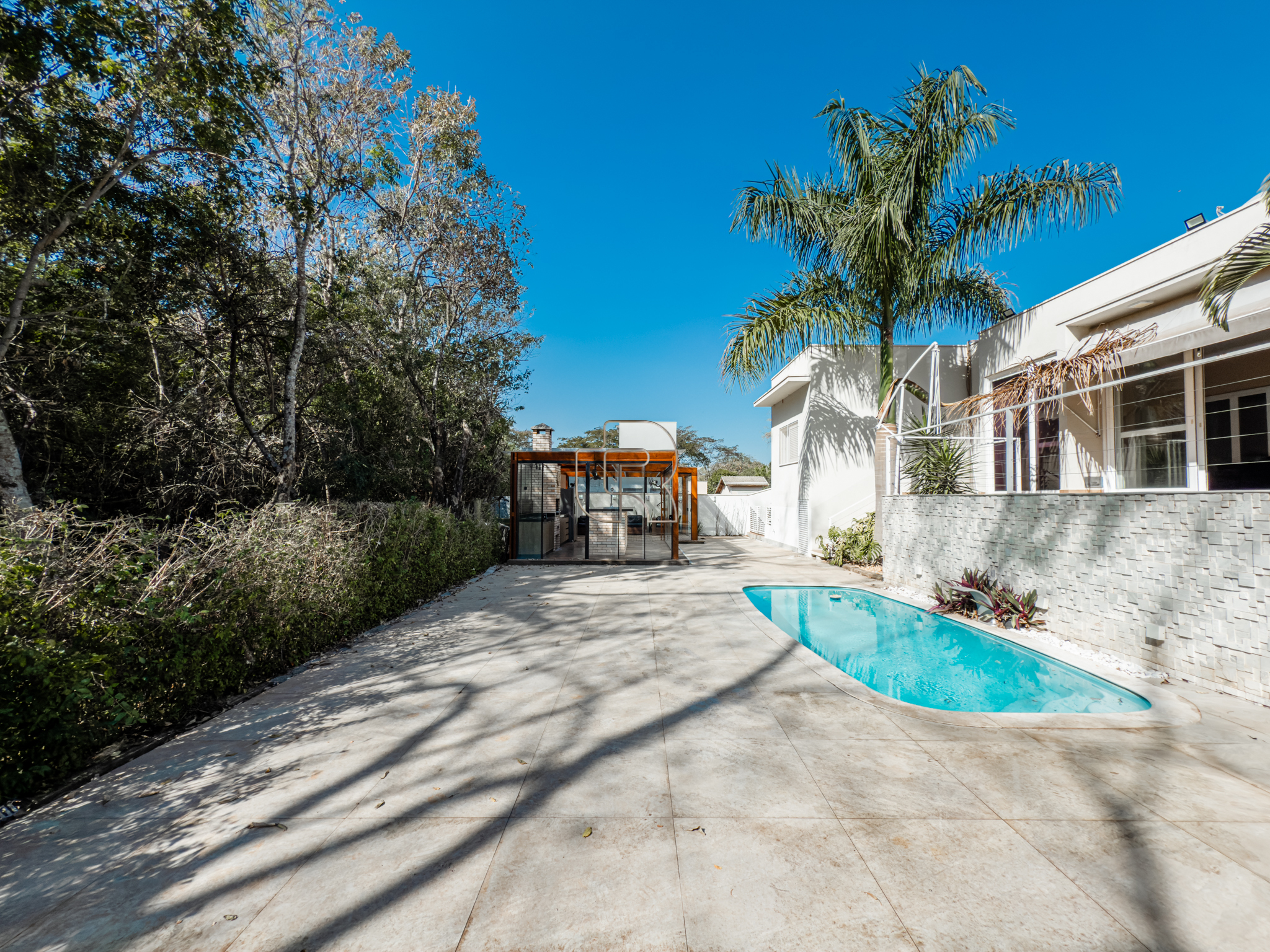 As salas de estar e espaço gourmet são integradas, proporcionando amplitude e conforto. Na área externa, destaca-se o espaço gourmet completo, com churrasqueira e chopeira, voltado para uma agradável área verde. A propriedade conta ainda com piscina aquecida, ideal para momentos de lazer em qualquer época do ano.