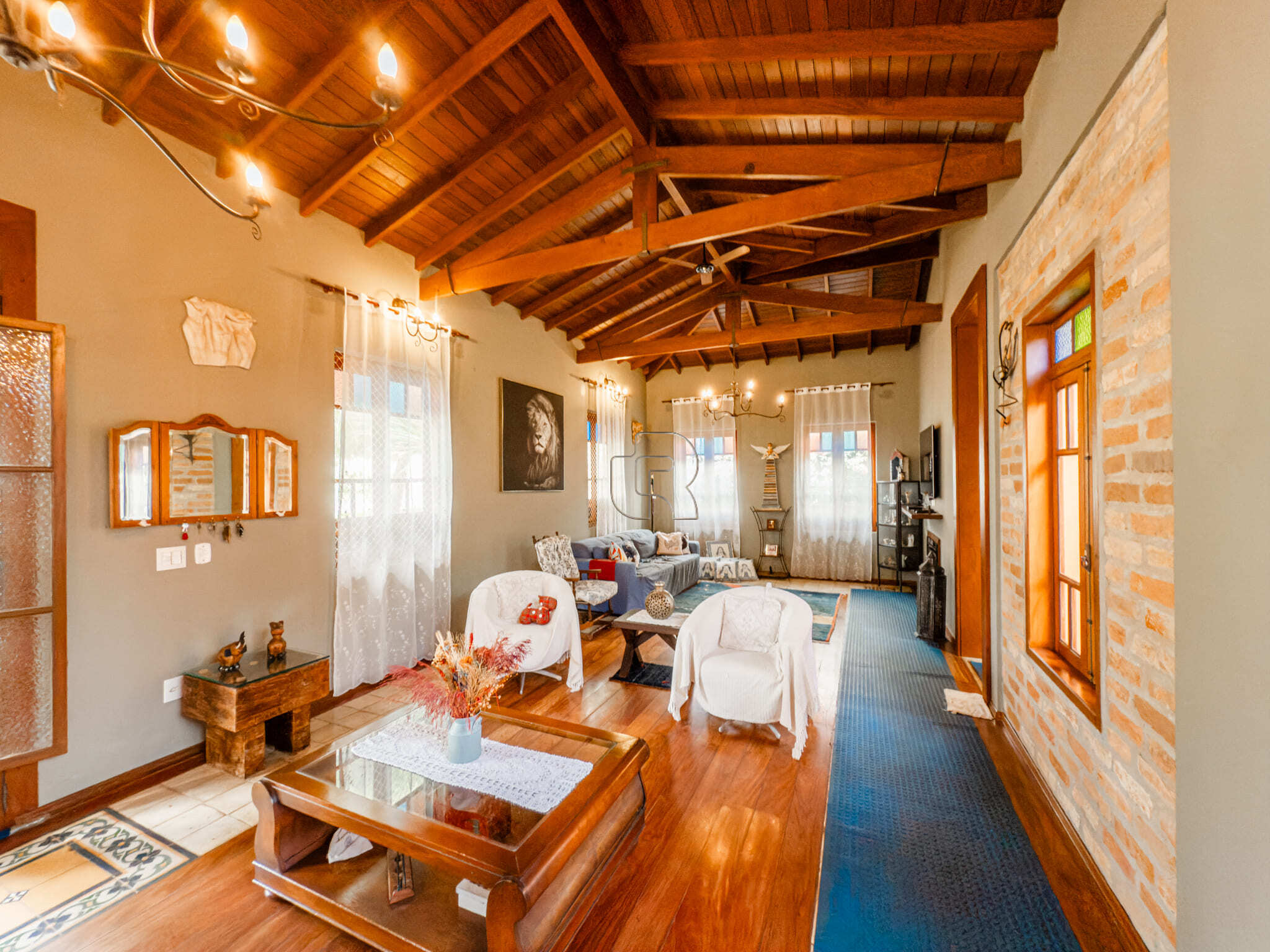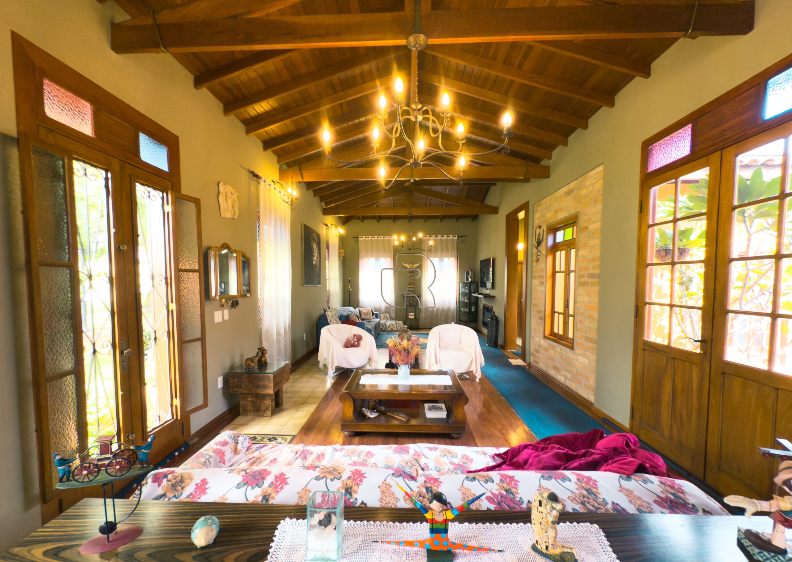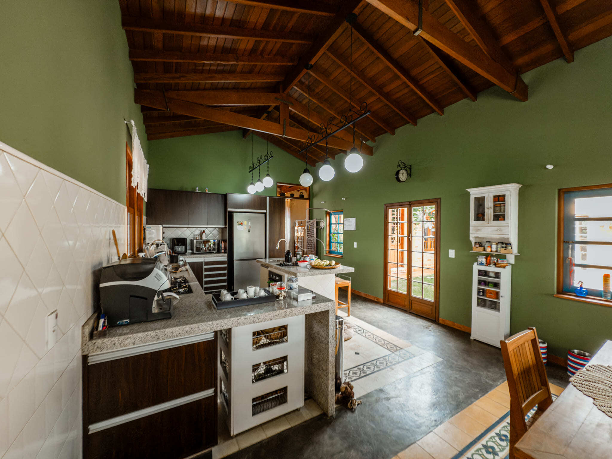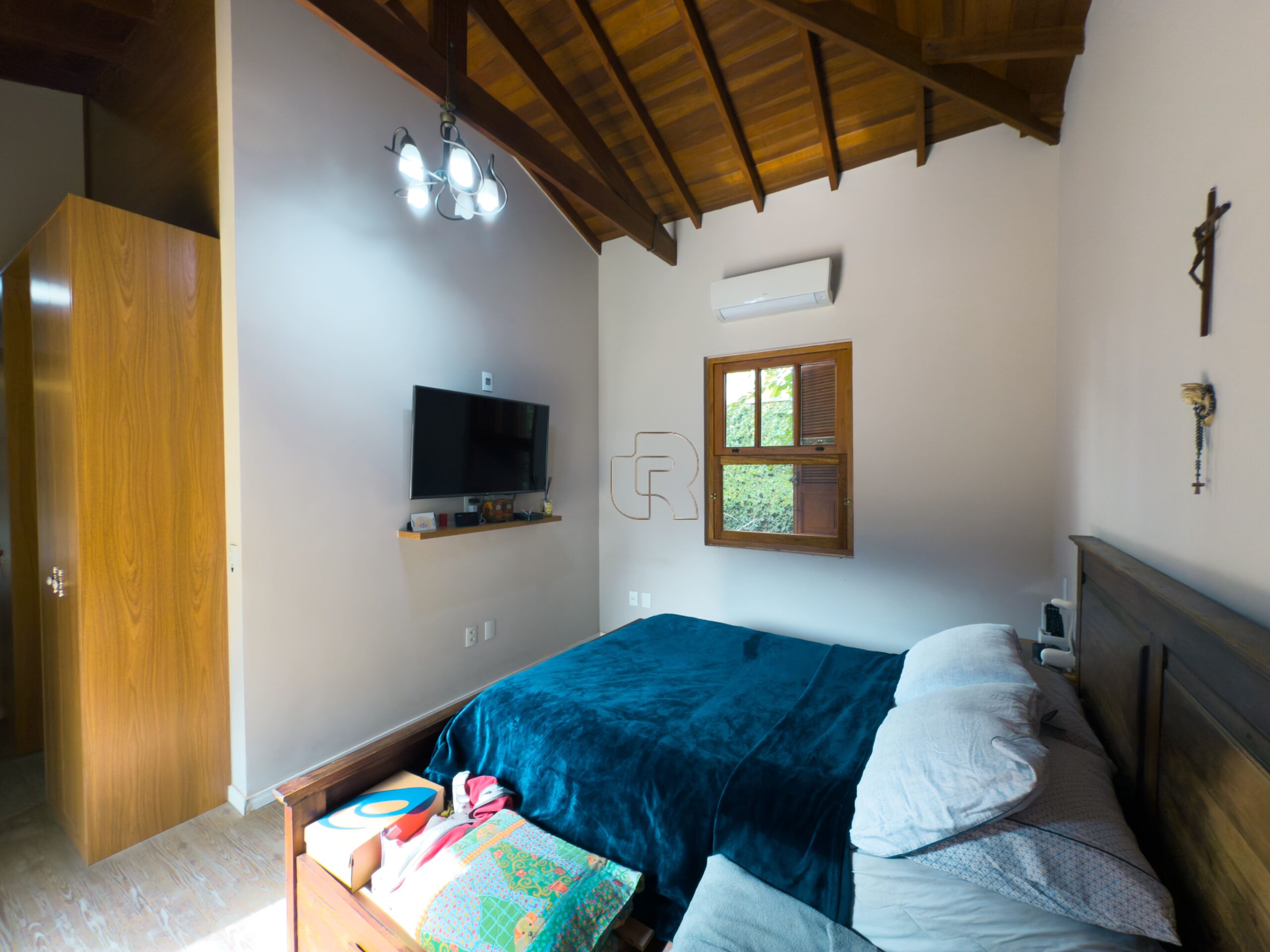 Casa de campo com todo conforto, luxo, integração, sofisticação em meio a muita natureza! Casa toda com pé direito alto com acabamento em madeira e pisos cerâmicos formando tapetes se misturam com o aconchego do assoalho. A casa tem 3 quartos, sendo 2 suites e a master com closet, sala ampla dividida em três ambiente, living, jantar e sala de TV com lareira elétrica, escritório com prateleiras de granito, cozinha totalmente equipada com dois fornos, à gás e elétrico, dois cooktops, com ilha central integrada à uma sala de almoço, despensa, depósito, quarto pet banho com armários embutidos, varanda gourmet com churrasqueira elétrica e forno de pizza, jardim interno, garagem coberta para 2 carros e 6 descobertas já com instalação elétrica para carregamento de carro elétrico. Piscina 4×8 com prainha com instalação para aquecimento. A casa está com armários planejados e ar condicionado em todos os cômodos, filtro de entrada de água, iluminação de solo, toda iluminação externa com acendimento automático, água quente em toda casa, sistema fotovoltáico. Jardim com diversos tipos de plantas e vários tipos de árvores frutíferas.