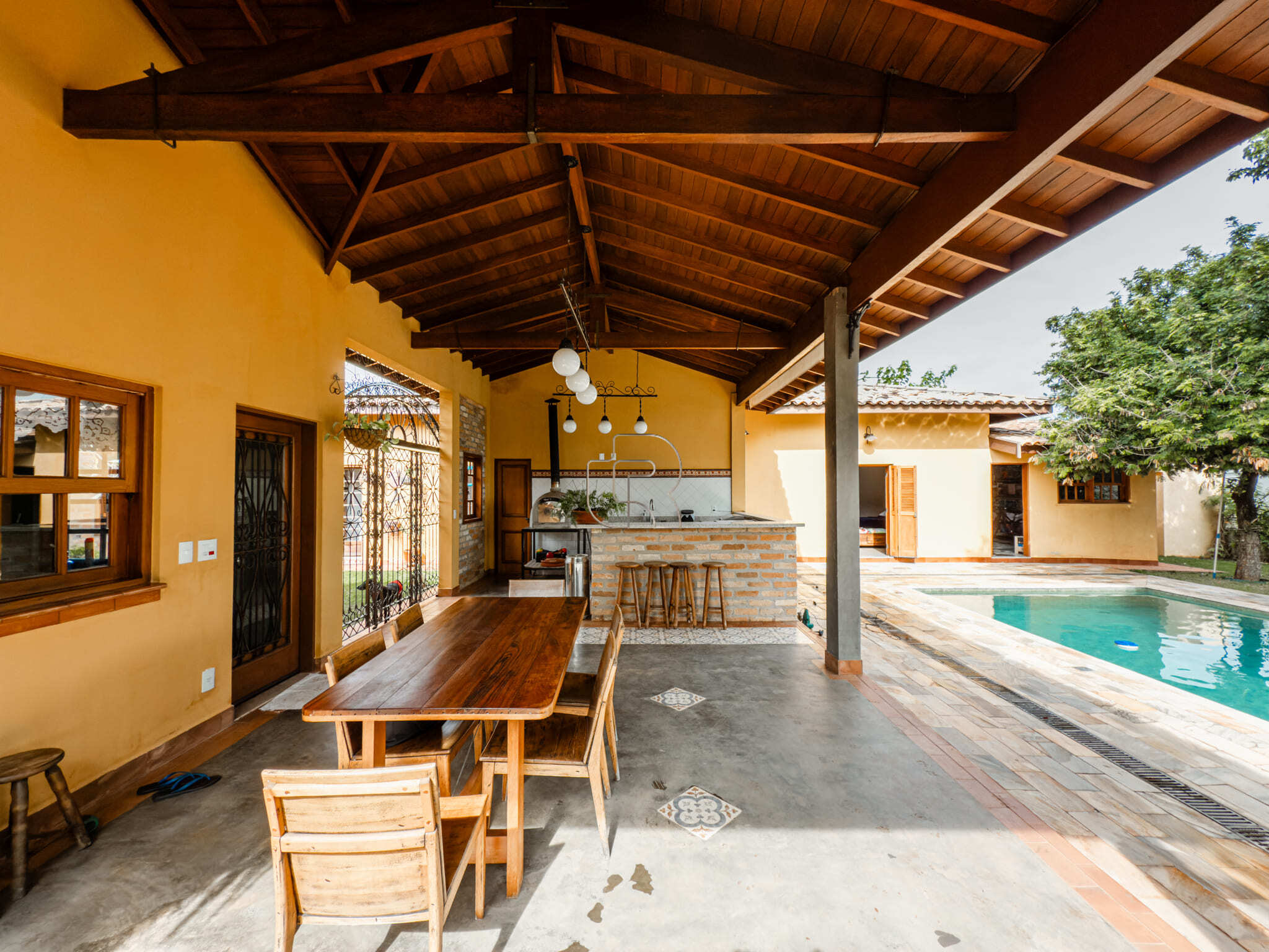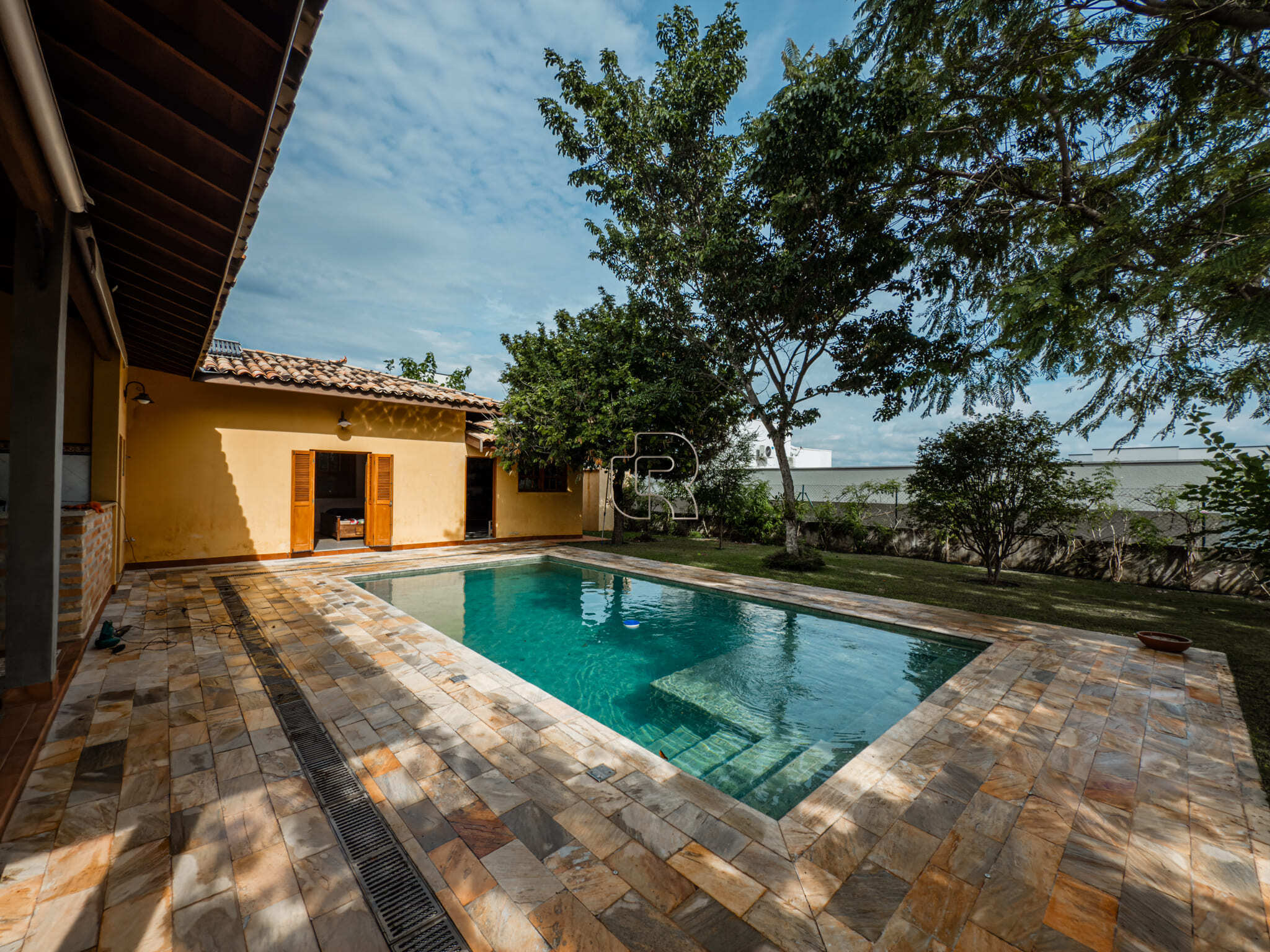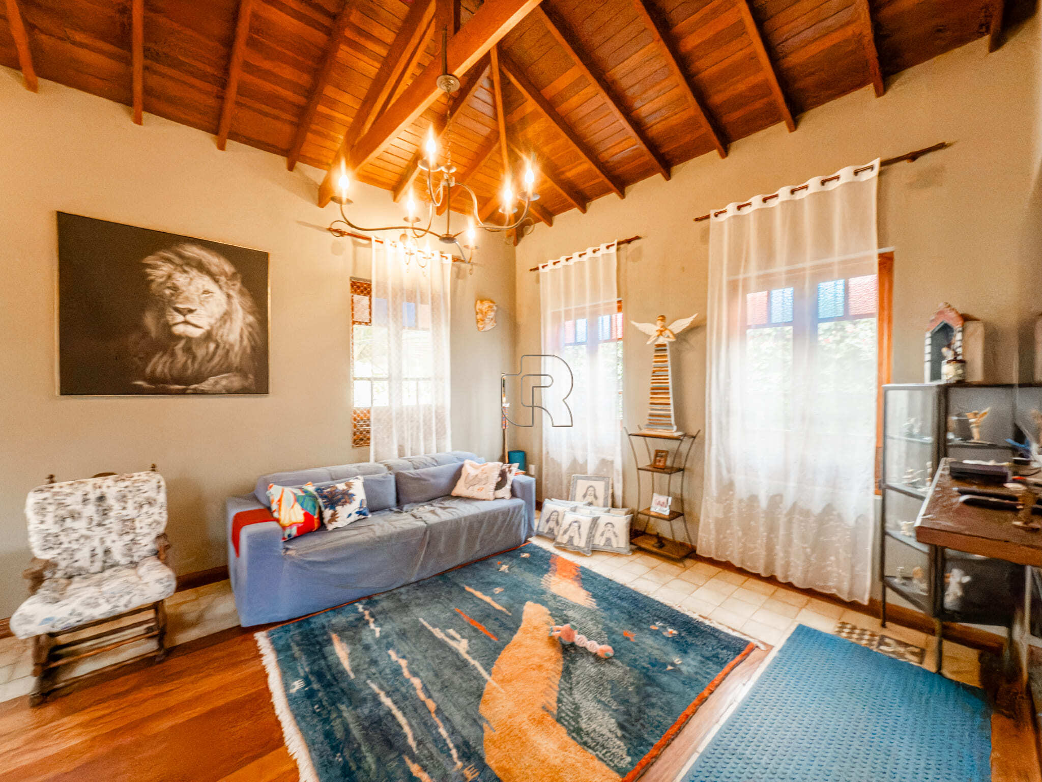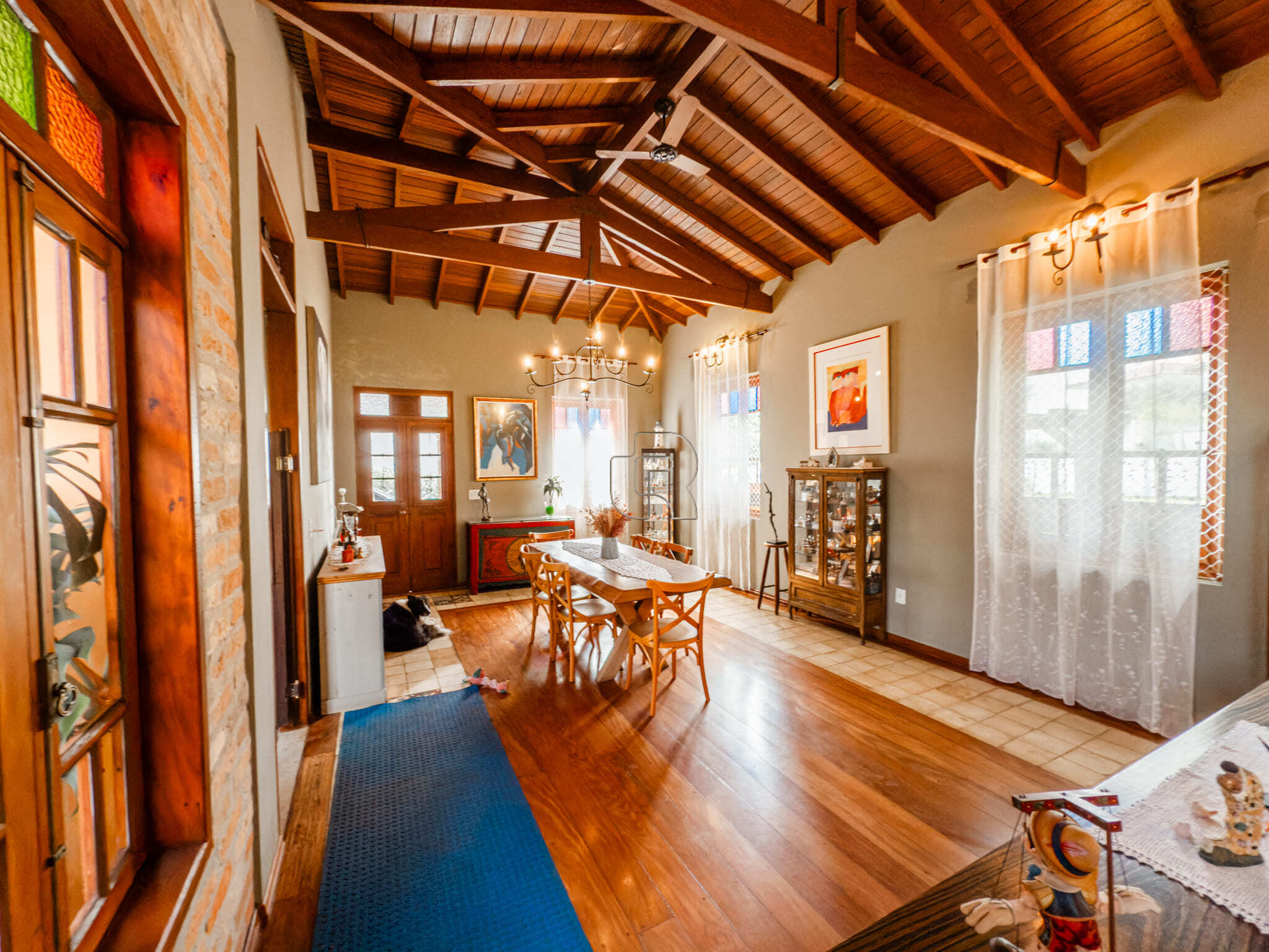 Casa de campo com todo conforto, luxo, integração, sofisticação em meio a muita natureza! Casa toda com pé direito alto com acabamento em madeira e pisos cerâmicos formando tapetes se misturam com o aconchego do assoalho. A casa tem 3 quartos, sendo 2 suites e a master com closet, sala ampla dividida em três ambiente, living, jantar e sala de TV com lareira elétrica, escritório com prateleiras de granito, cozinha totalmente equipada com dois fornos, à gás e elétrico, dois cooktops, com ilha central integrada à uma sala de almoço, despensa, depósito, quarto pet banho com armários embutidos, varanda gourmet com churrasqueira elétrica e forno de pizza, jardim interno, garagem coberta para 2 carros e 6 descobertas já com instalação elétrica para carregamento de carro elétrico. Piscina 4×8 com prainha com instalação para aquecimento. A casa está com armários planejados e ar condicionado em todos os cômodos, filtro de entrada de água, iluminação de solo, toda iluminação externa com acendimento automático, água quente em toda casa, sistema fotovoltáico. Jardim com diversos tipos de plantas e vários tipos de árvores frutíferas.