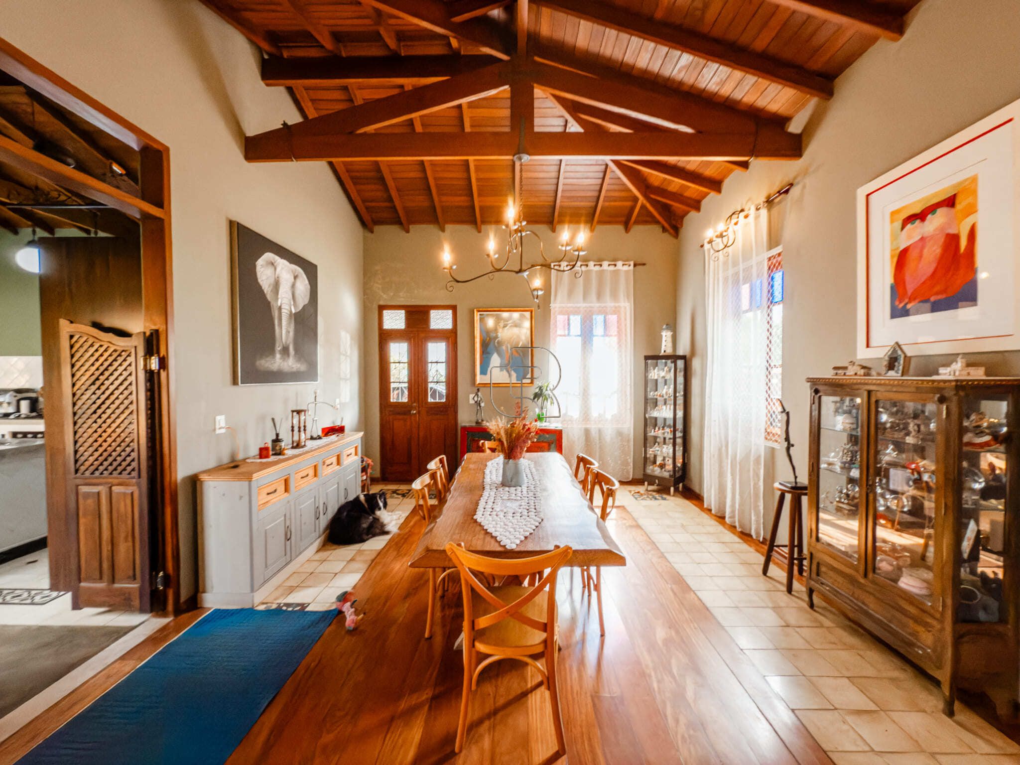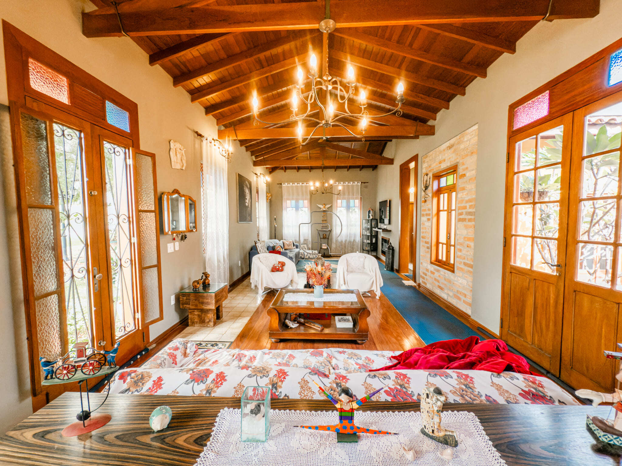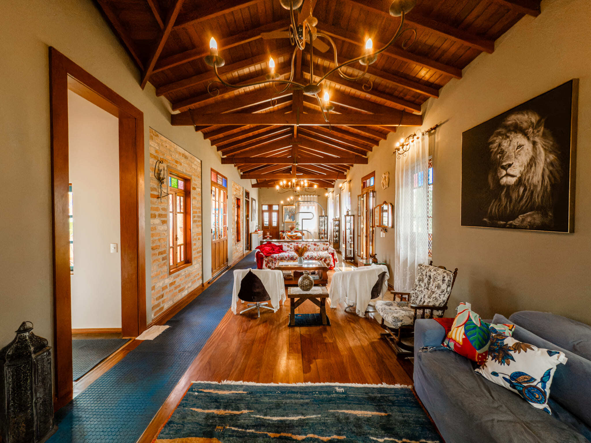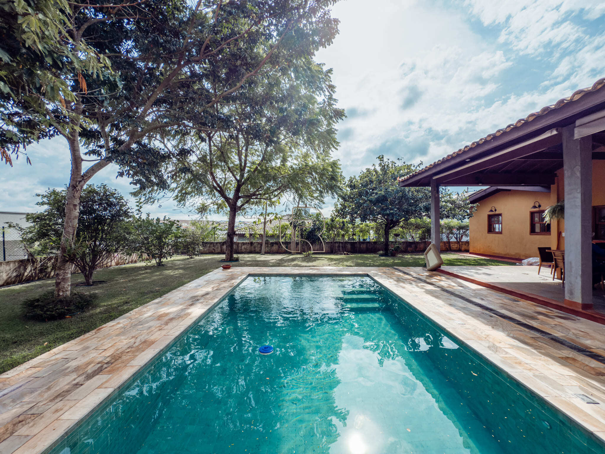Casa de campo com todo conforto, luxo, integração, sofisticação em meio a muita natureza! Casa toda com pé direito alto com acabamento em madeira e pisos cerâmicos formando tapetes se misturam com o aconchego do assoalho. A casa tem 3 quartos, sendo 2 suites e a master com closet, sala ampla dividida em três ambiente, living, jantar e sala de TV com lareira elétrica, escritório com prateleiras de granito, cozinha totalmente equipada com dois fornos, à gás e elétrico, dois cooktops, com ilha central integrada à uma sala de almoço, despensa, depósito, quarto pet banho com armários embutidos, varanda gourmet com churrasqueira elétrica e forno de pizza, jardim interno, garagem coberta para 2 carros e 6 descobertas já com instalação elétrica para carregamento de carro elétrico. Piscina 4×8 com prainha com instalação para aquecimento. A casa está com armários planejados e ar condicionado em todos os cômodos, filtro de entrada de água, iluminação de solo, toda iluminação externa com acendimento automático, água quente em toda casa, sistema fotovoltáico. Jardim com diversos tipos de plantas e vários tipos de árvores frutíferas.