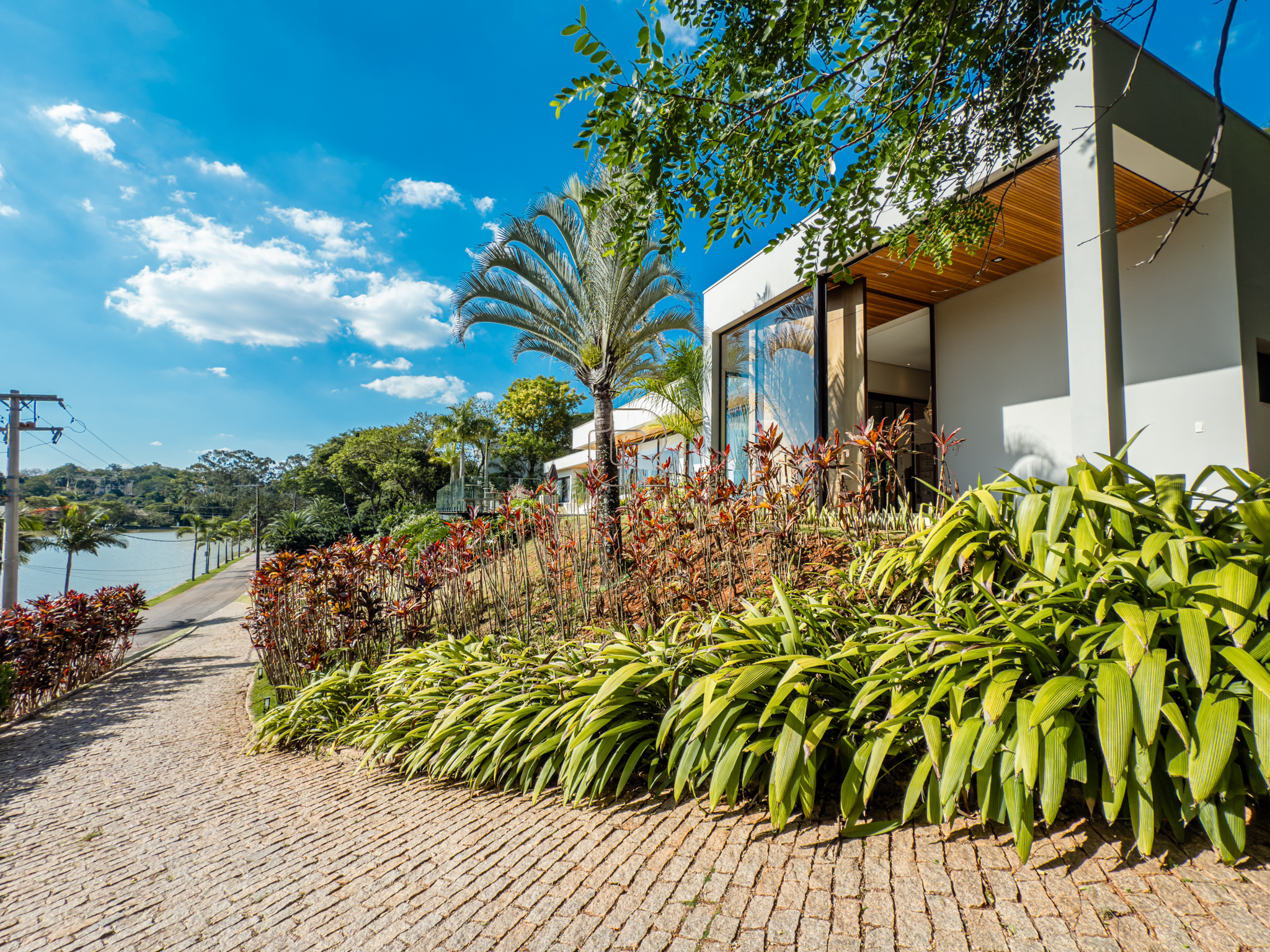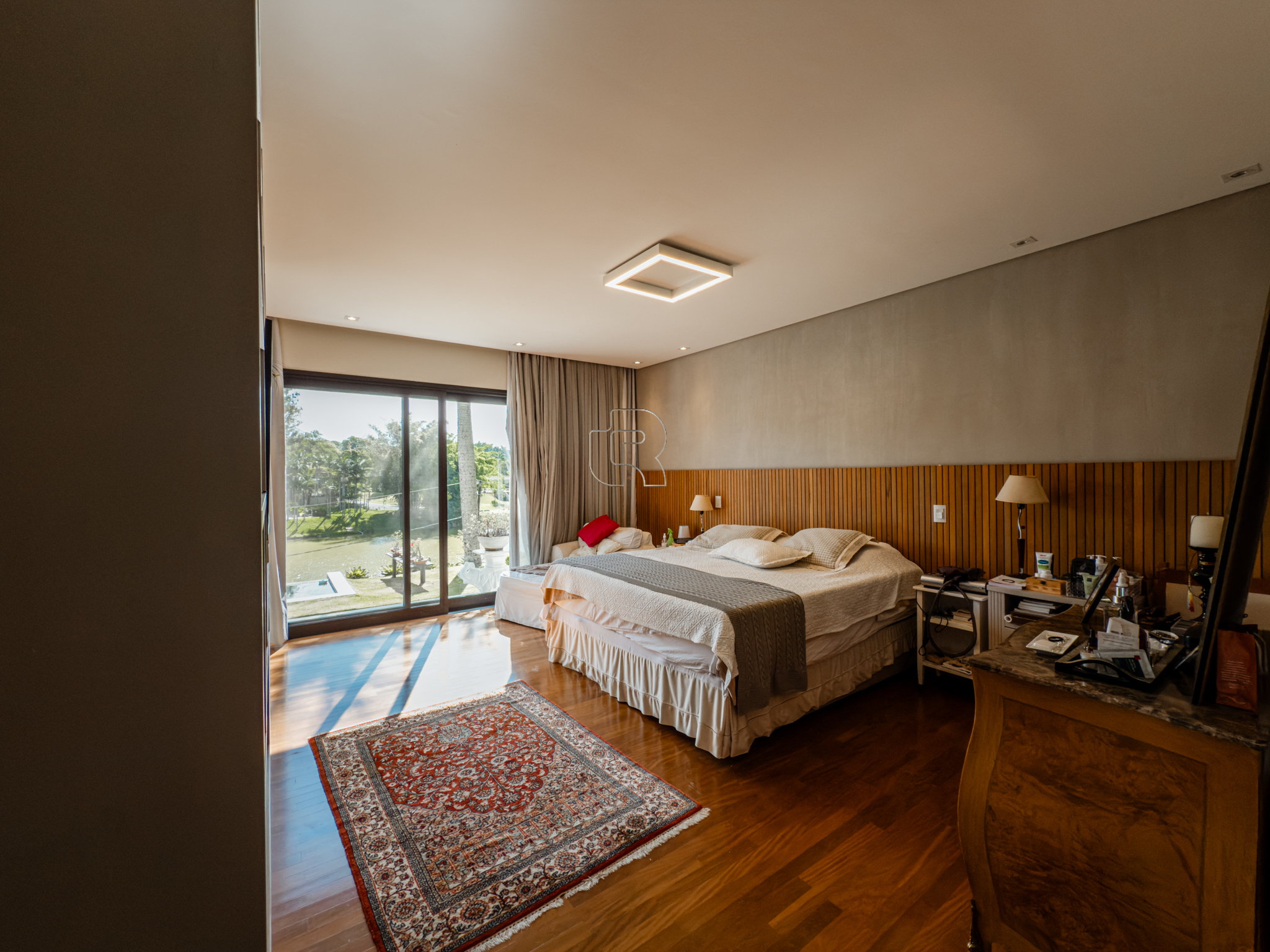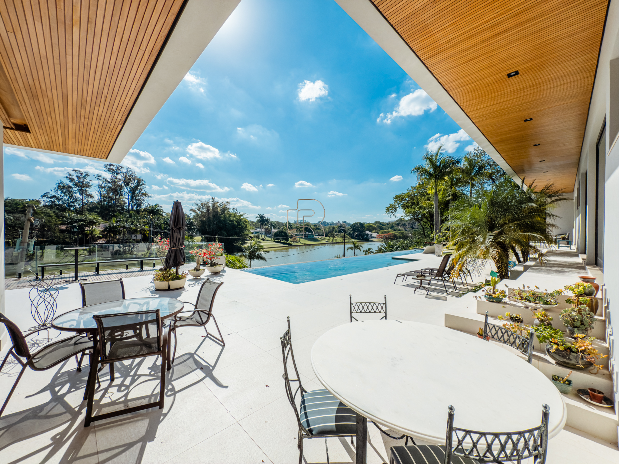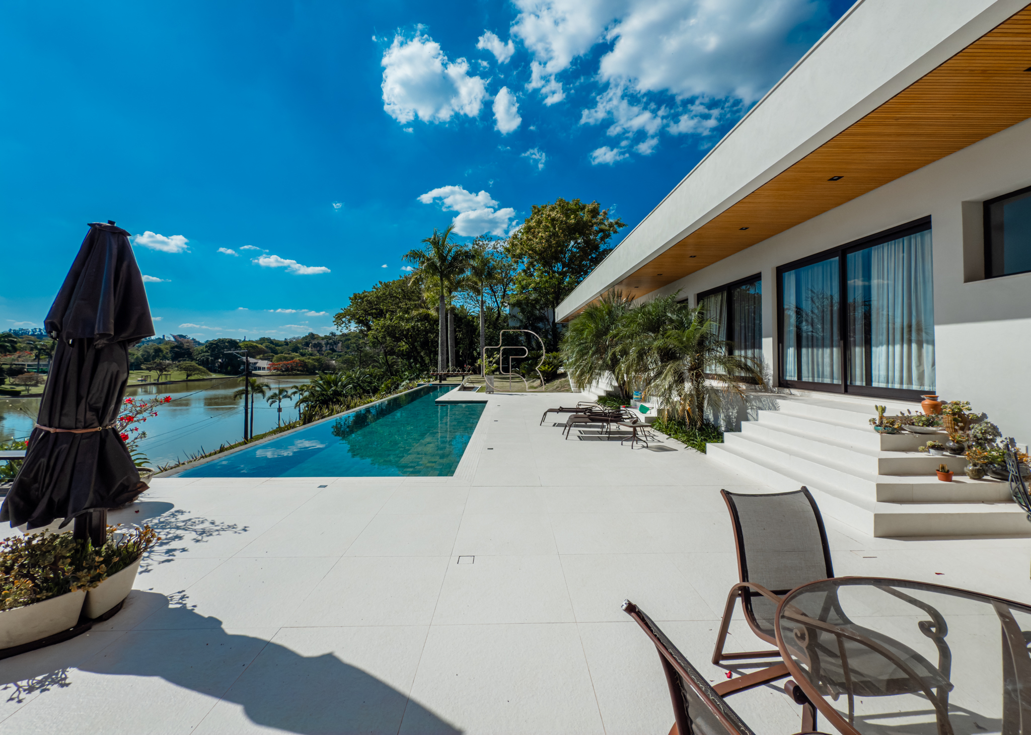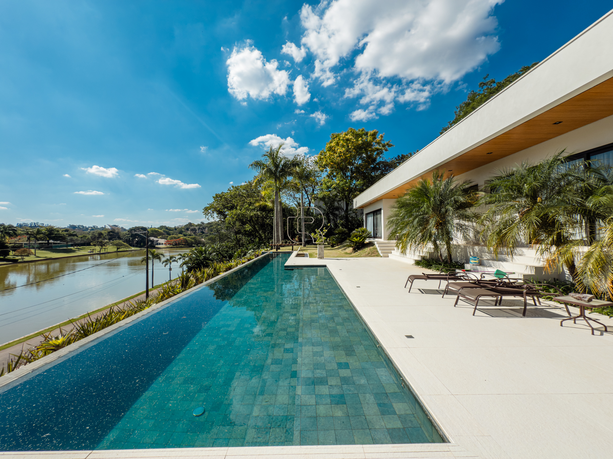 A residência conta com cinco suítes confortáveis, duas salas espaçosas que favorecem a convivência e o bem-estar, e uma área gourmet completa, perfeita para receber com elegância. Na área externa, a piscina aquecida com raia se integra a um amplo deck com vista para o lago, criando um espaço exclusivo para lazer e relaxamento. A garagem coberta possui capacidade para quatro veículos, unindo praticidade e segurança.