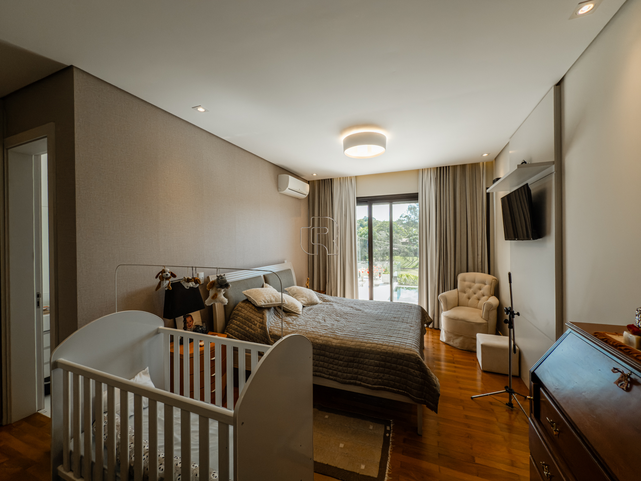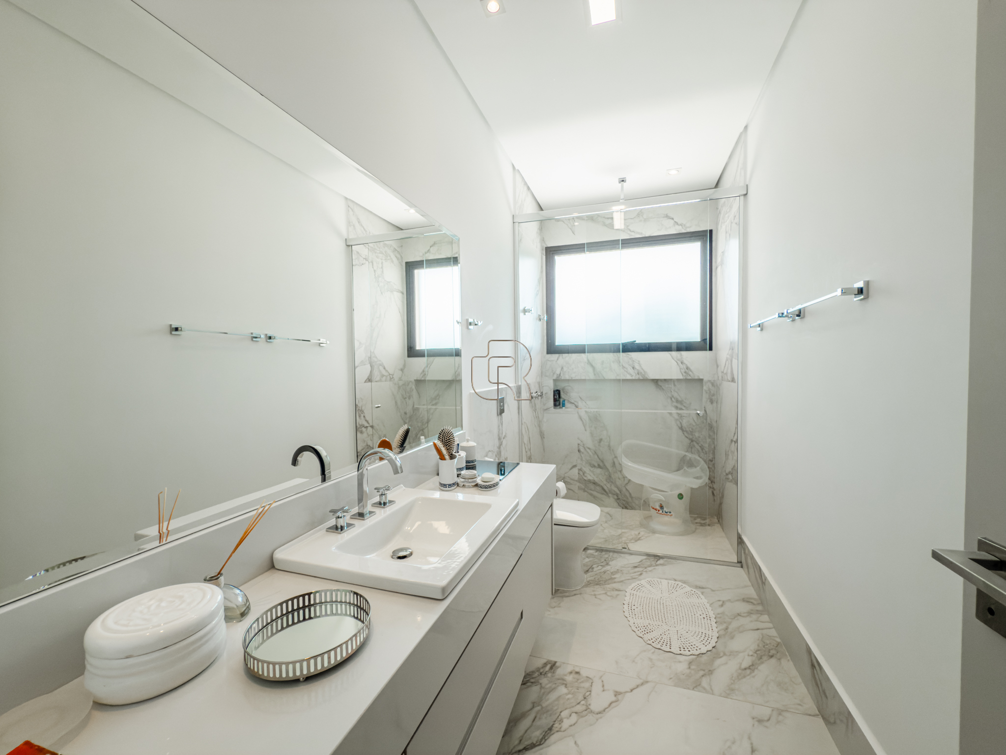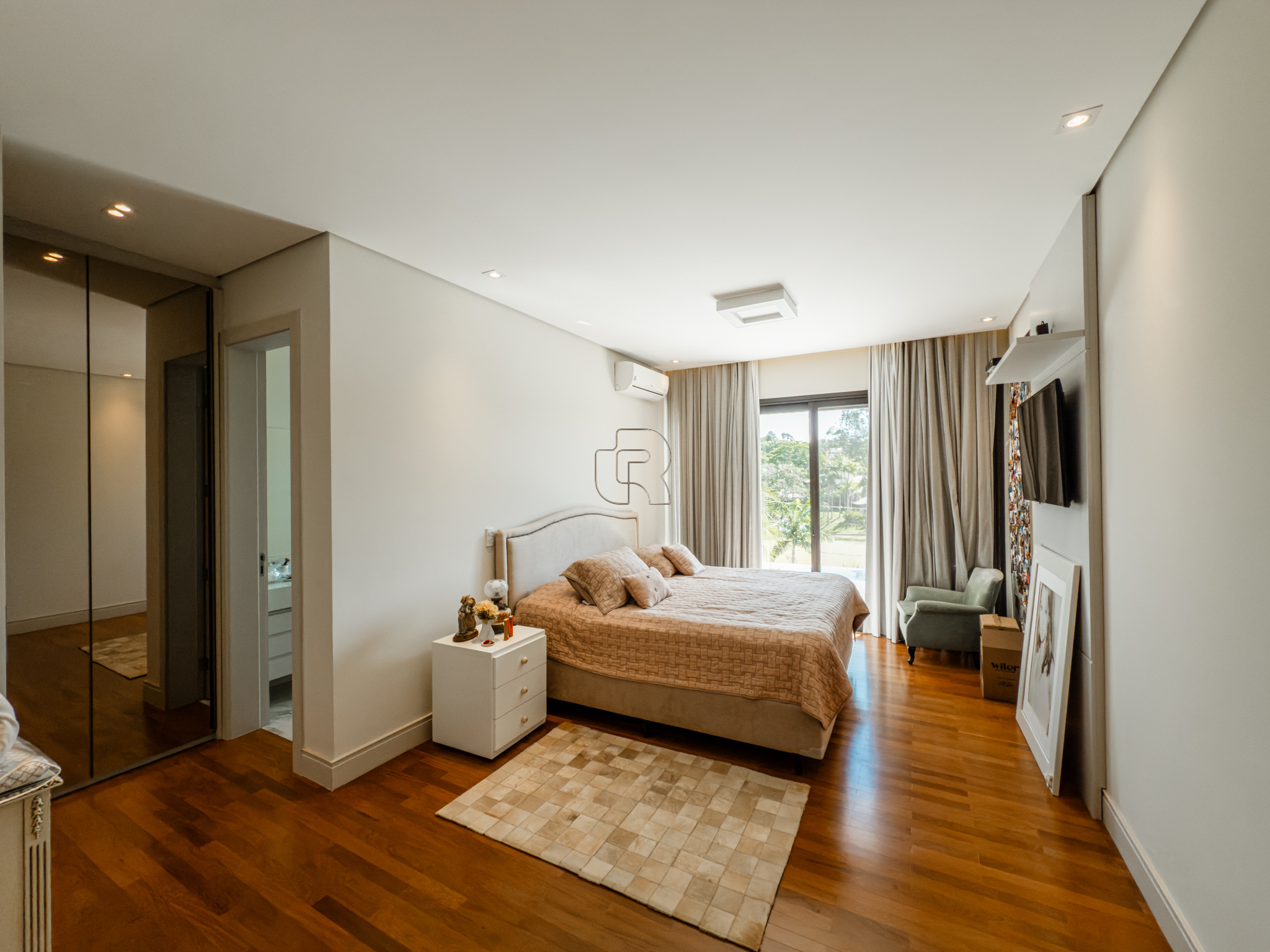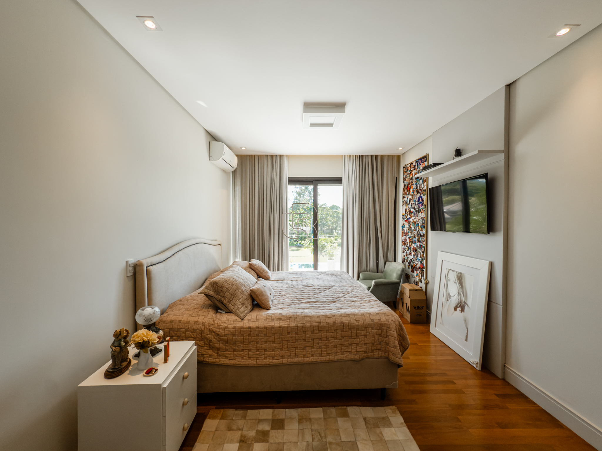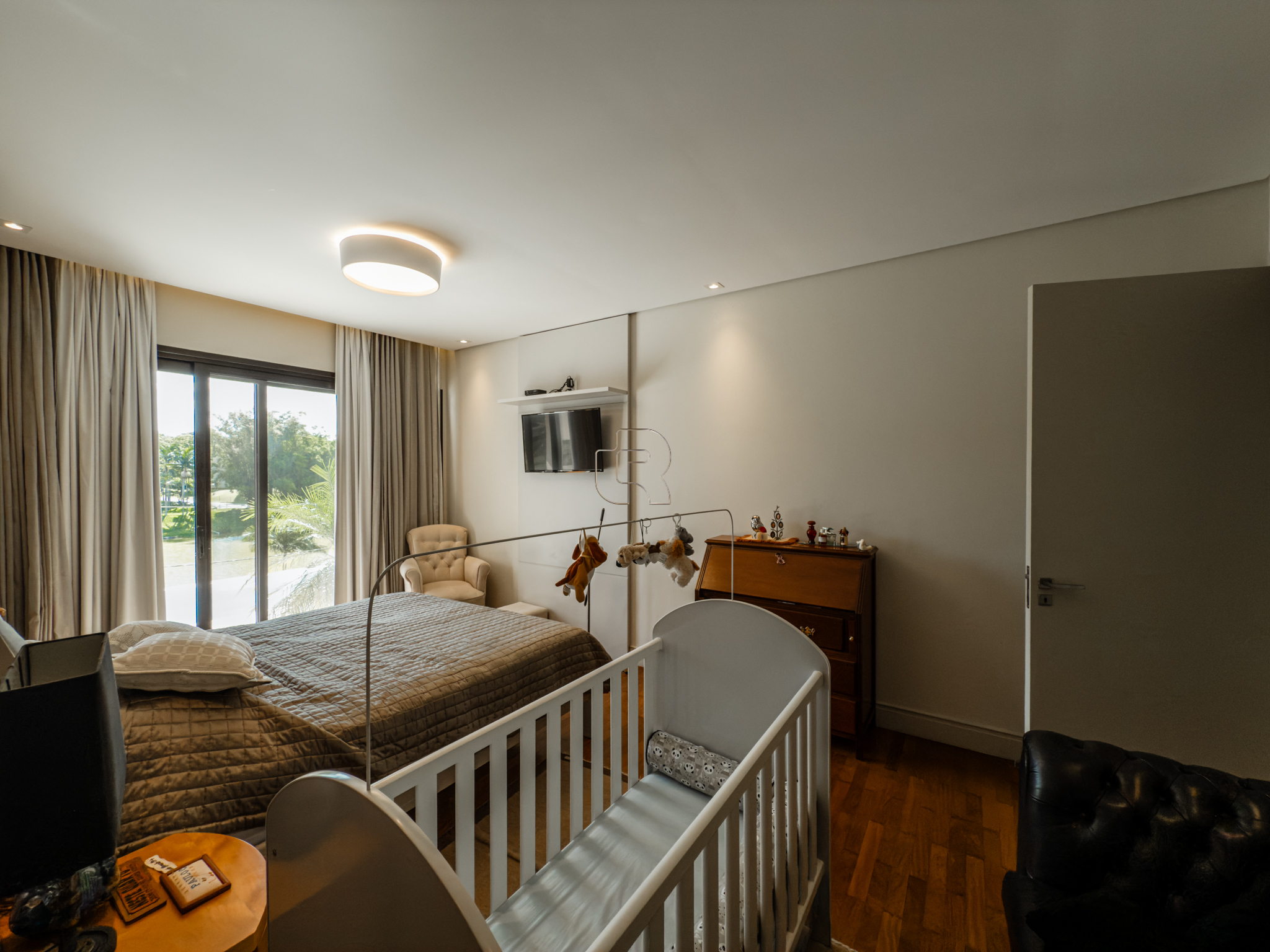 A residência conta com cinco suítes confortáveis, duas salas espaçosas que favorecem a convivência e o bem-estar, e uma área gourmet completa, perfeita para receber com elegância. Na área externa, a piscina aquecida com raia se integra a um amplo deck com vista para o lago, criando um espaço exclusivo para lazer e relaxamento. A garagem coberta possui capacidade para quatro veículos, unindo praticidade e segurança.