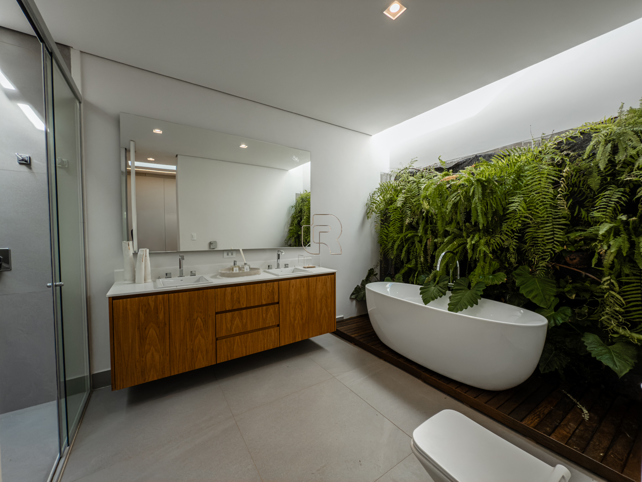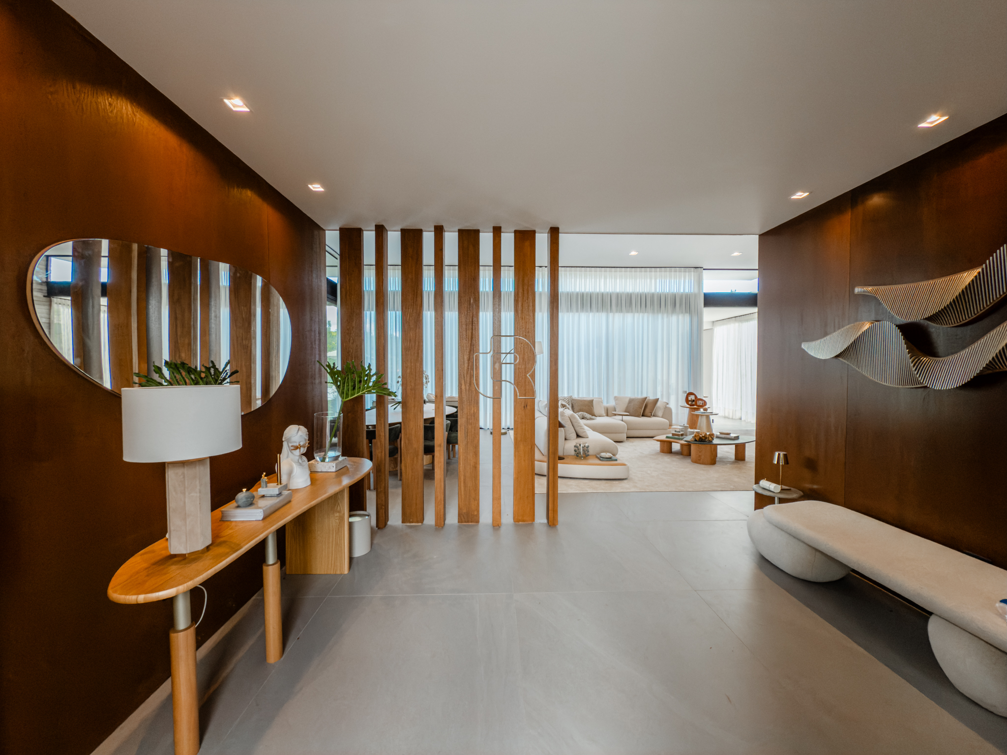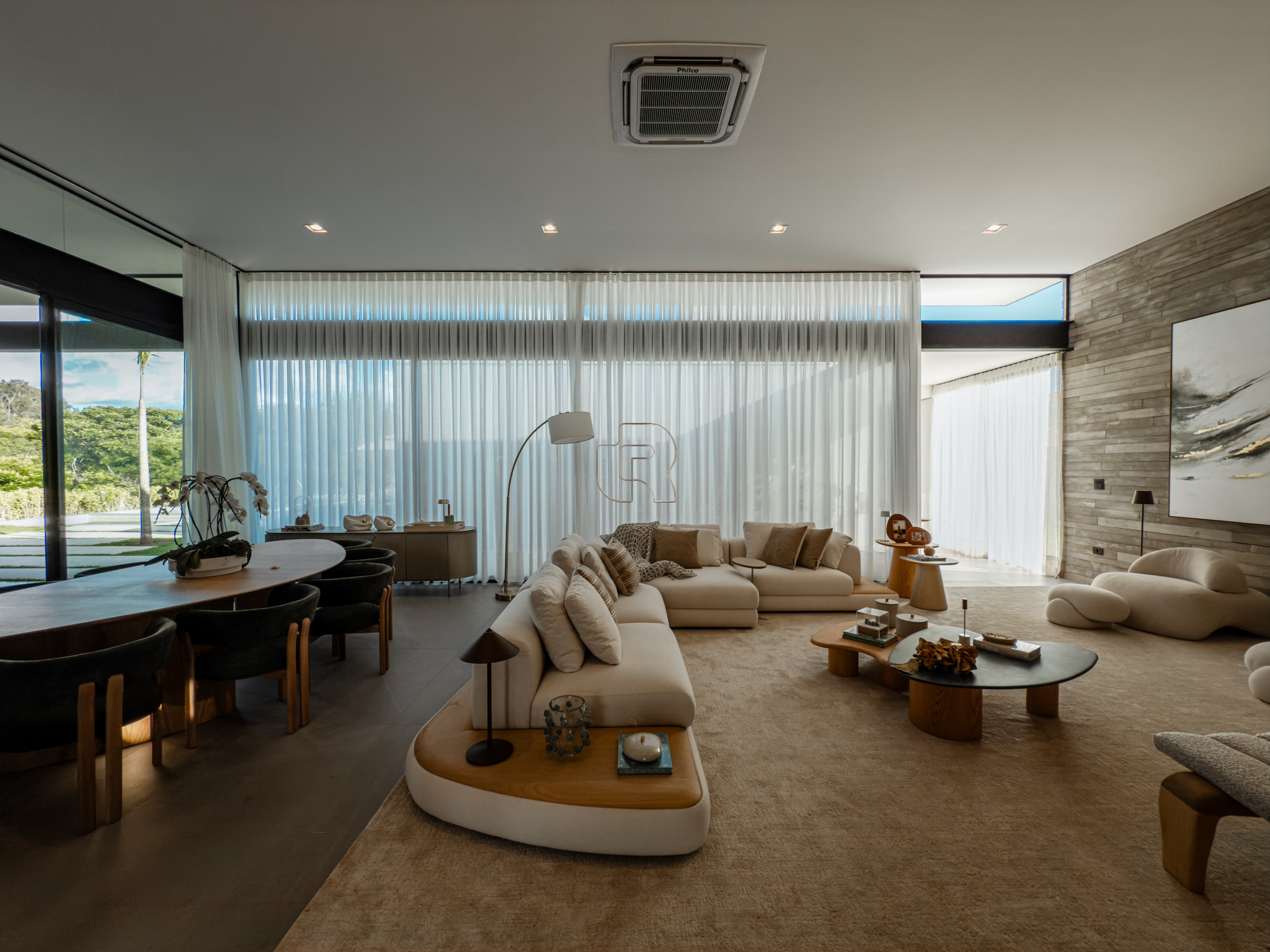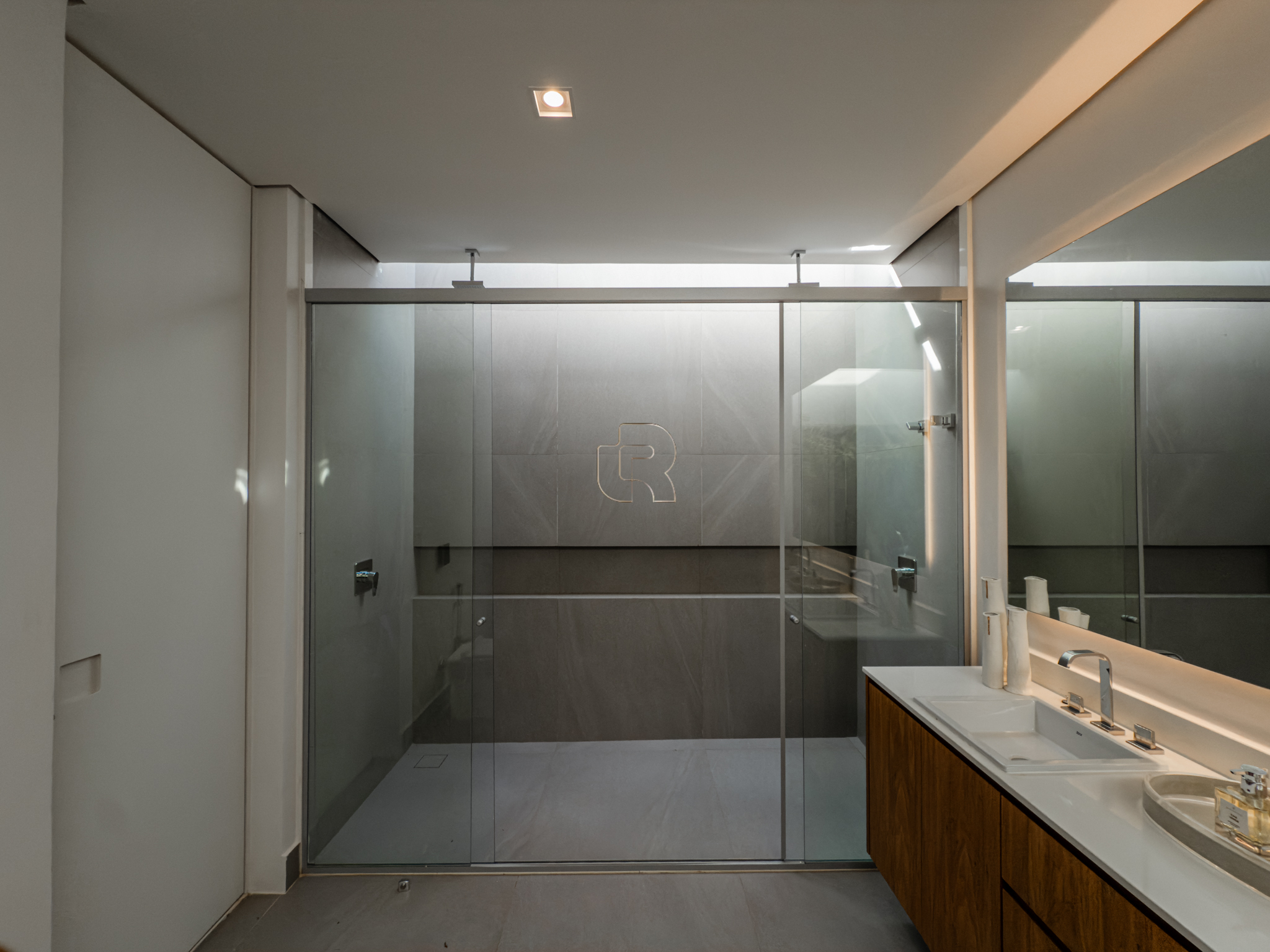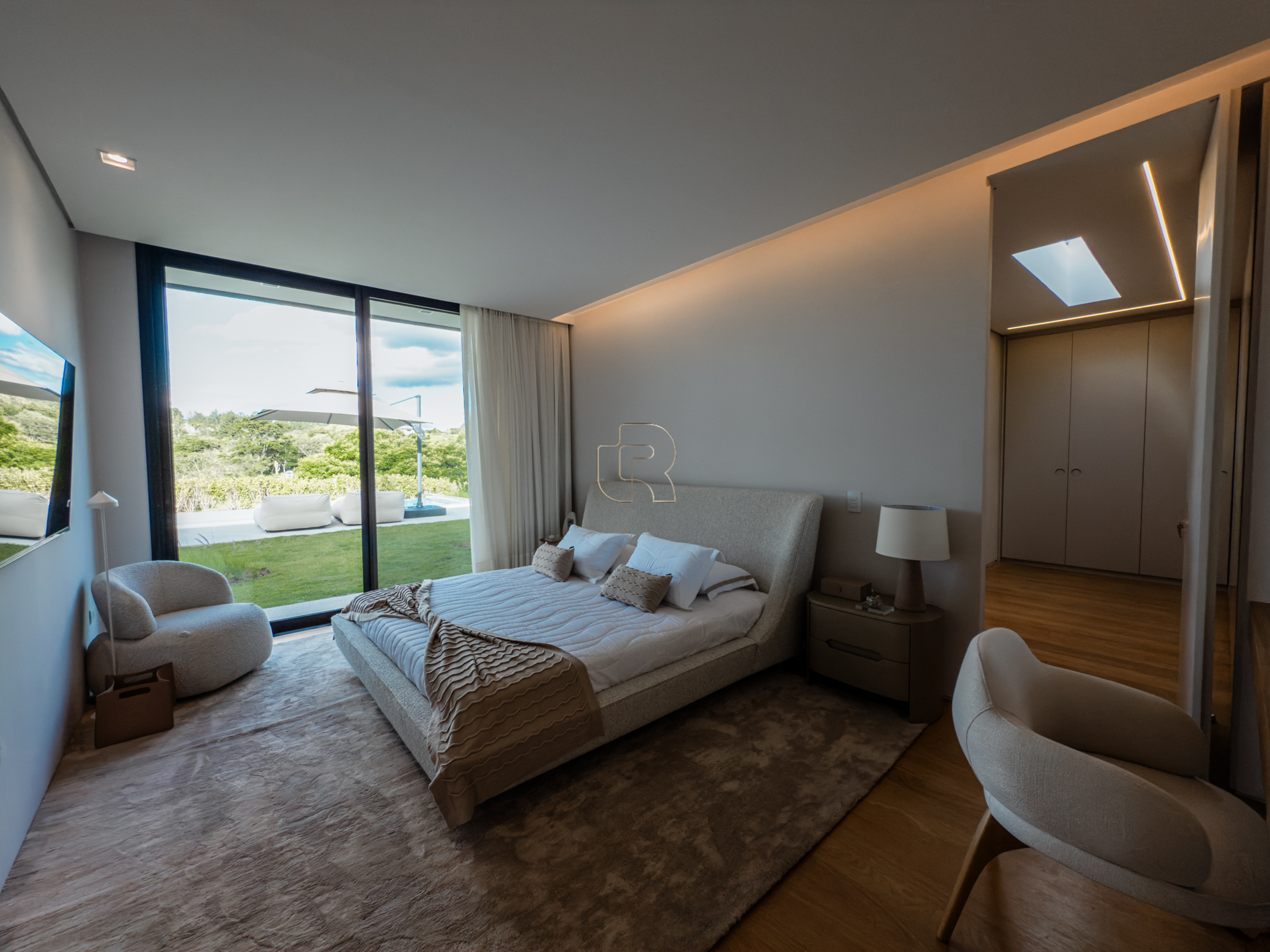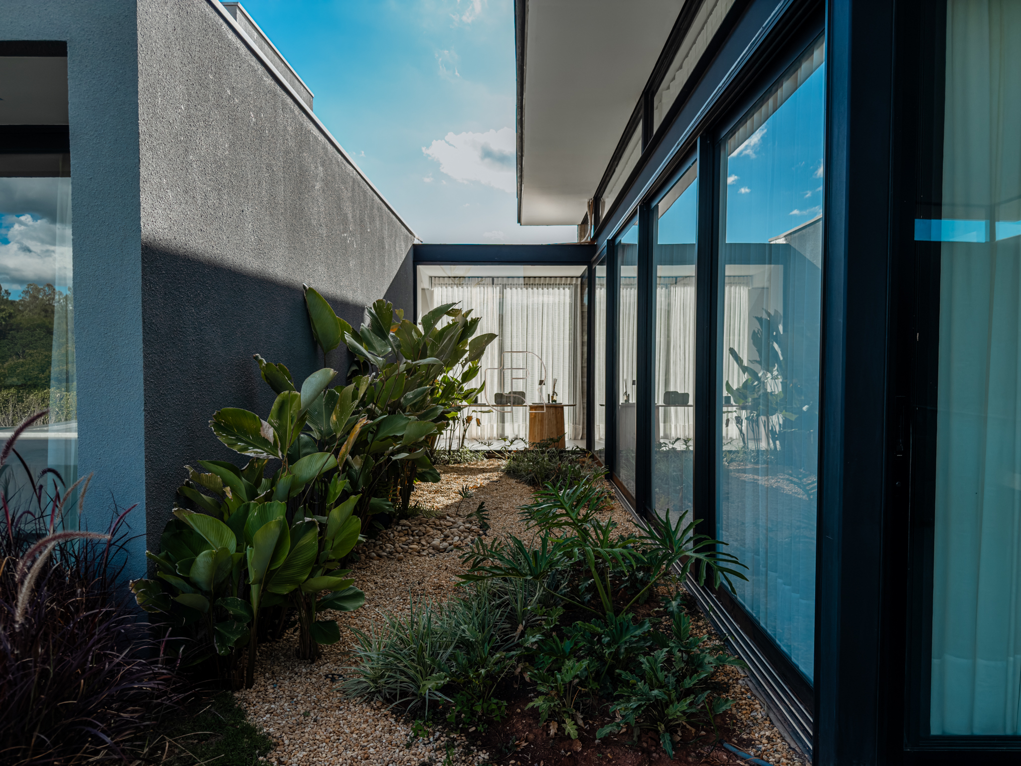 A área gourmet é equipada com cervejeira, cooktop, forno de pizza e churrasqueira, ideal para receber com conforto e elegância. Na área externa, a casa dispõe de piscina com borda infinita e spa com hidromassagem, proporcionando lazer e bem-estar. Os acabamentos refletem alto padrão, com piso em madeira nas suítes e porcelanato Portobello nos demais ambientes, além de portas painel do piso ao teto, que garantem amplitude, iluminação natural e um design marcante.