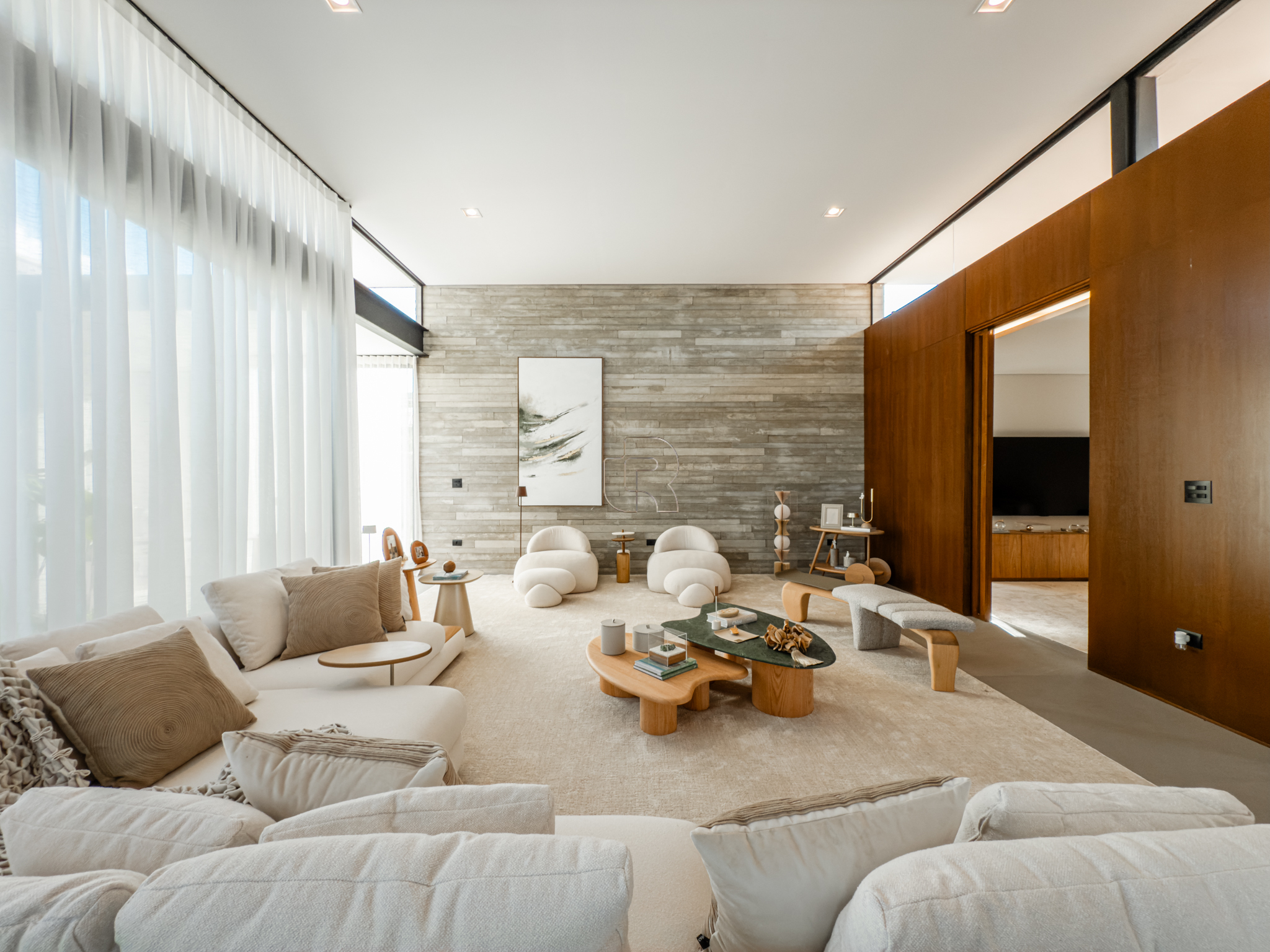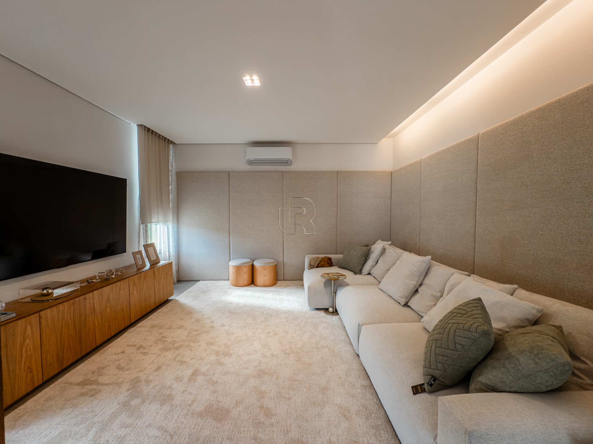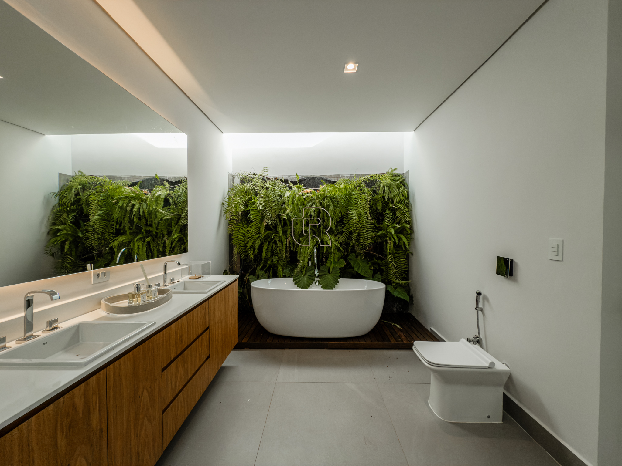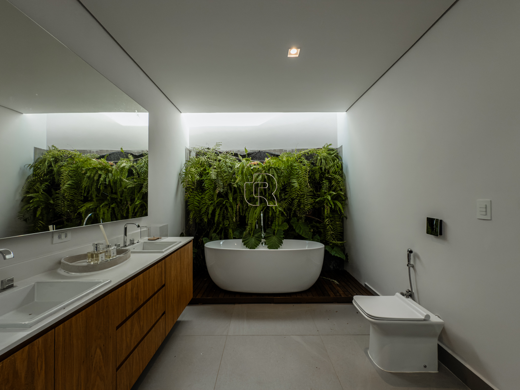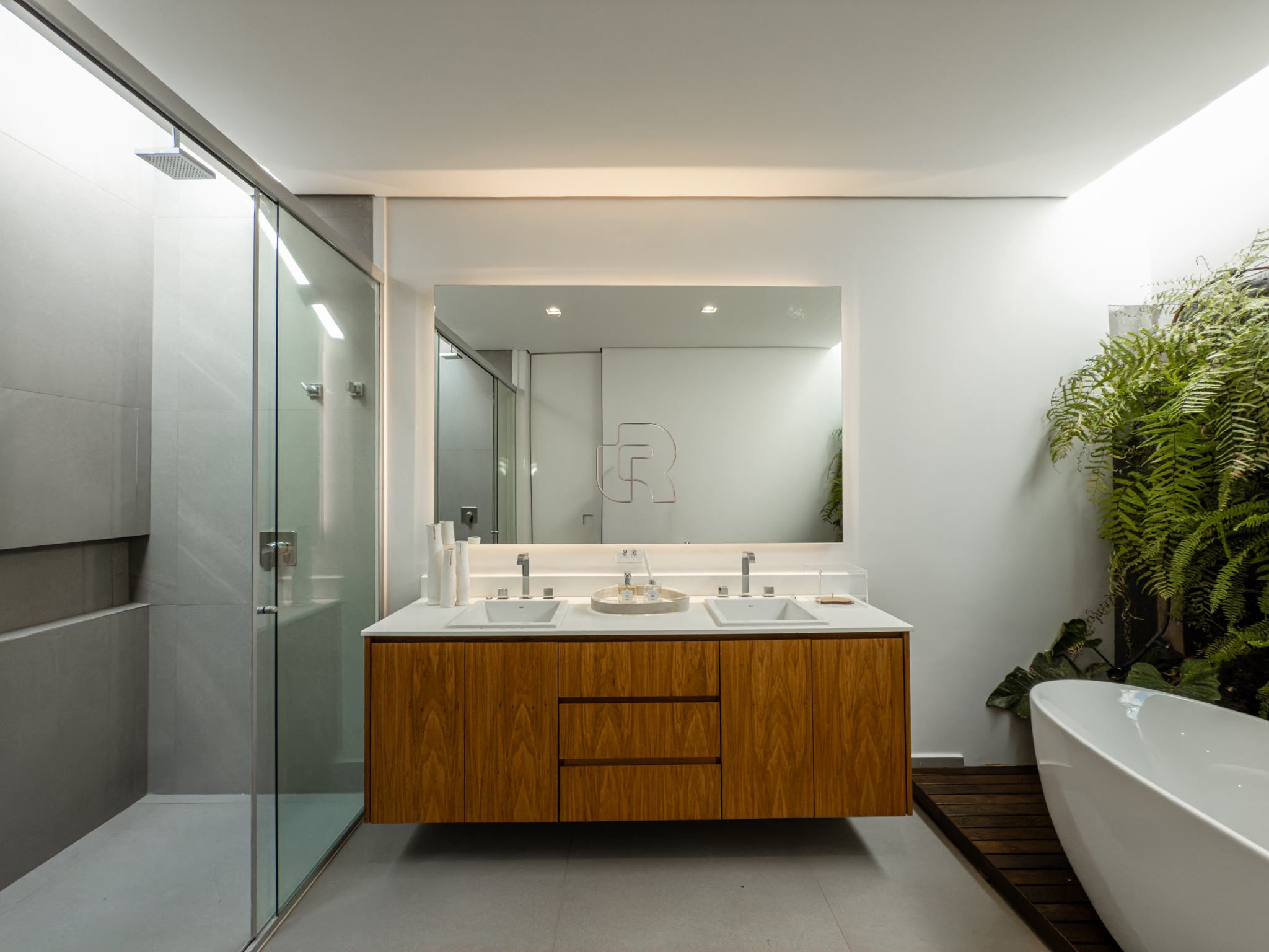A área gourmet é equipada com cervejeira, cooktop, forno de pizza e churrasqueira, ideal para receber com conforto e elegância. Na área externa, a casa dispõe de piscina com borda infinita e spa com hidromassagem, proporcionando lazer e bem-estar. Os acabamentos refletem alto padrão, com piso em madeira nas suítes e porcelanato Portobello nos demais ambientes, além de portas painel do piso ao teto, que garantem amplitude, iluminação natural e um design marcante.