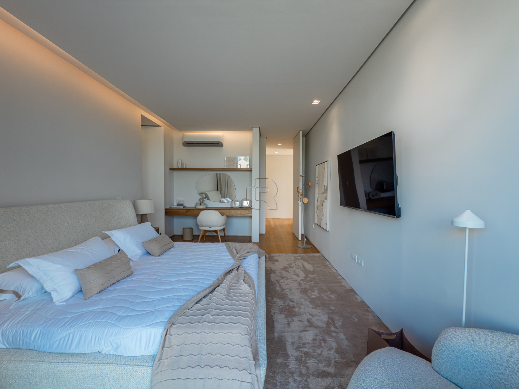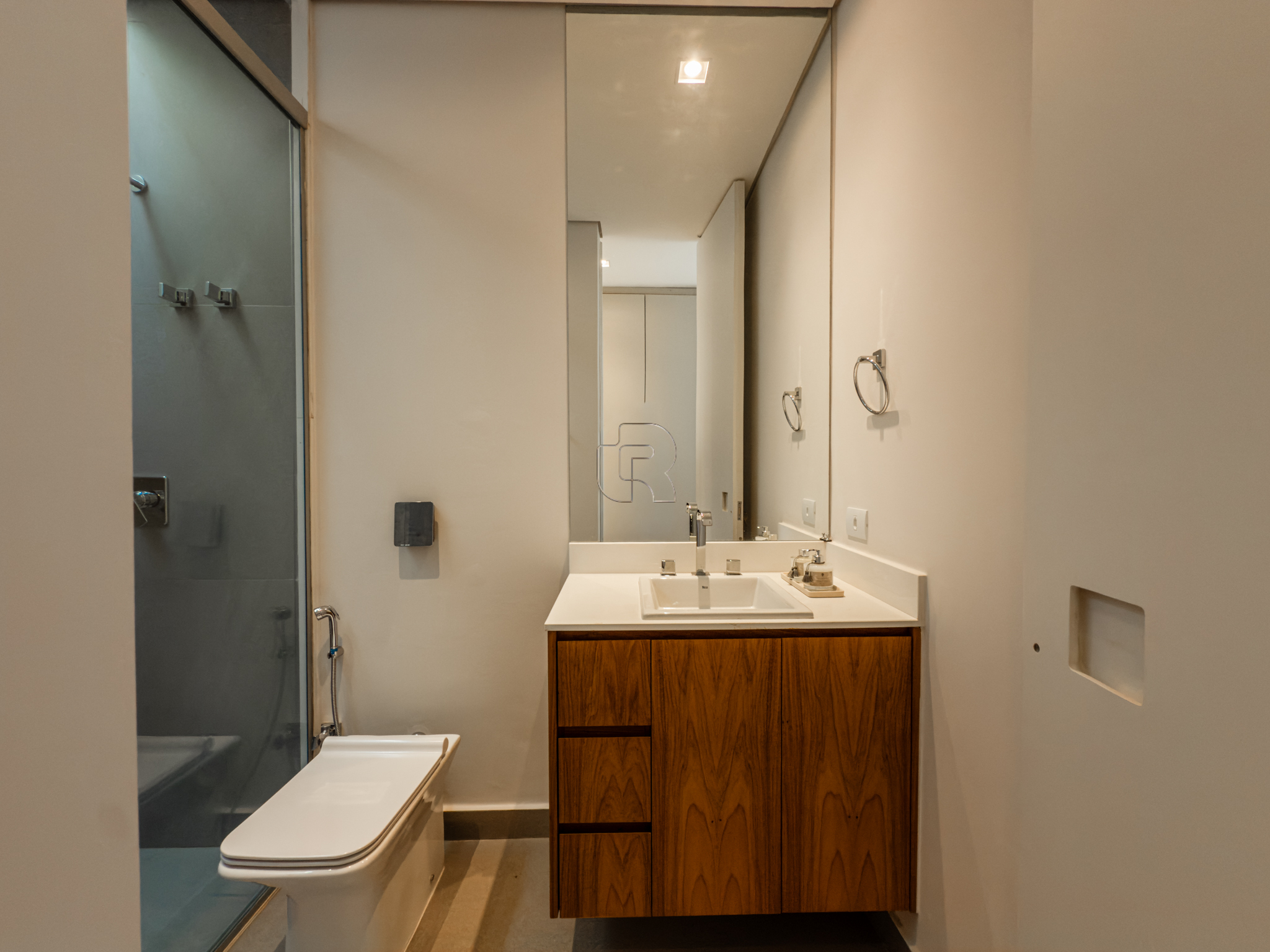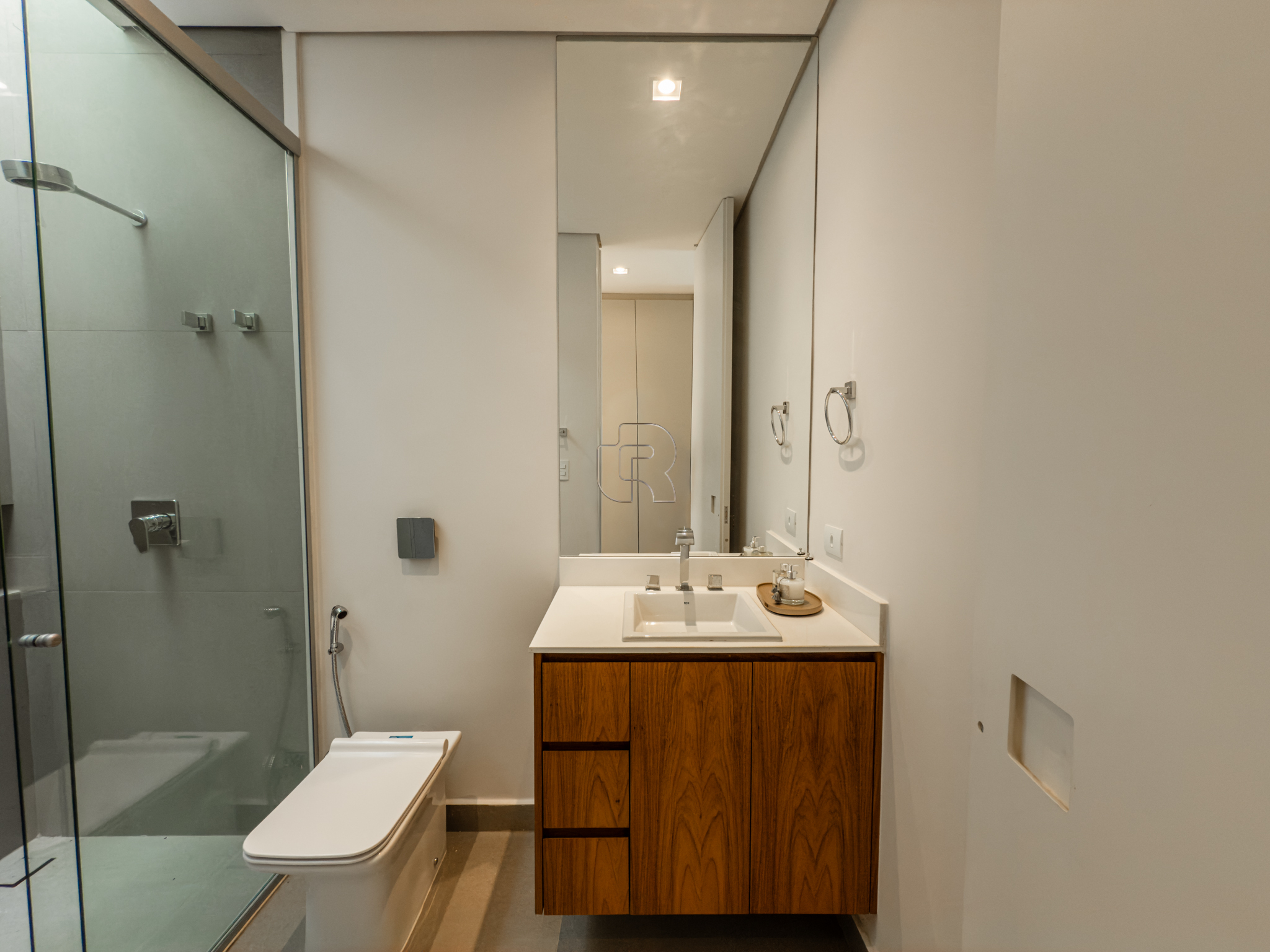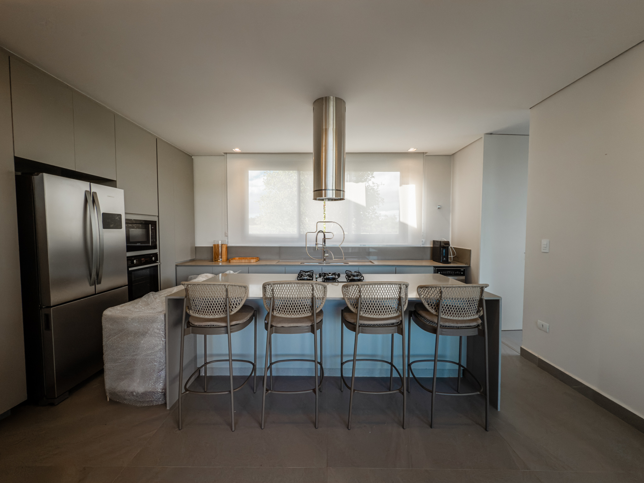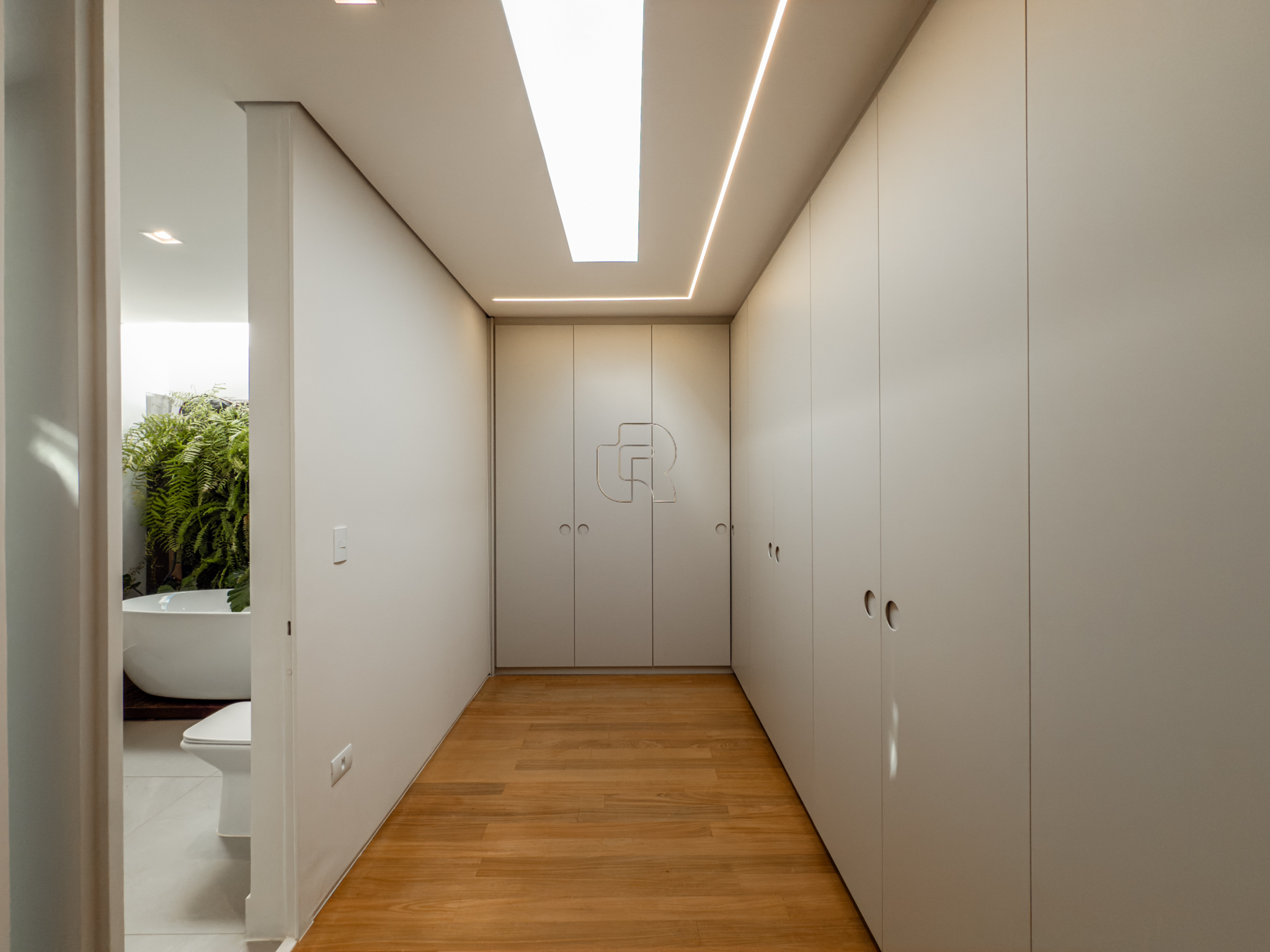 A área gourmet é equipada com cervejeira, cooktop, forno de pizza e churrasqueira, ideal para receber com conforto e elegância. Na área externa, a casa dispõe de piscina com borda infinita e spa com hidromassagem, proporcionando lazer e bem-estar. Os acabamentos refletem alto padrão, com piso em madeira nas suítes e porcelanato Portobello nos demais ambientes, além de portas painel do piso ao teto, que garantem amplitude, iluminação natural e um design marcante.