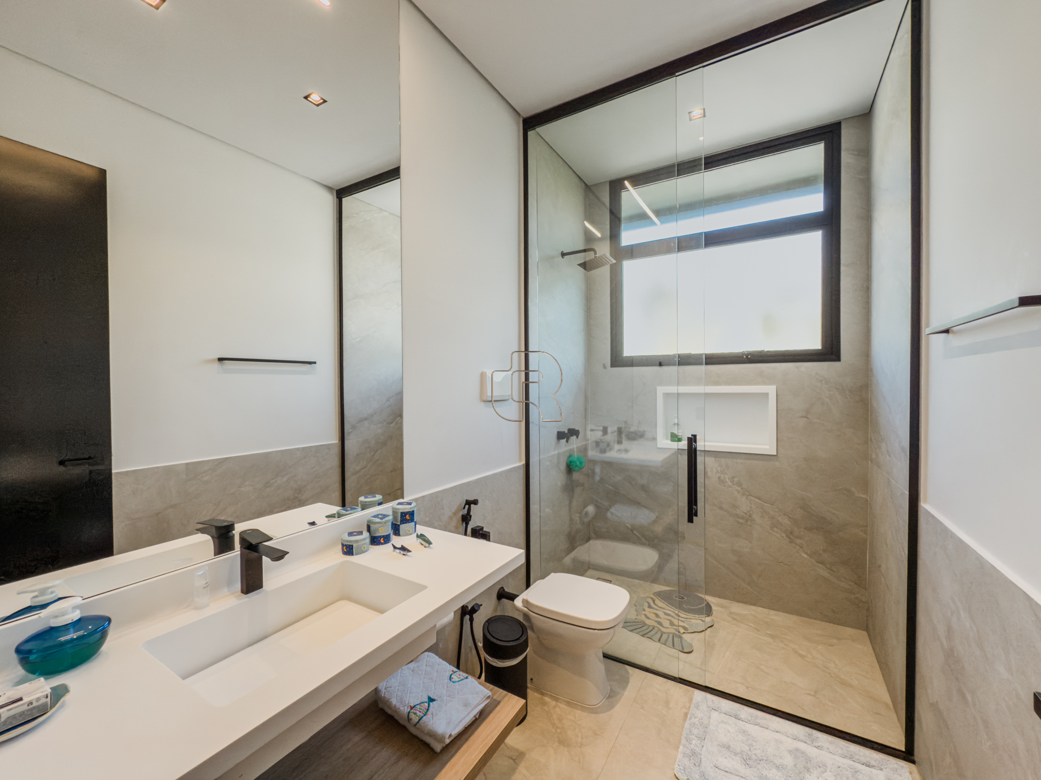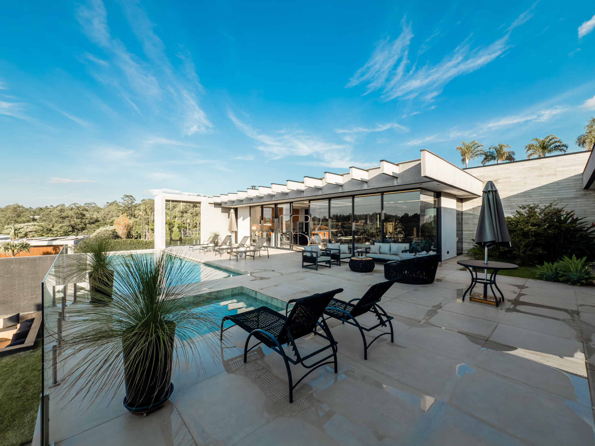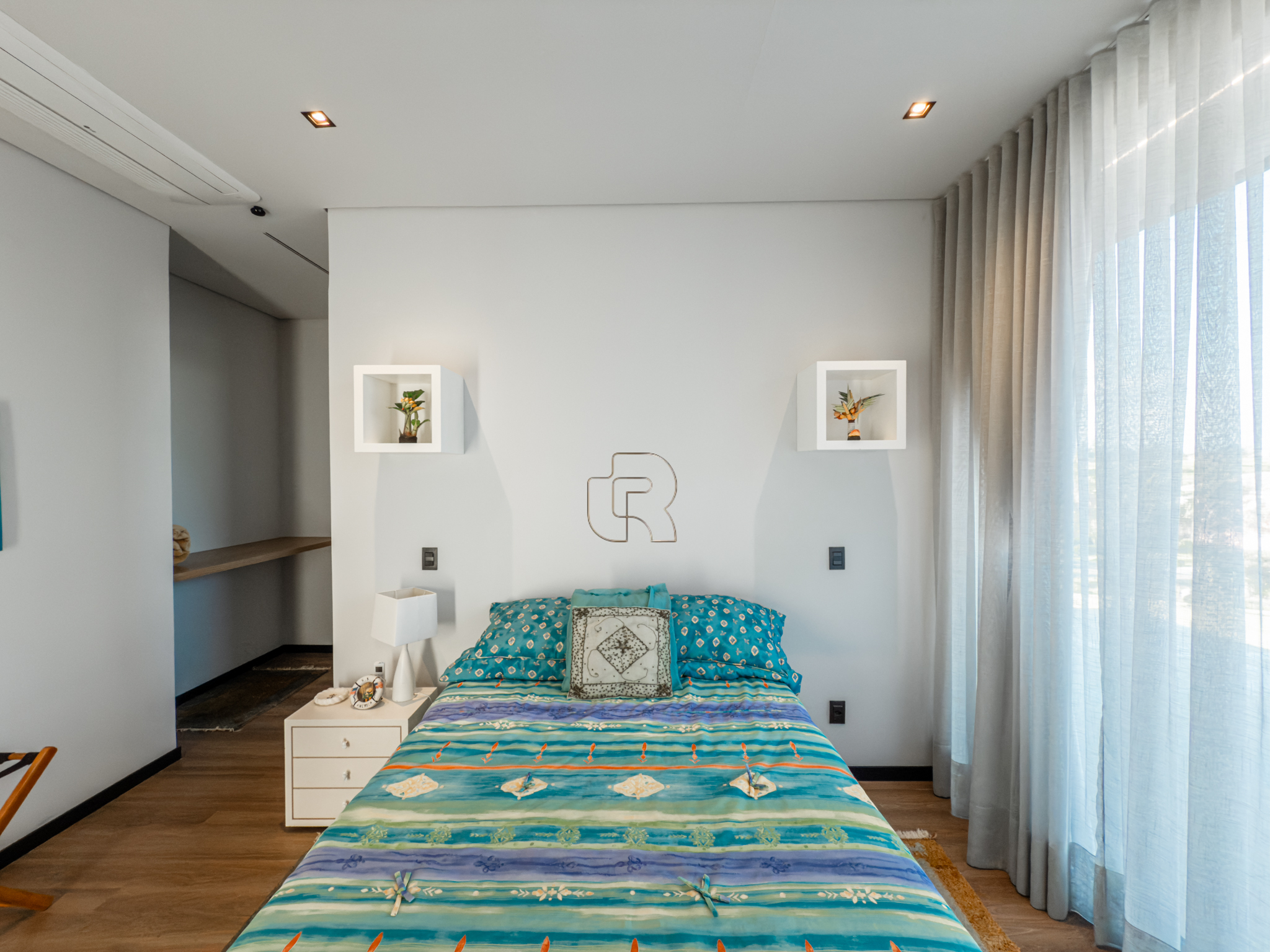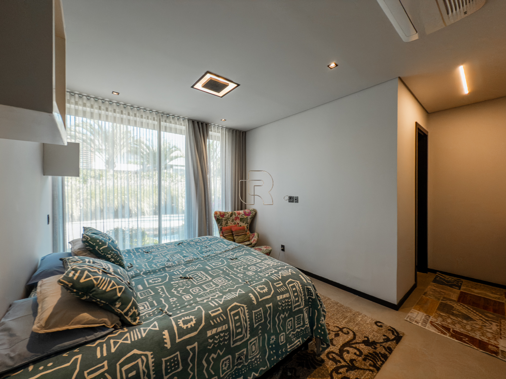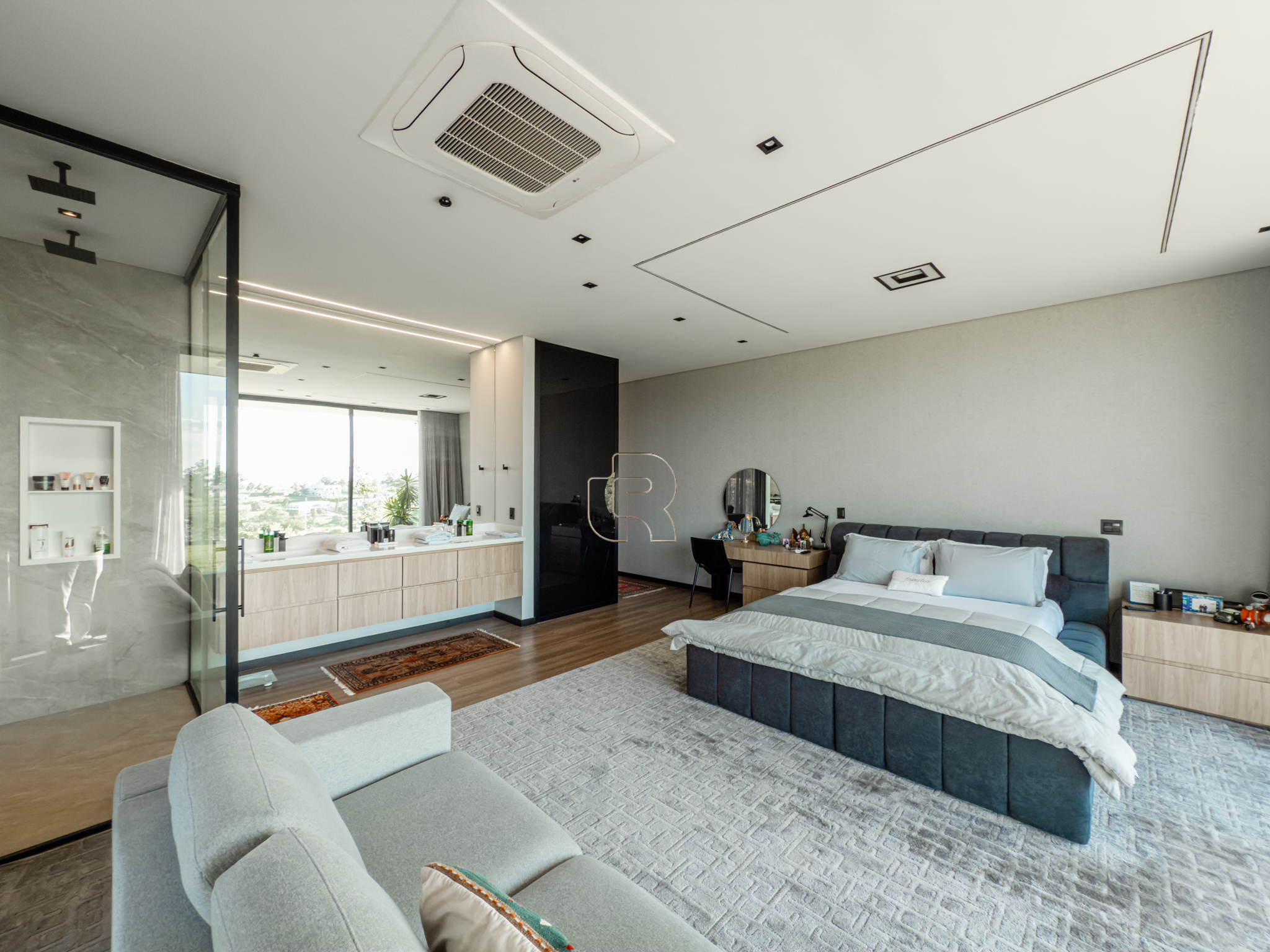 Com um projeto arquitetônico contemporâneo e elegante, o imóvel dispõe de cinco amplas suítes, além de uma suíte para colaboradora, distribuídas em um terreno privilegiado com vista deslumbrante para o nascer do sol.