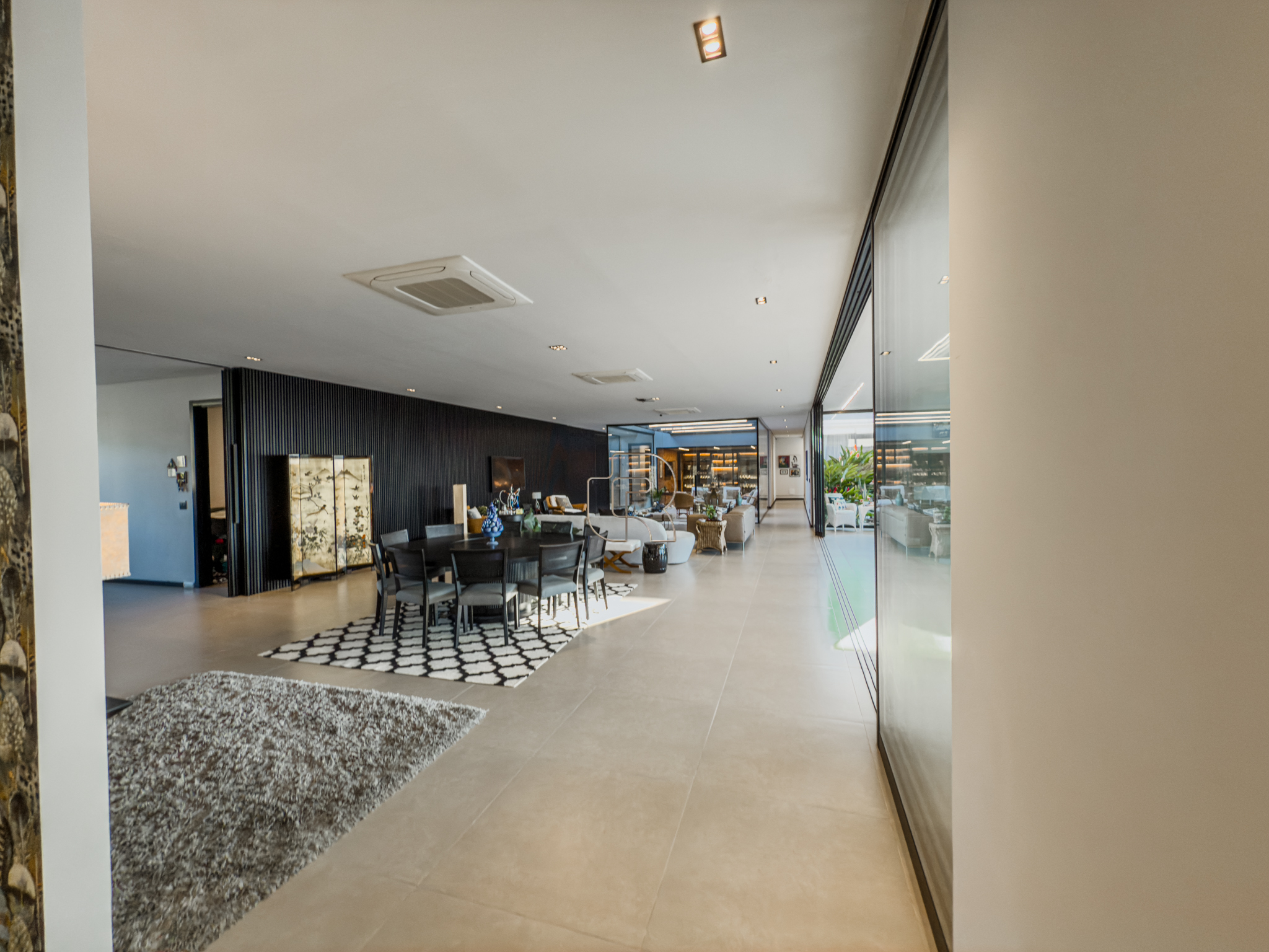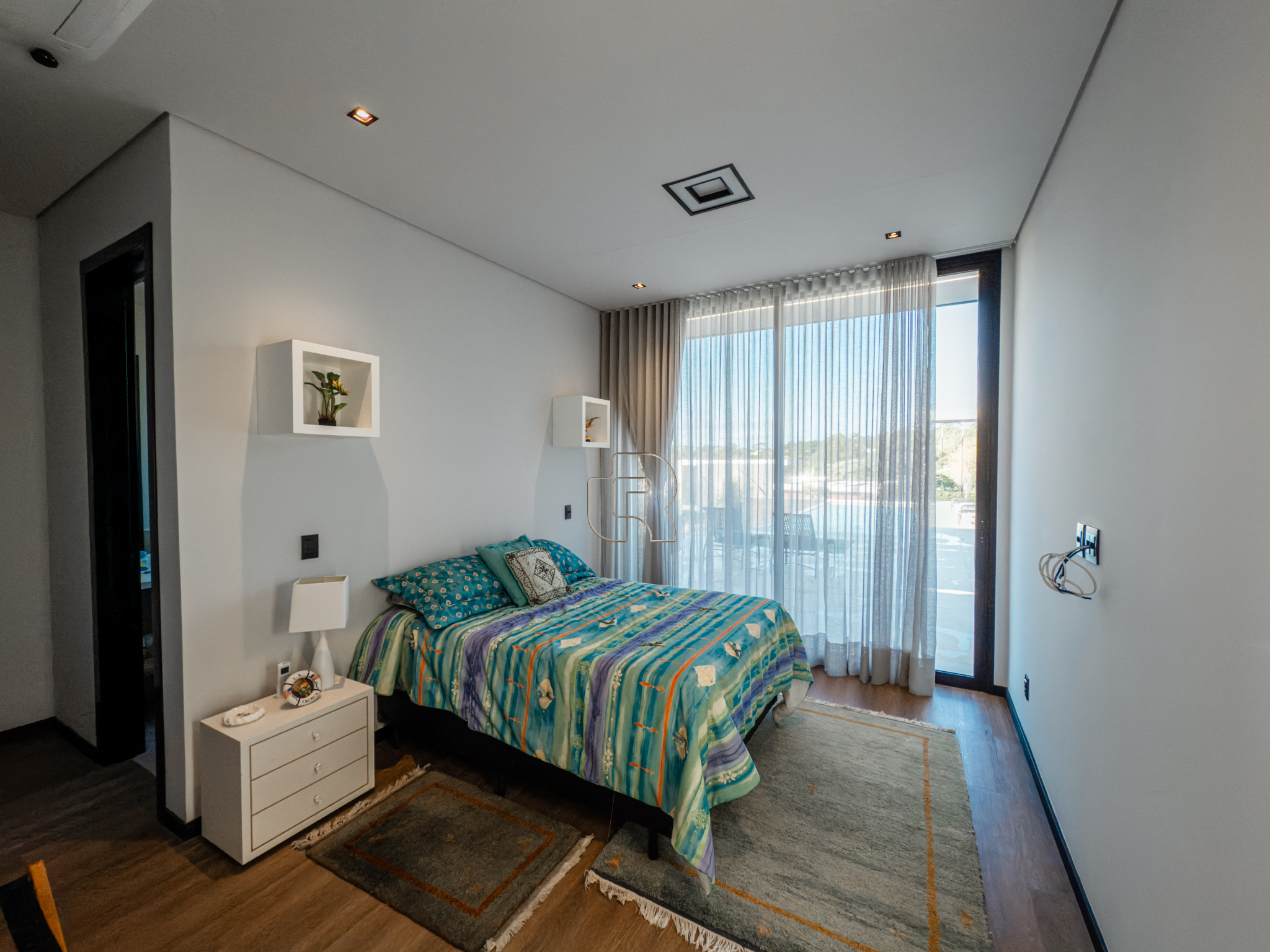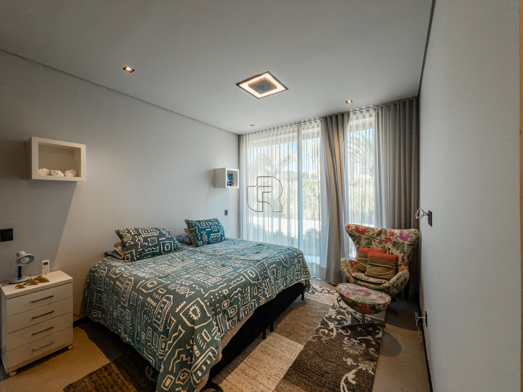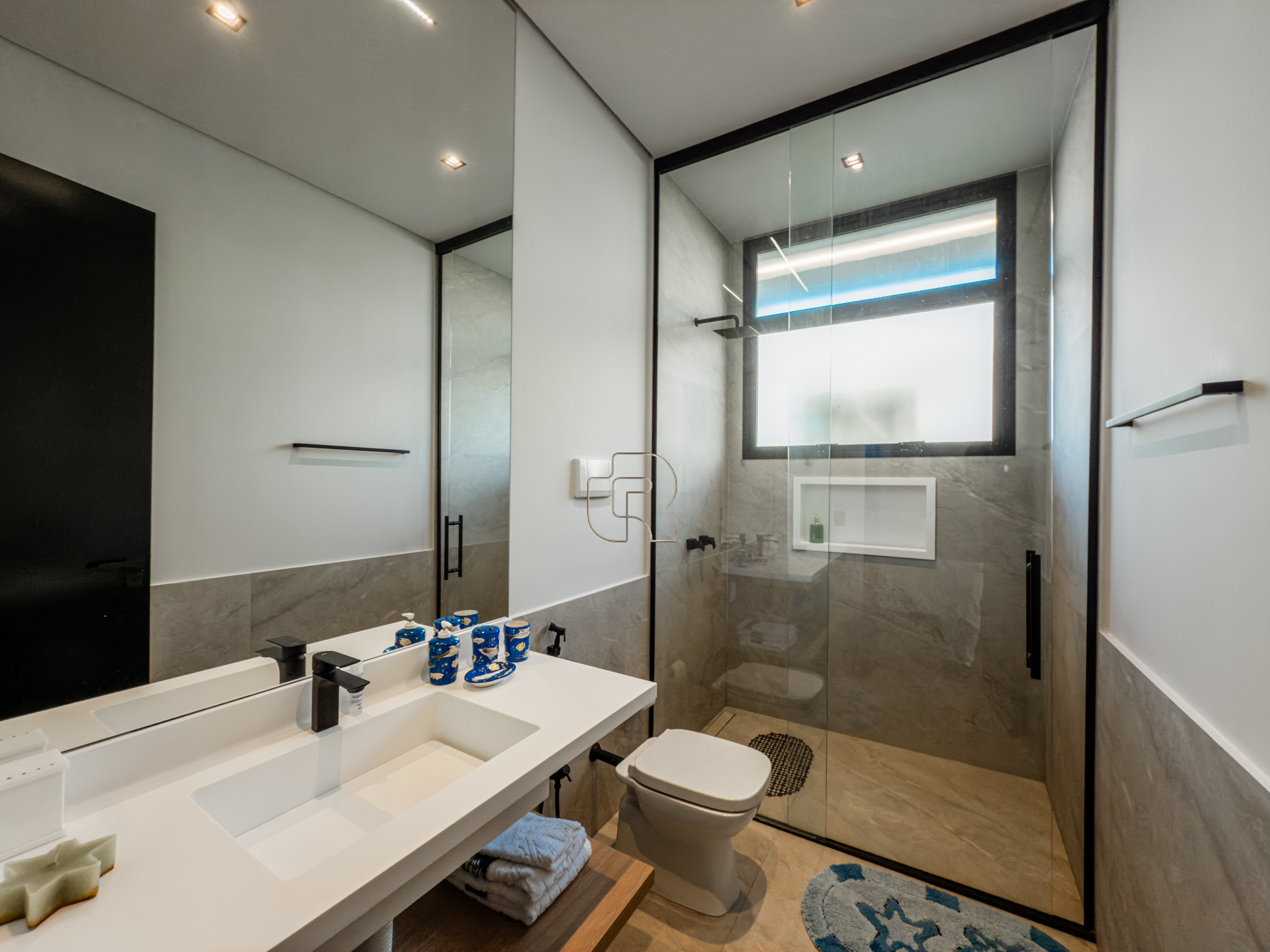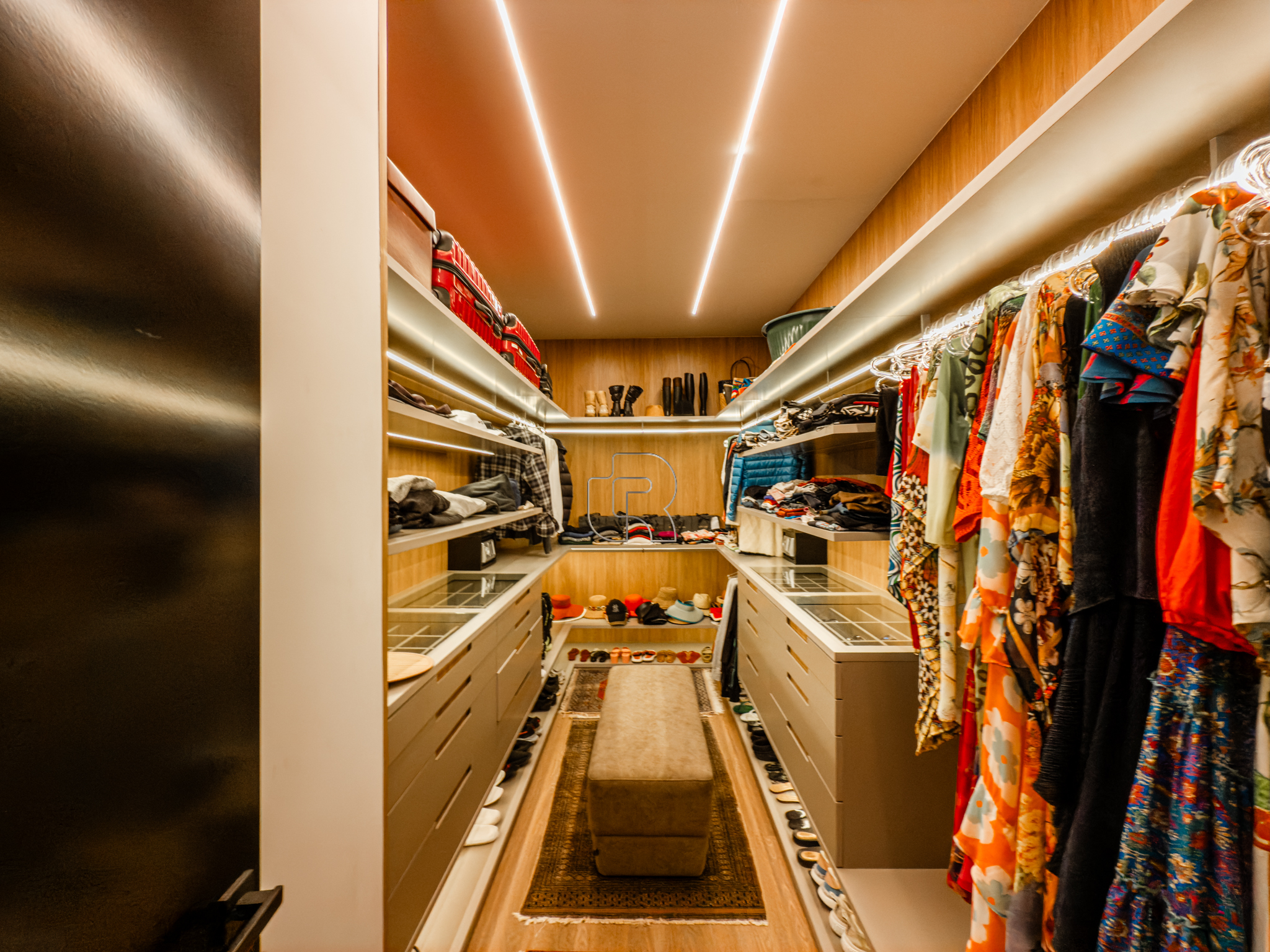 Com um projeto arquitetônico contemporâneo e elegante, o imóvel dispõe de cinco amplas suítes, além de uma suíte para colaboradora, distribuídas em um terreno privilegiado com vista deslumbrante para o nascer do sol.