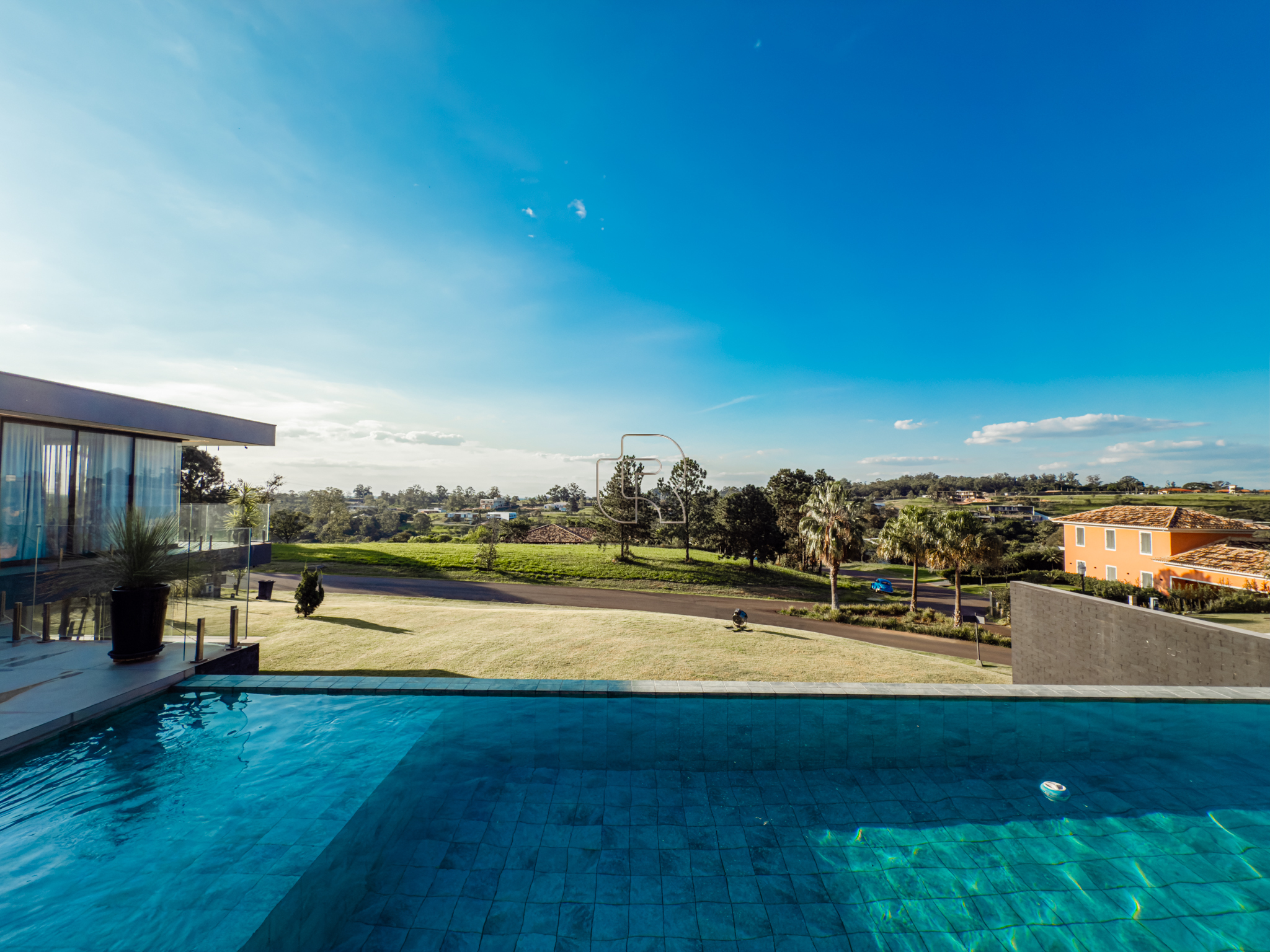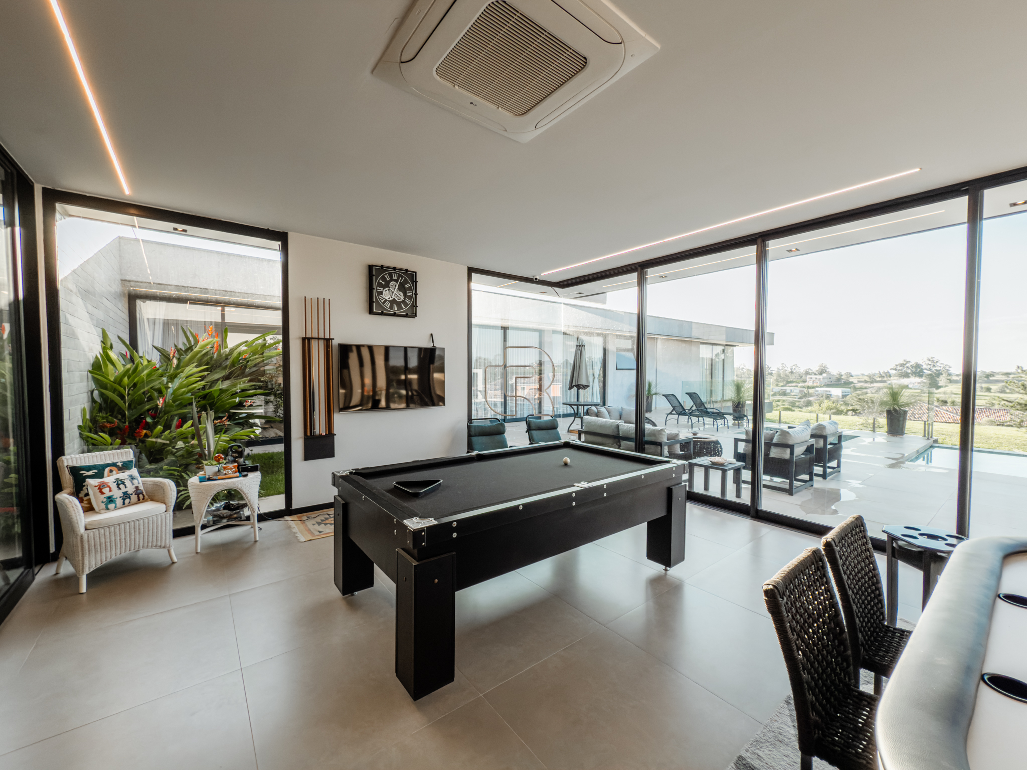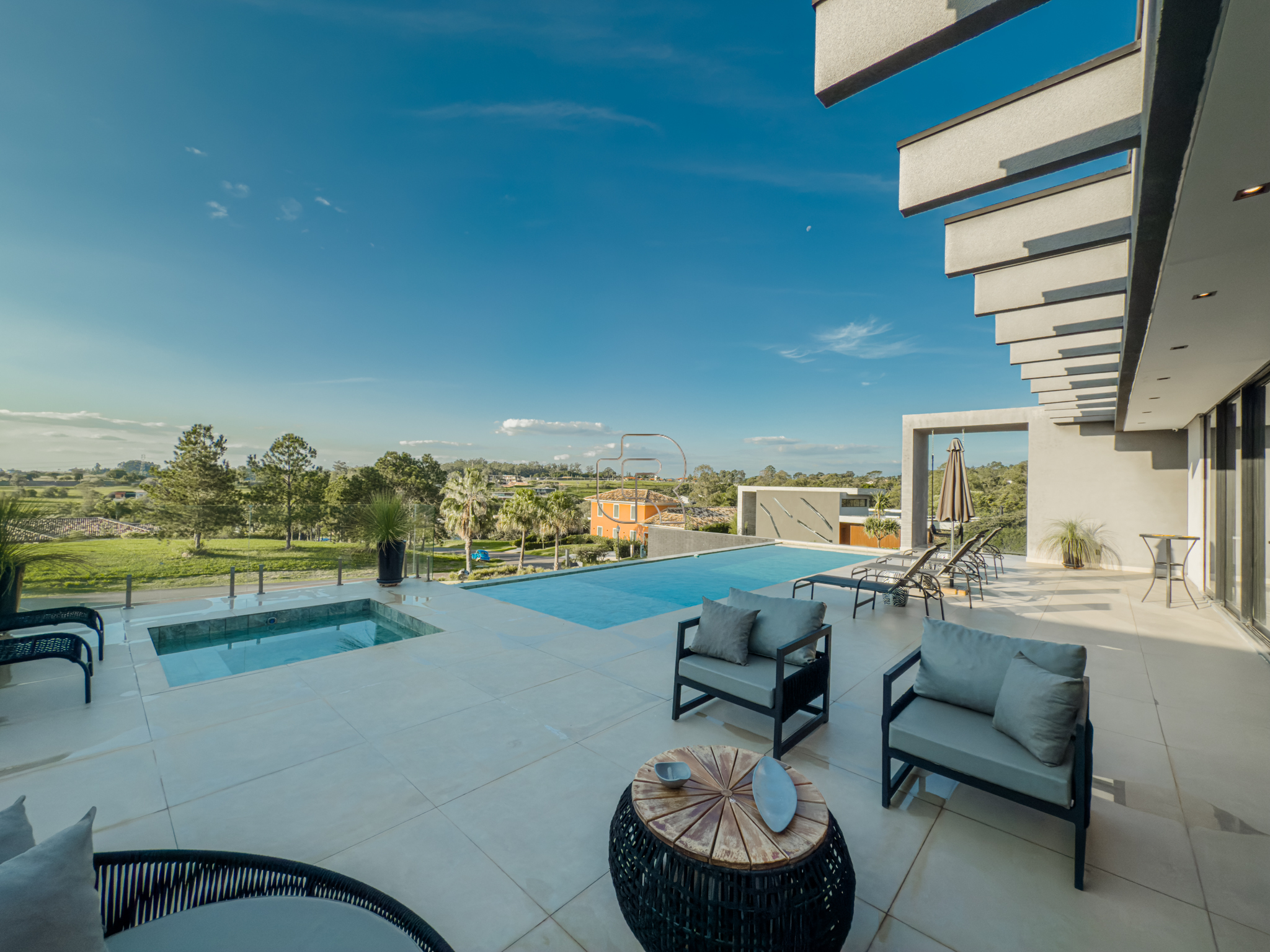 A residência integra tecnologia e sustentabilidade de forma exemplar, contando com sistema de automação residencial, irrigação automatizada, aspirador central, fechaduras digitais e aquecimento solar para piscina, chuveiros e torneiras.