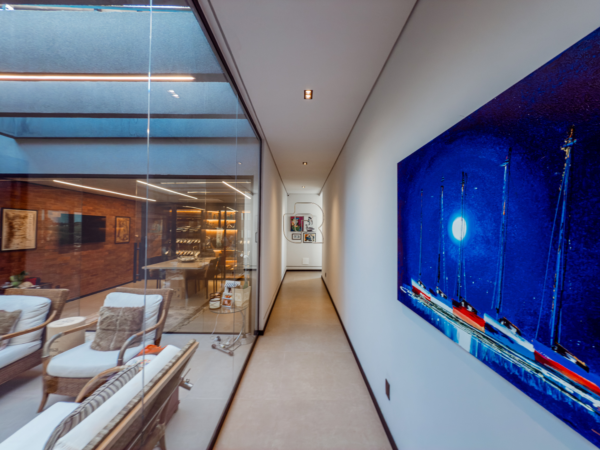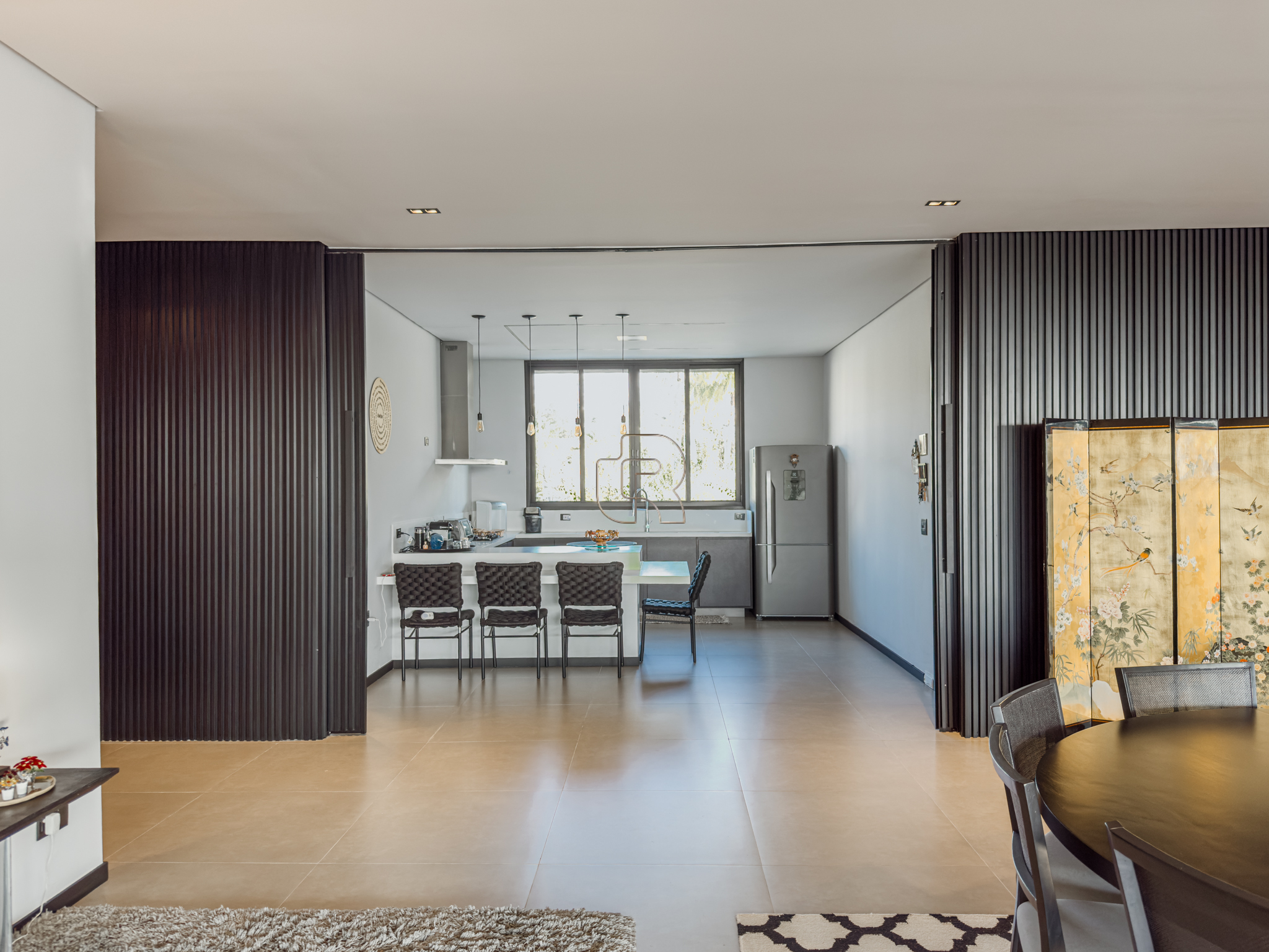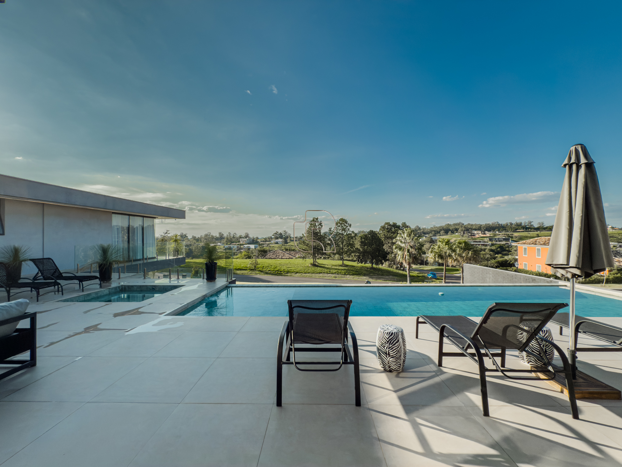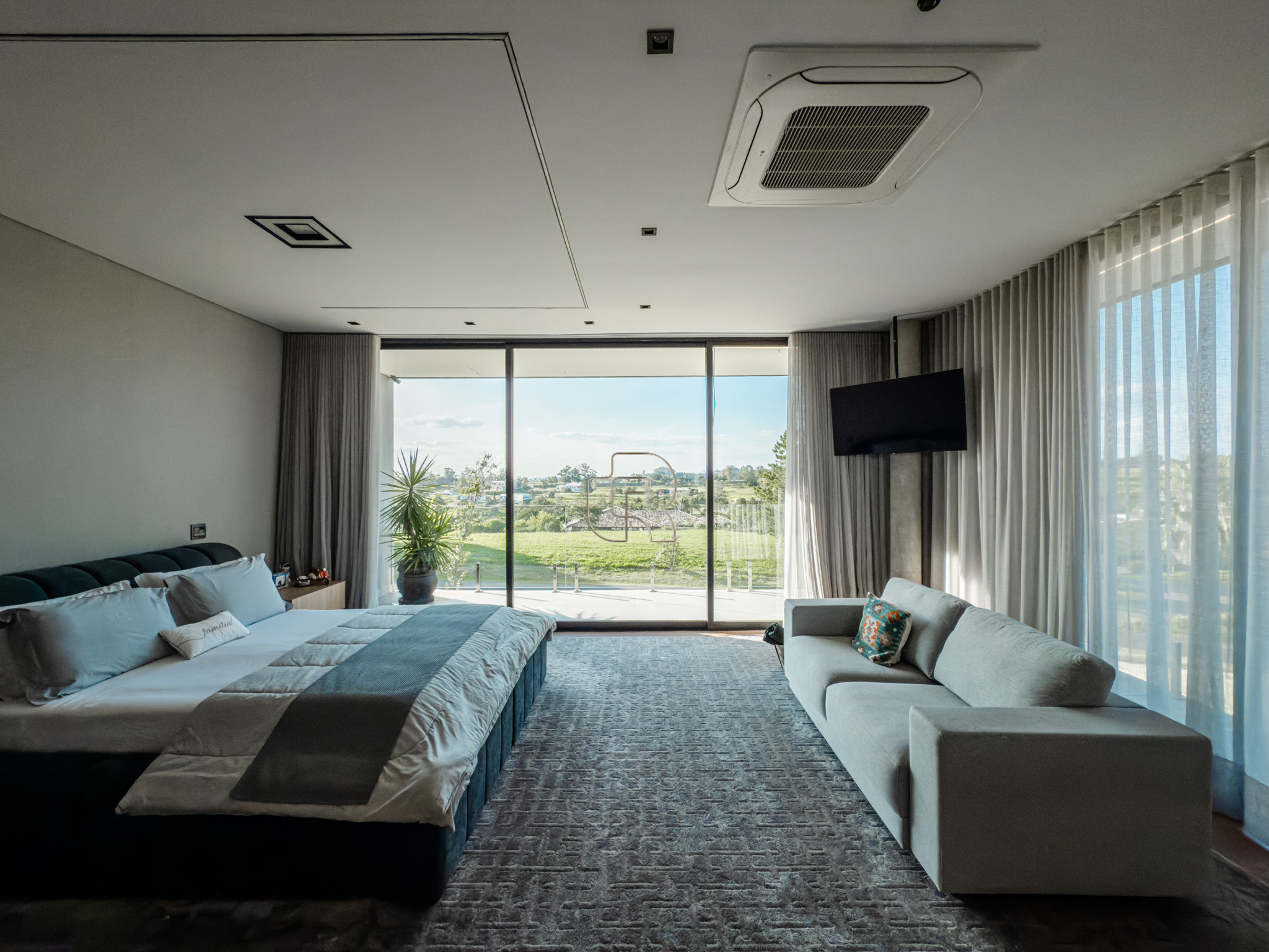 A residência integra tecnologia e sustentabilidade de forma exemplar, contando com sistema de automação residencial, irrigação automatizada, aspirador central, fechaduras digitais e aquecimento solar para piscina, chuveiros e torneiras.