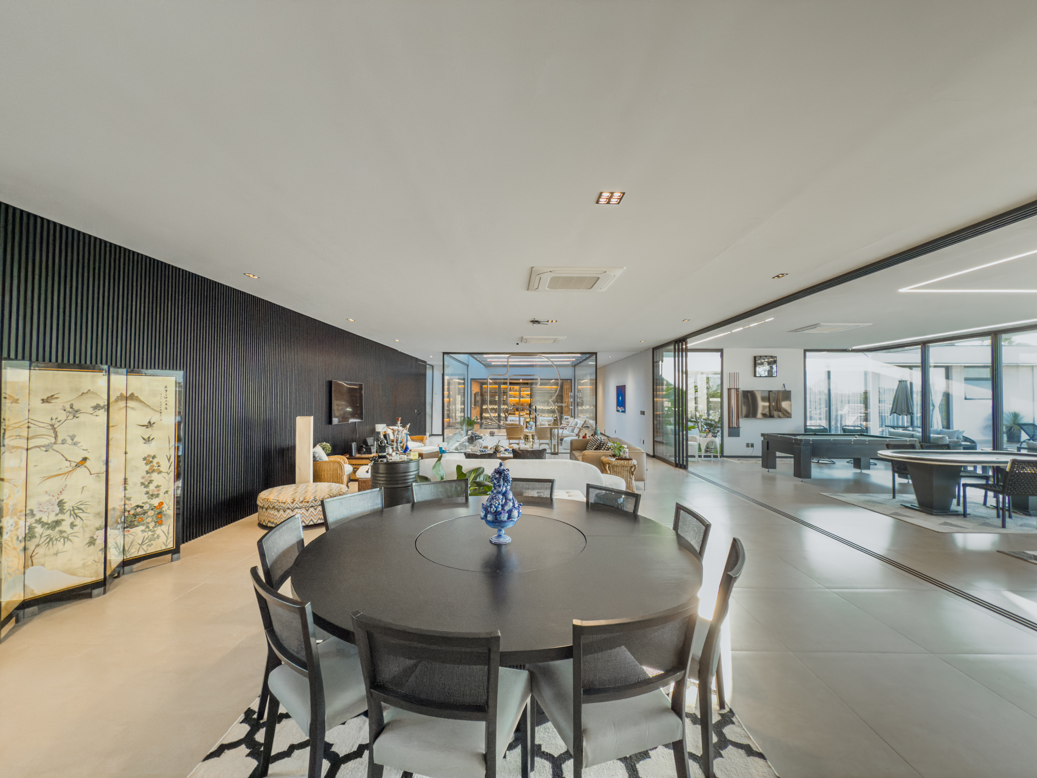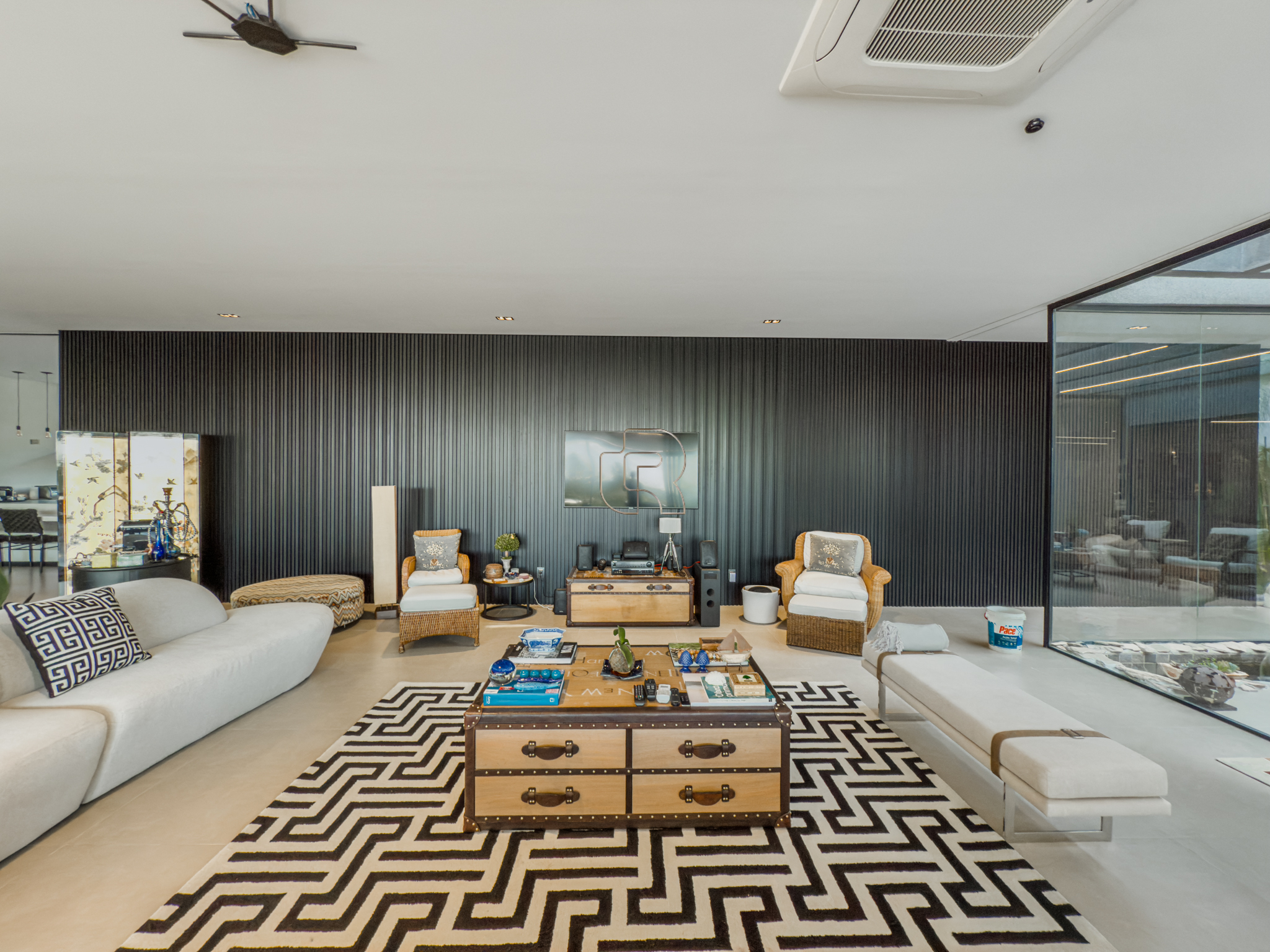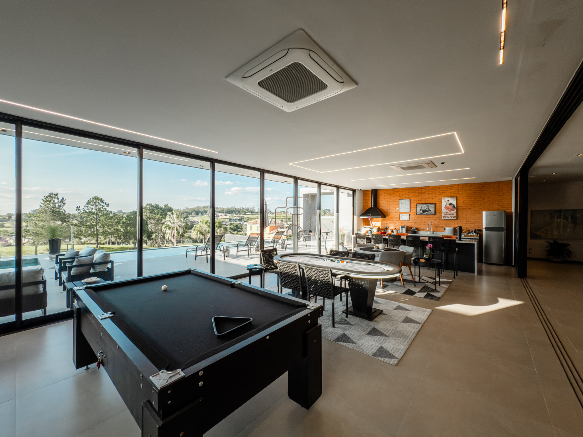 Os ambientes de lazer foram idealizados para momentos de convivência e contemplação, destacando-se a adega central climatizada e os espaços integrados ao paisagismo exuberante, que reforçam a harmonia entre elegância, conforto e natureza.