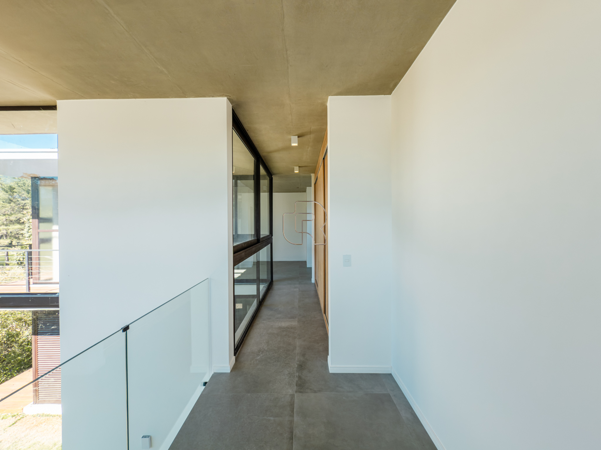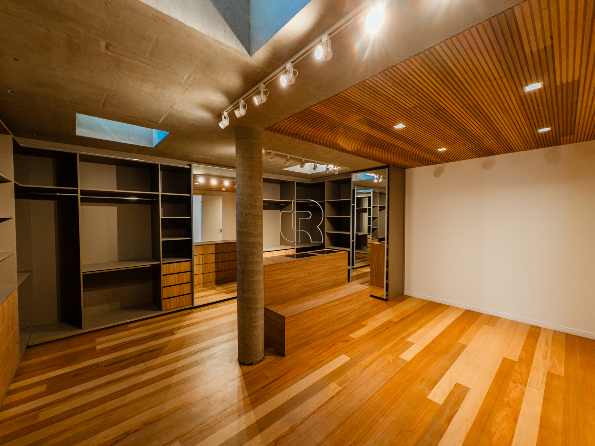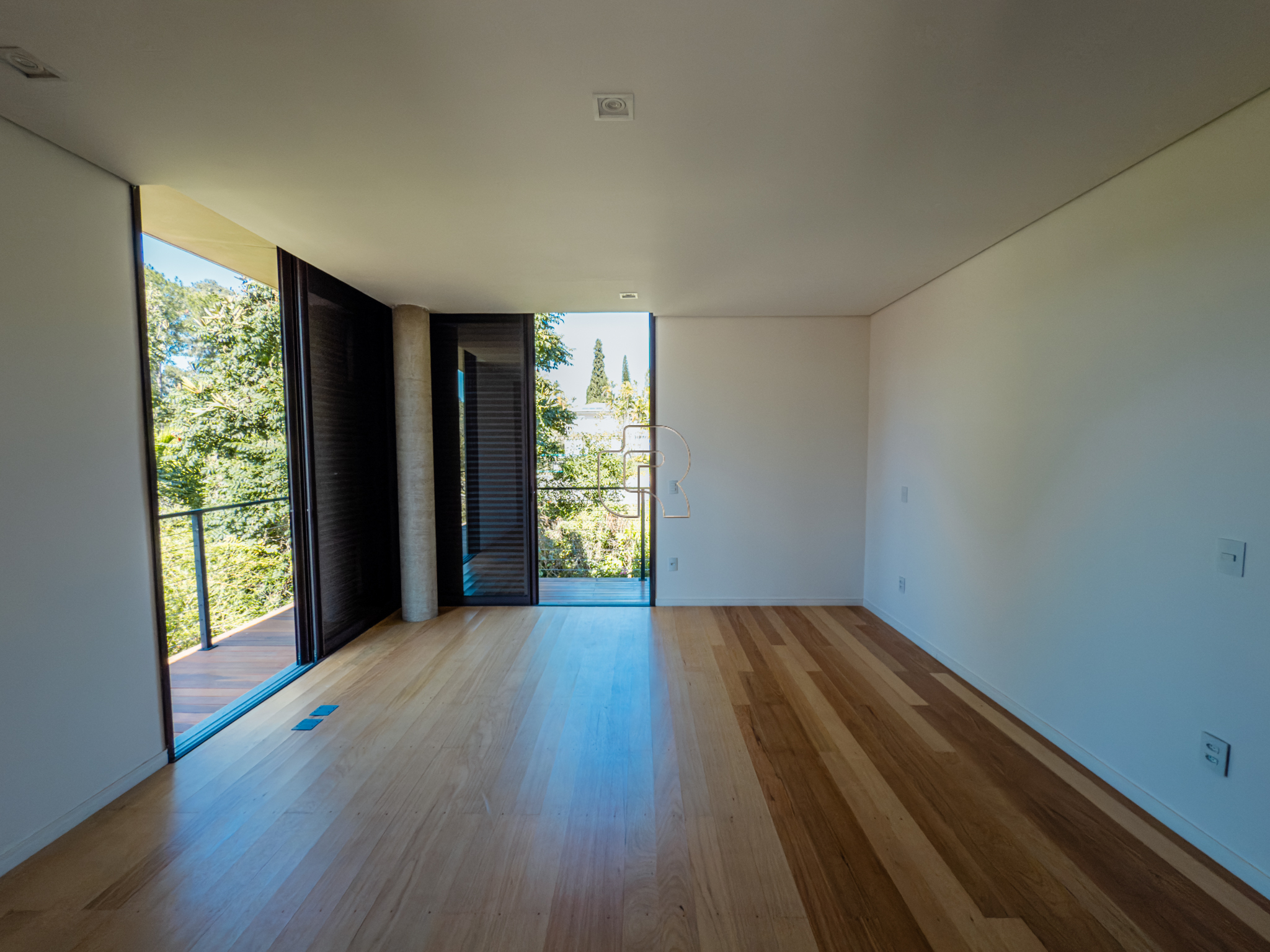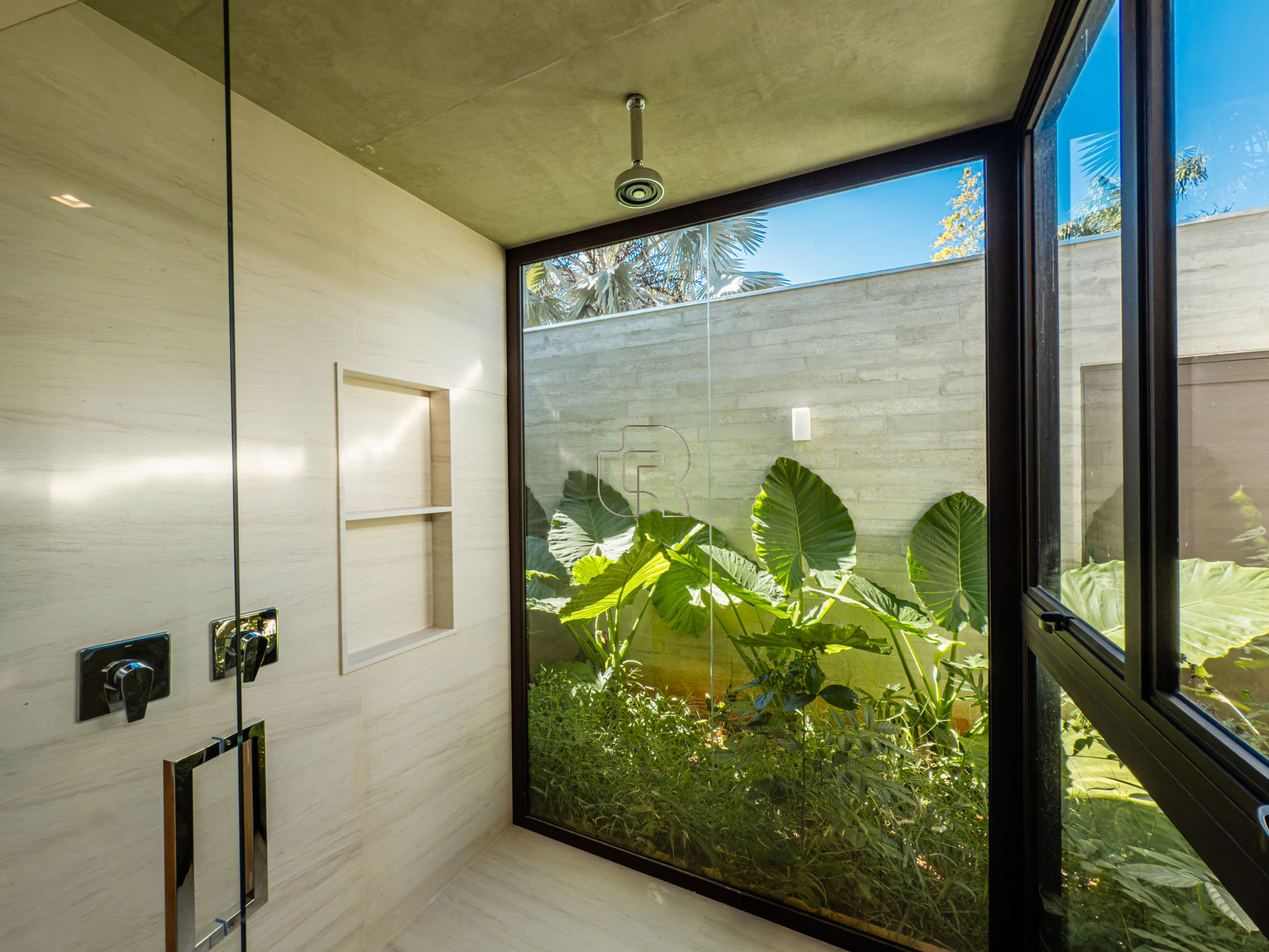Projeto arquitetônico assinado por DBarquitetos – David Bastos Arquitetura. A residência conta com ampla sala integrada e pé-direito de 4,5 metros, cozinha com marcenaria planejada, lavabo social e banheiro de piscina. São cinco suítes com marcenaria, sendo a master com closet montado, além de roupeiro no corredor íntimo.