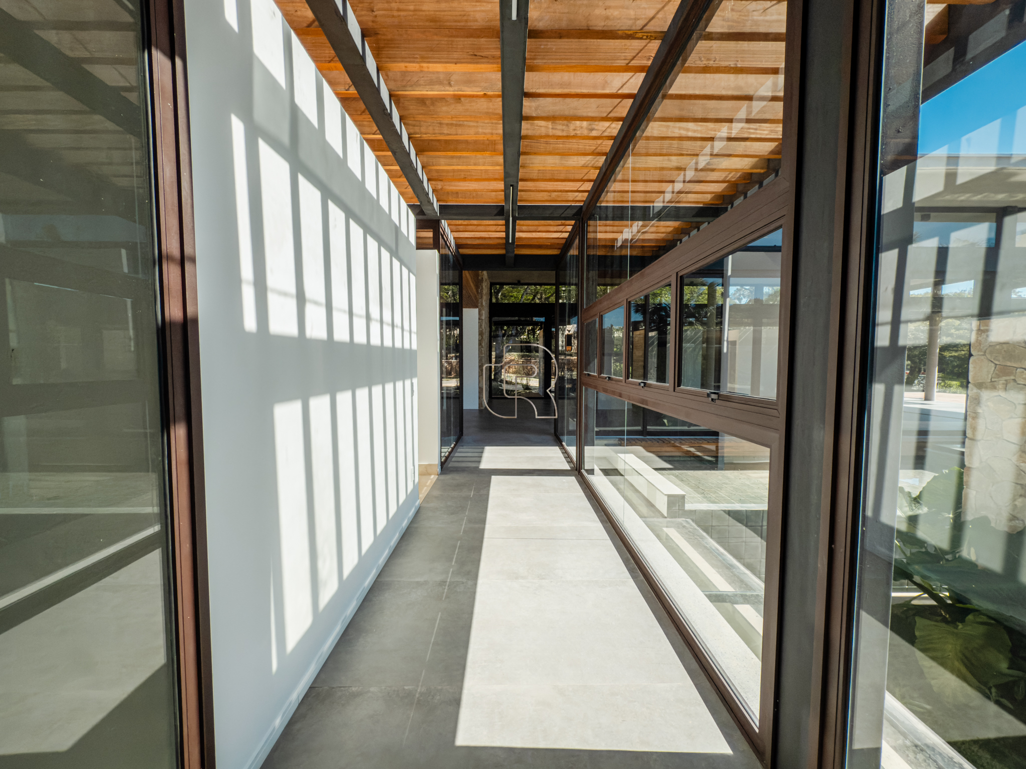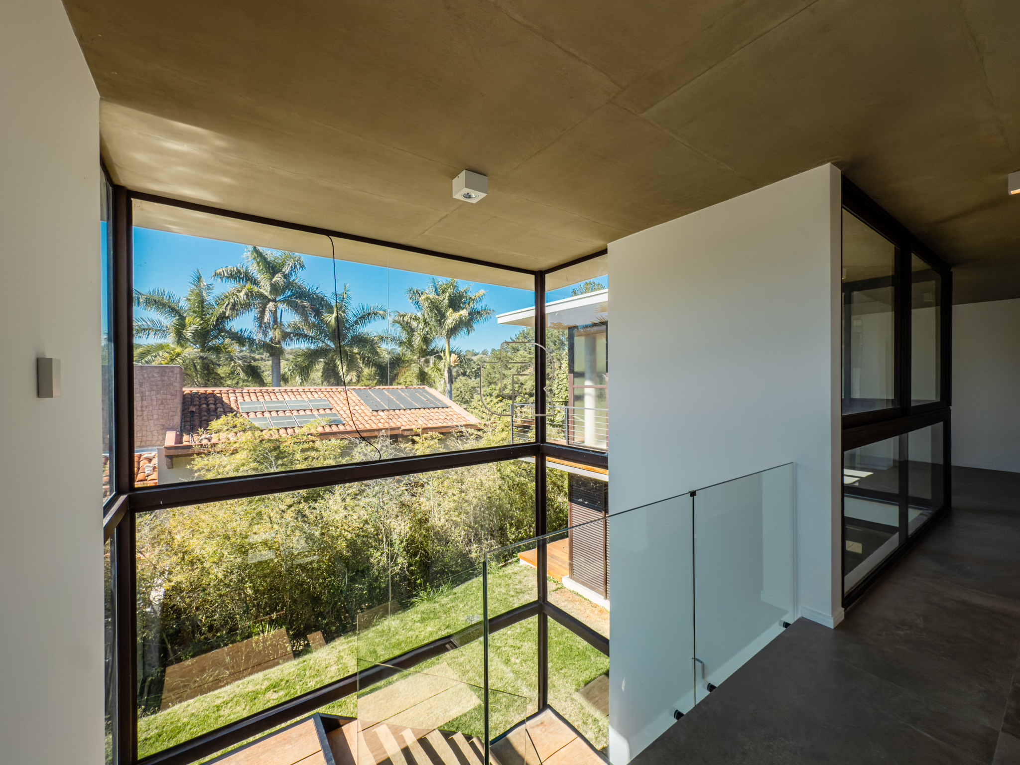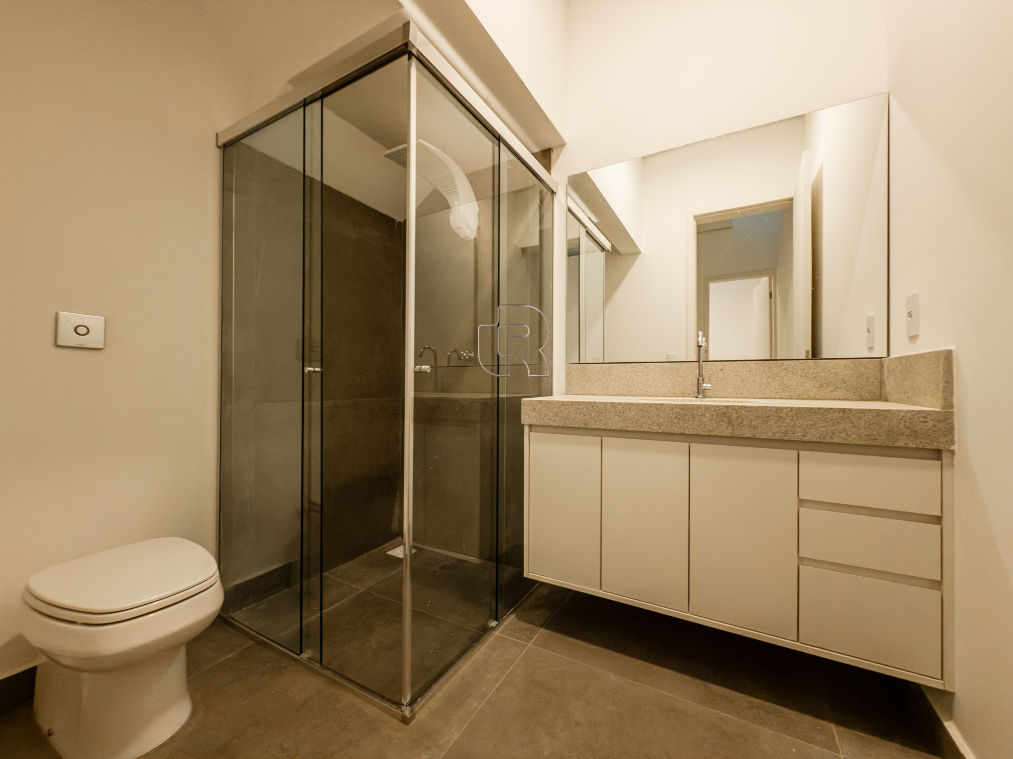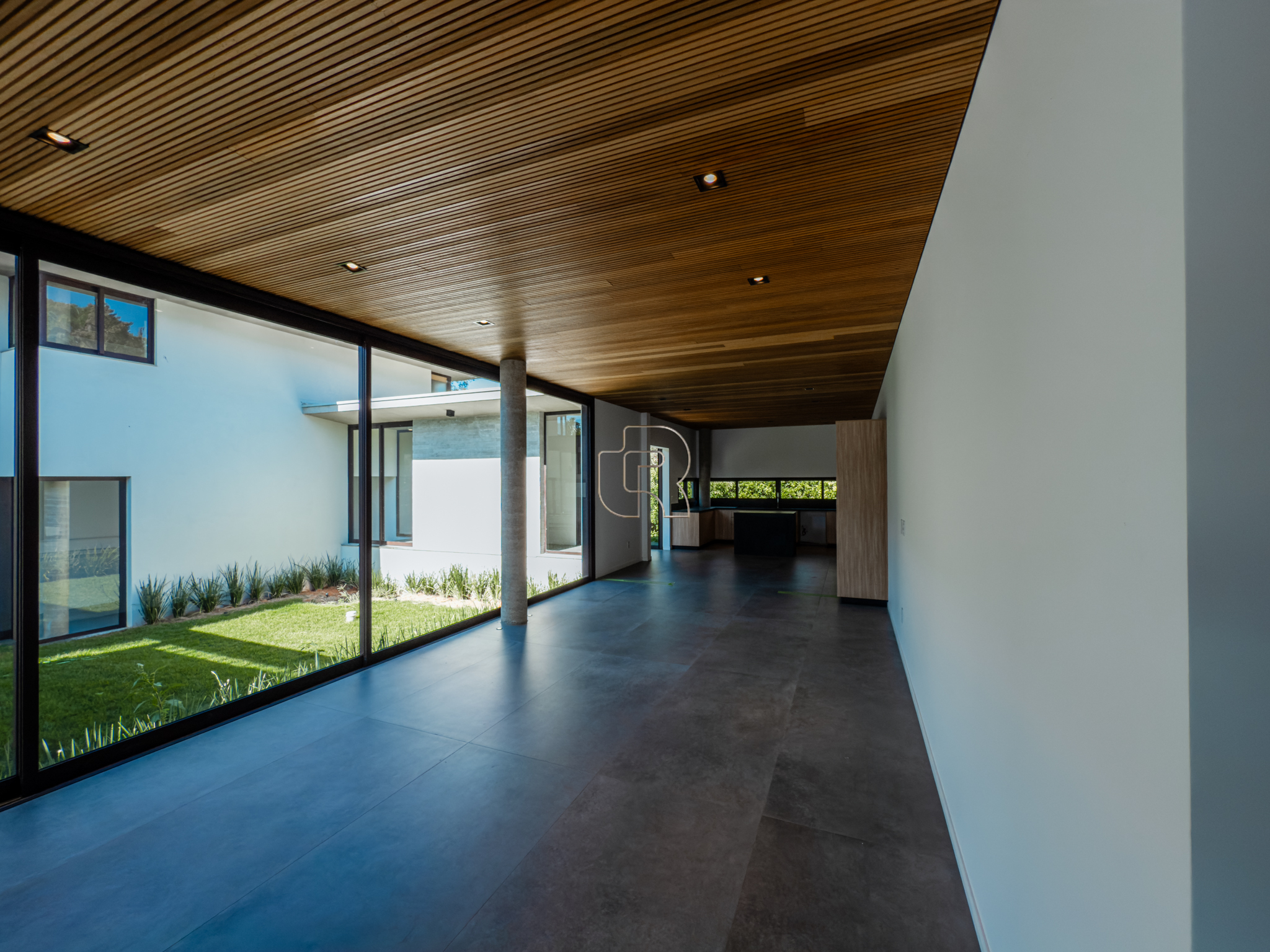 Dispõe de espaço gourmet integrado ao deck da piscina com raia de 20 metros, lavanderia e despensa com marcenaria, depósito, garagem coberta para até 14 veículos, pub/salão de festas integrado, adega com louçaria, suíte para colaboradores e sala de segurança. Possui aquecimento solar com pressurizador, energia trifásica, iluminação em LED, paisagismo completo e poço artesiano.