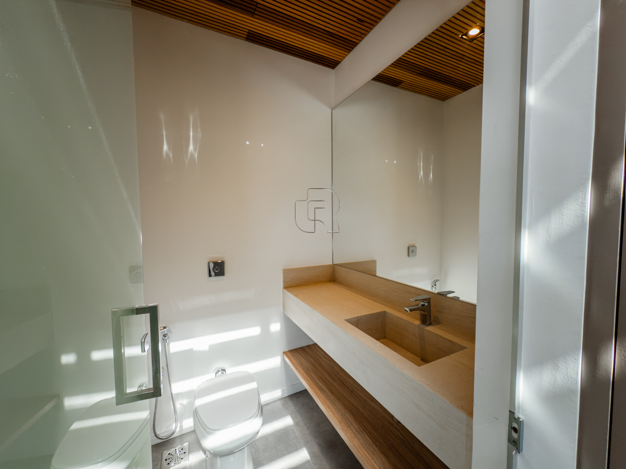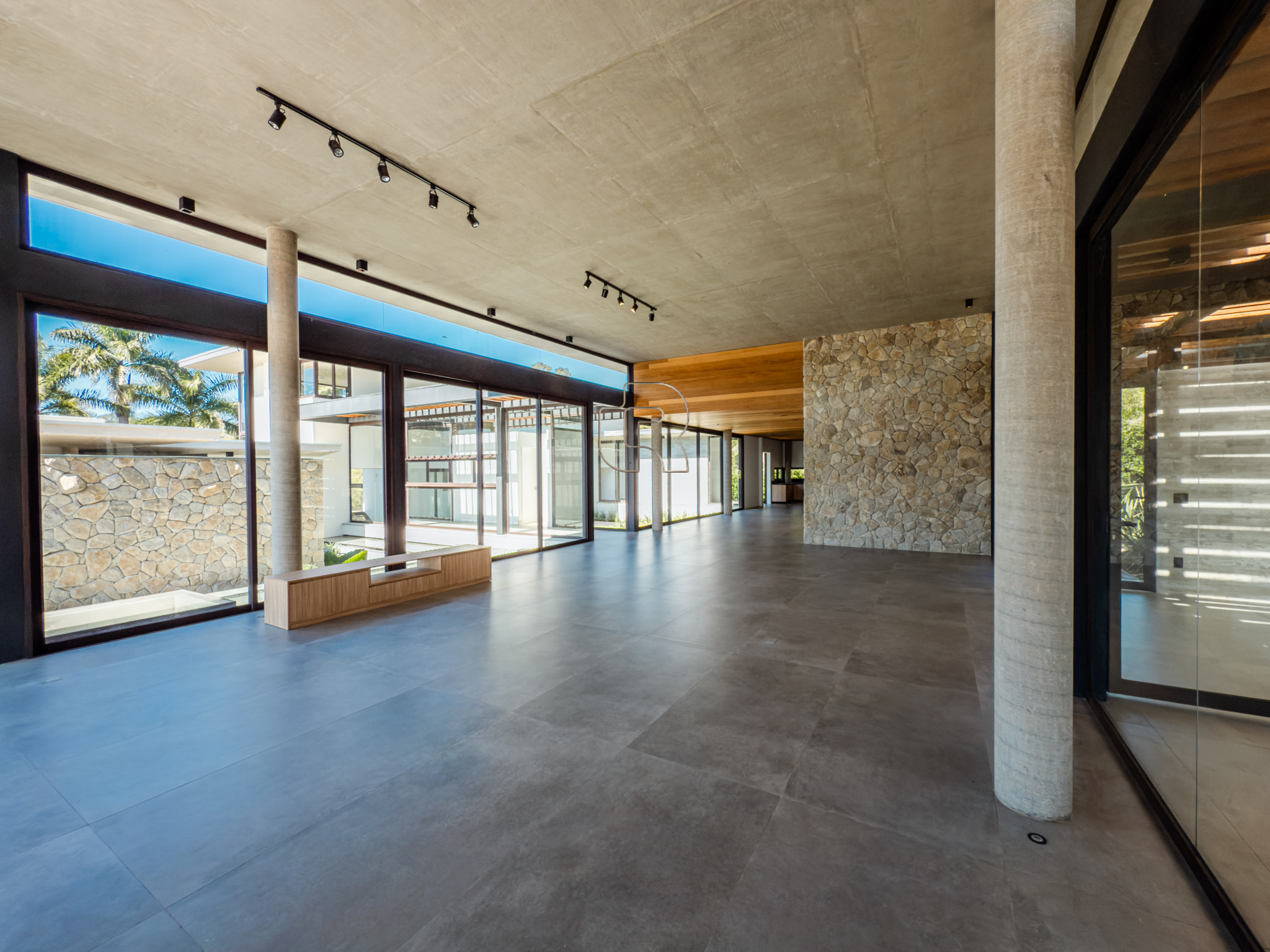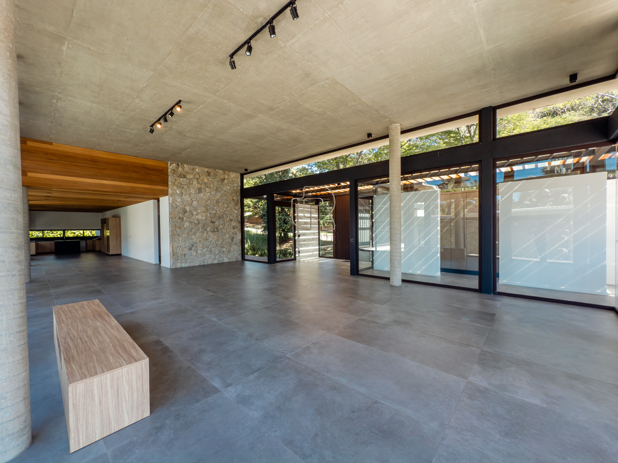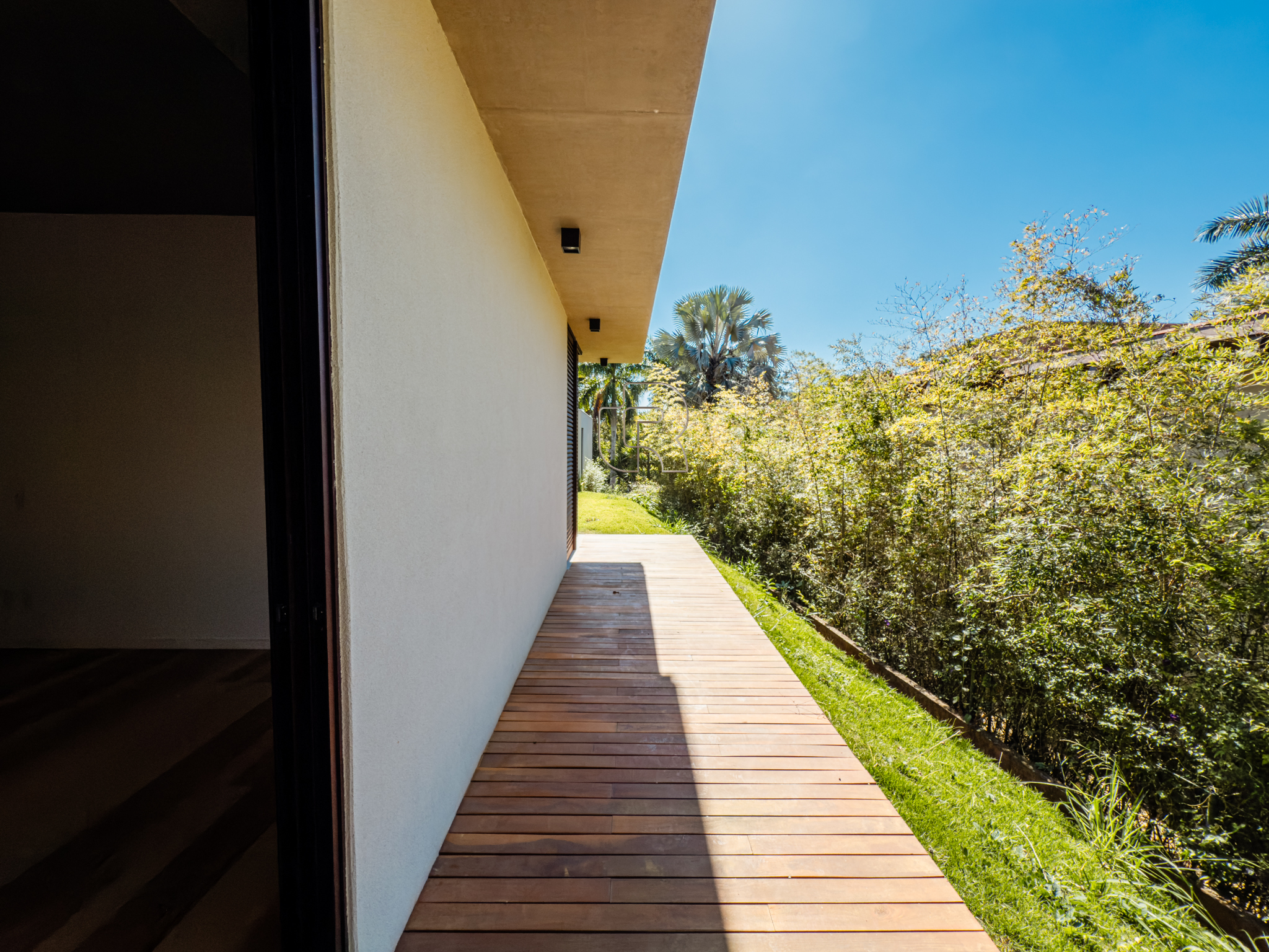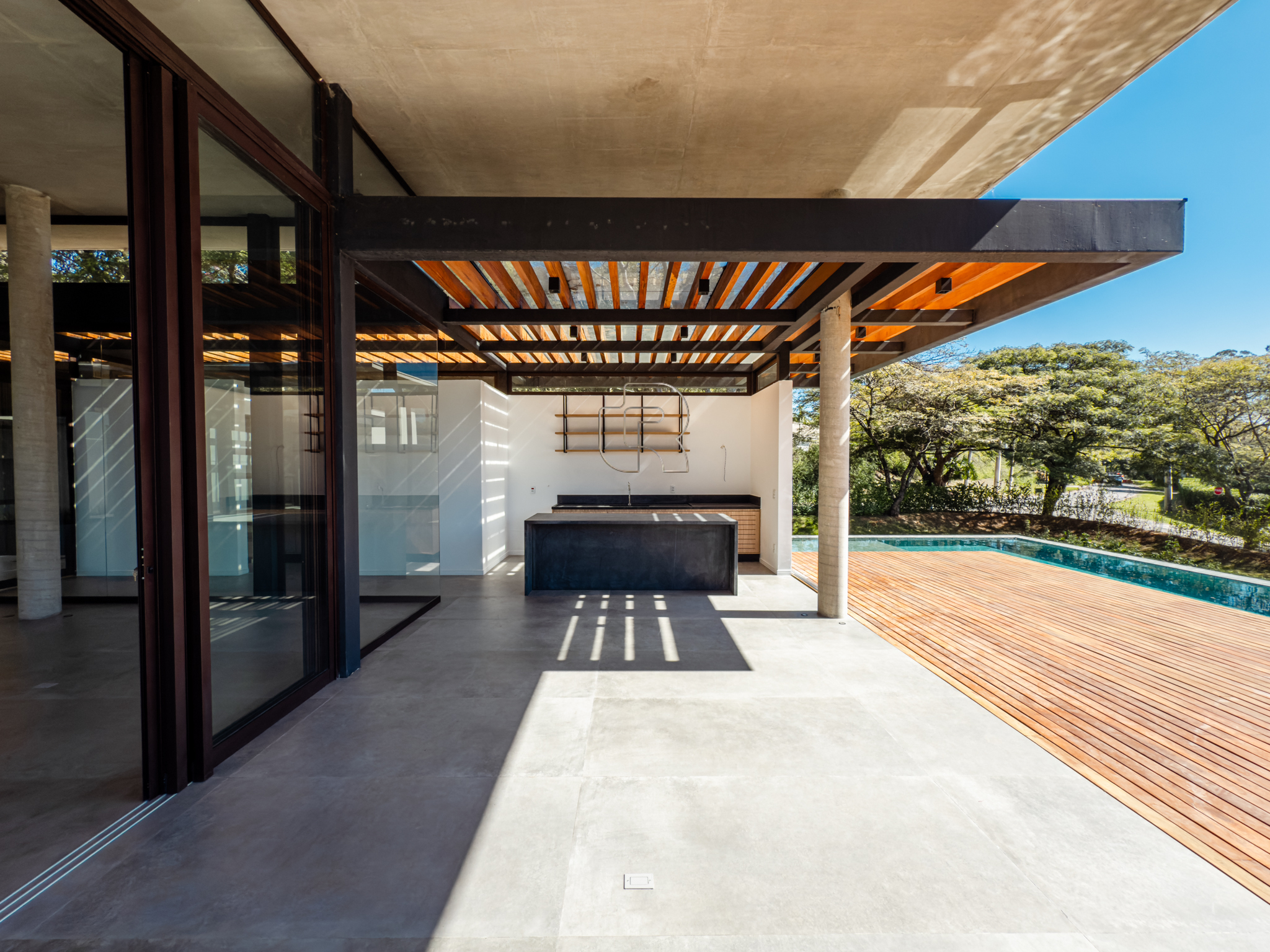 O acabamento é de alto padrão, com pisos e revestimentos Portobello, banheiros em Limestone Mont Dore, louças e metais Deca e Docol, deck em madeira Cumaru, forro e assoalho em Freijó, e revestimentos em pedra Moledo rústica.